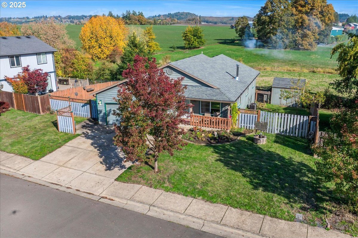 This single-level home will serve its next owner well, with great views of Carlton's beautiful country backdrop, a spacious floor plan, and a very usable lot. The home features a large living area with great natural light, leading into an open kitchen-dining room combo. This area is excellent for entertaining and will be ideal for holiday get-togethers. From here, a sliding door steps you out onto the covered back porch with views of the countryside and rolling hills. This view is also enjoyed from the well-appointed primary en-suite. The exterior features a poultry coop, a water feature, flat yard space, and potential RV/Boat parking on one side of the home. Carlton is a growing community with deep agricultural and viticultural roots, with convenient access to Newberg, McMinnville, and the North Plains area. With several wineries, delicious restaurants, acclaimed universities, and hospitals within a 15-minute drive, Carlton and this home will provide the next owner with excellent liveability for the time to come.
