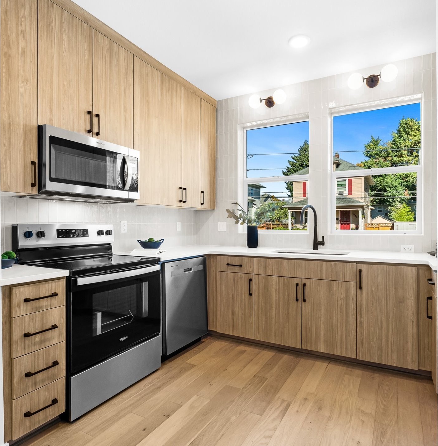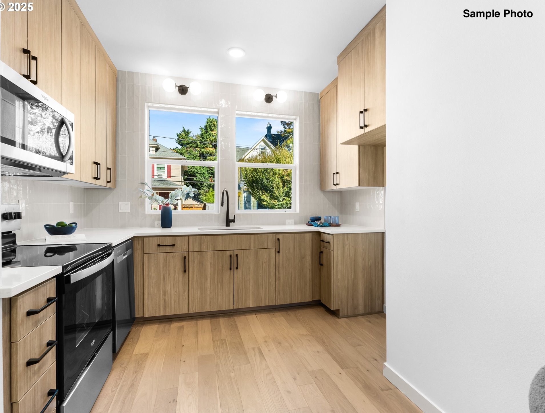Hello! I’m a brand-new, thoughtfully crafted home nestled in Portland’s beloved Brooklyn neighborhood, and I can’t wait to welcome you in. Unlike many other new construction homes, I'm not a condo and have no HoA fees. I was designed with intention—modern, efficient, and full of character—with just the right balance of style and comfort. Inside, I offer two spacious en-suite bedrooms, each with its own private full bathroom; perfect for privacy, guests, or working from home. My open-concept main level is filled with natural light, creating a seamless flow from living to dining to kitchen. And yes, I’m proud of my kitchen. With custom cabinetry, solid surface countertops and stainless steel appliances, I’m built for both everyday living and entertaining. My favorite feature? The full-height tile backsplash that runs all the way up the wall—it adds a clean, modern look that sets me apart. Comfort is a priority here; I’m equipped with energy-efficient mini-split systems throughout, providing reliable heating and cooling all year round—giving you personalized climate control in every room for total convenience. Step outside, and you'll see why people love living here. I’m surrounded by local favorites like Rose City Coffee Co., Sanborn’s, Edelweiss Delicatessen, and Teutonic Wine Company. Green spaces like Brooklyn Park and Powell Park are just a few blocks away. Commuting and exploring is easy; I have a Walk Score of 91 and a Bike Score of 100. The MAX Orange Line, nearby bus routes, and bike corridors connect you effortlessly to downtown and the Central Eastside. My purchase price is available only to buyers who qualify for the Portland Housing Bureau’s System Development Charge (SDC) Exemption Program—a city initiative supporting long-term housing affordability. HOLTE also available on this property w/ huge tax savings! Just ask my people if you're not familiar with this program; they're experts. I’m more than just a place to live; I’m a home built for Portland life.