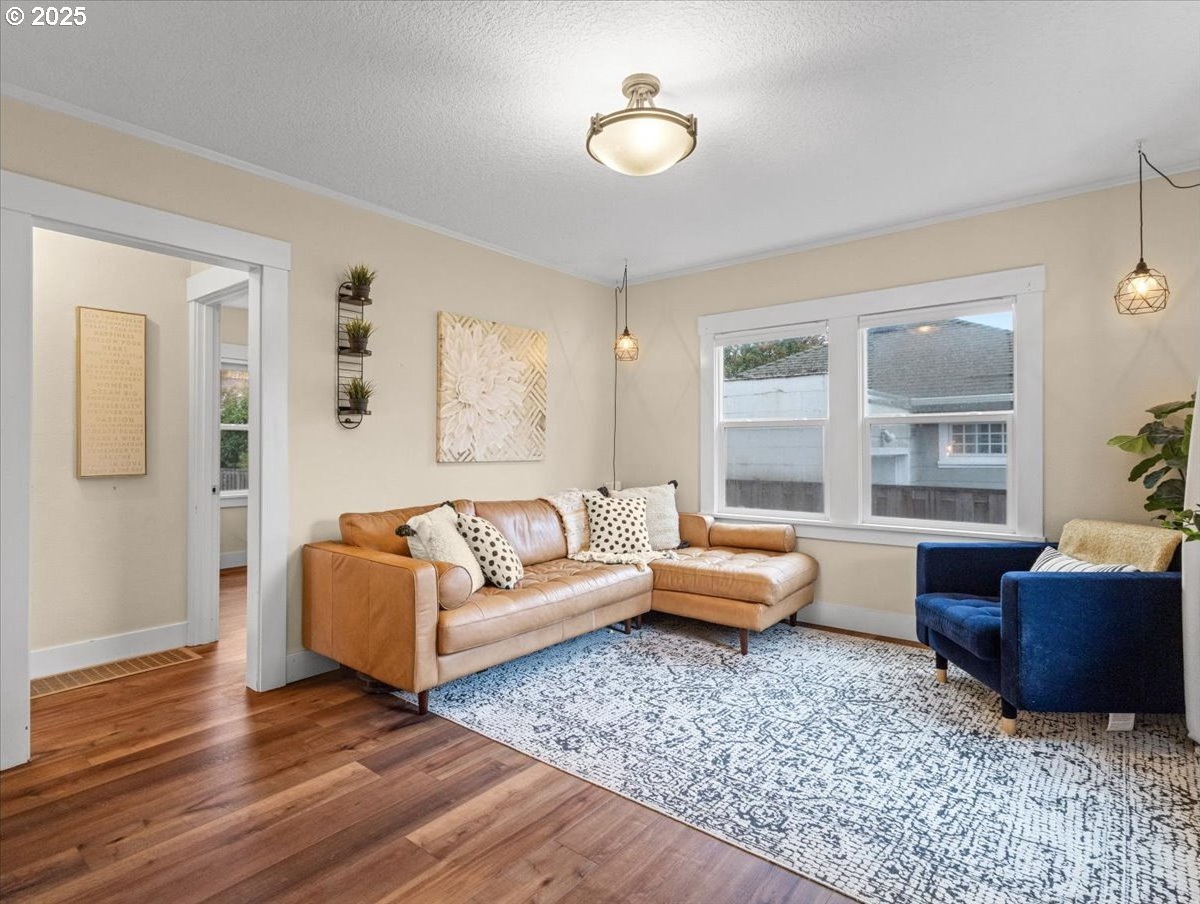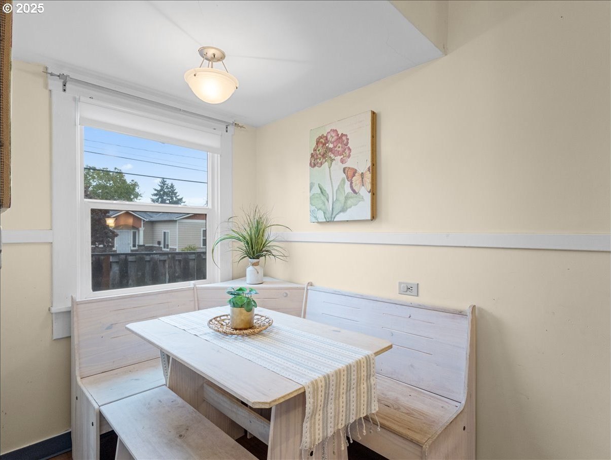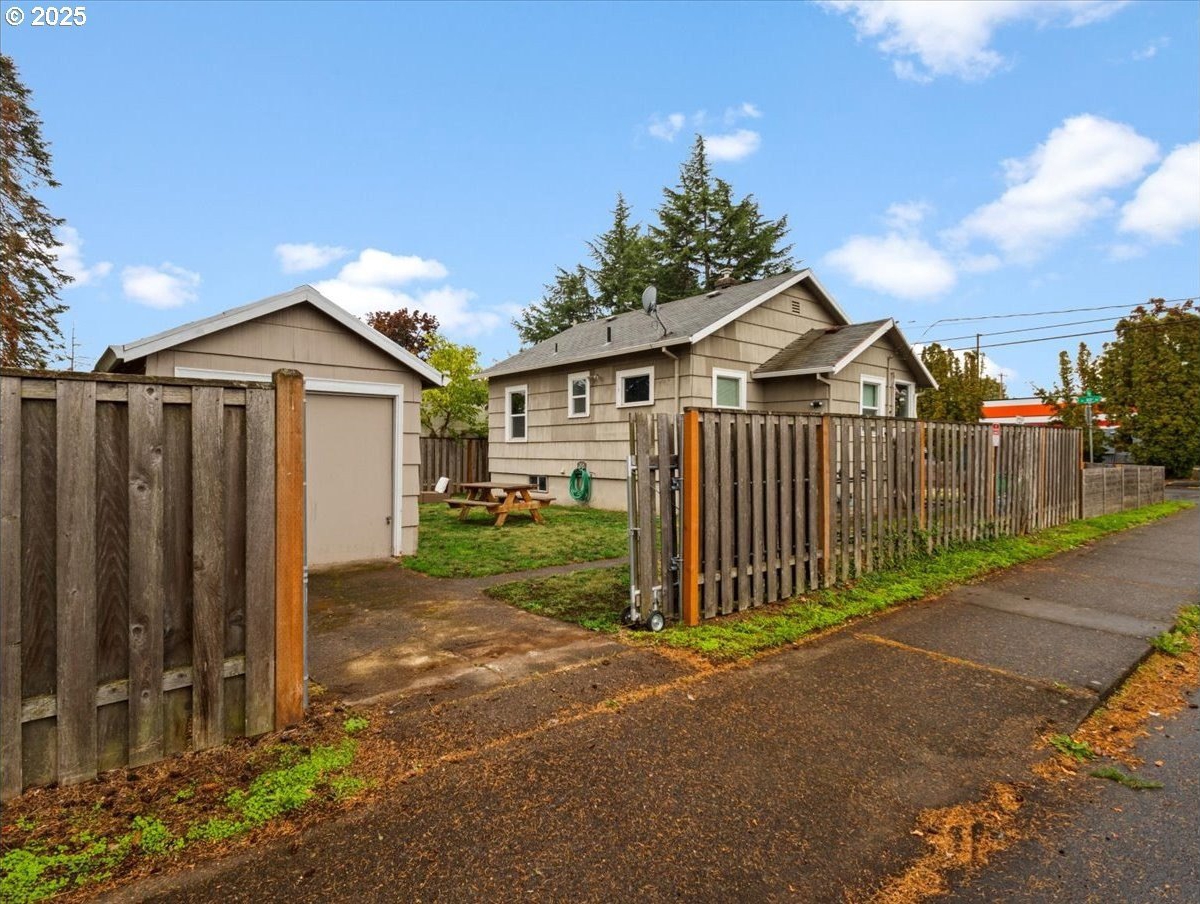 Cute as a Button Bungalow in SE Portland. Situated on a spacious corner lot, this home has loads to offer at an affordable price; classic charm, energy efficiency, updated systems and a giant fenced yard. As a bonus, the sellers will install a BRAND-NEW ROOF before closing with an acceptable offer! Enter through the cozy covered front porch to a lovely light-filled living room. Veer into a galley kitchen complete with pantry area and an adorable breakfast nook. Two bedrooms and a full hall bath fill out the main floor. Downstairs you’ll find a family/media room, third bedroom, laundry area and bonus storage space. Updated windows + plumbing + electrical system, central air conditioning and a home energy score of 8/10 only sweetens the deal. Both front and back yards are completely fenced. A detached garage with driveway and street access offers options for parking, storage or hobby-space. The corner lot location with R2.5 zoning could add development options and value; whether it’s pursuing infill development with the addition of an ADU or two or creating a land division. Commuter-friendly and easy access to shopping, food carts and parks. Walkscore 75, Bikescore 88. [Home Energy Score = 8. HES Report at https://rpt.greenbuildingregistry.com/hes/OR10192135]