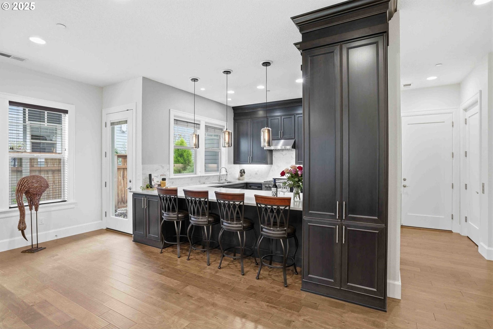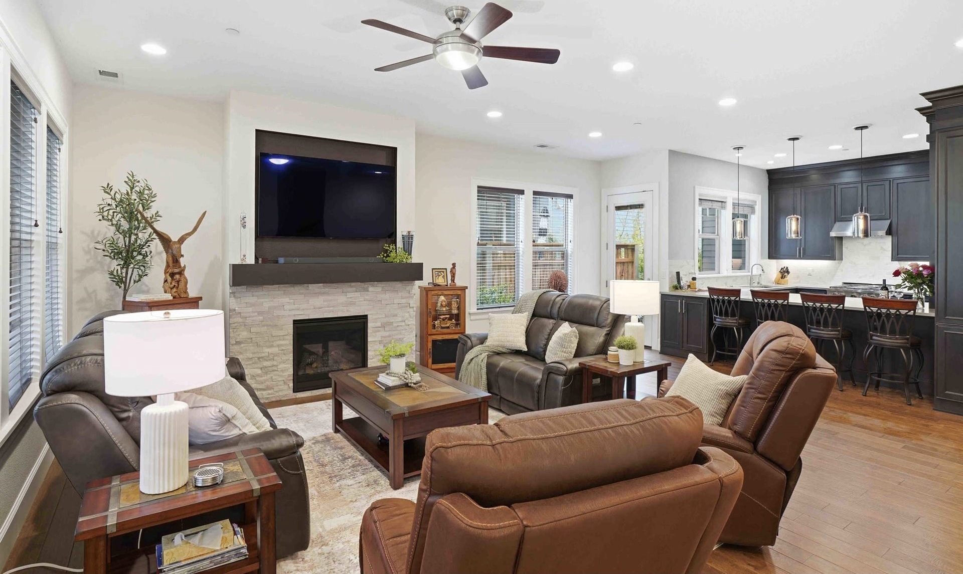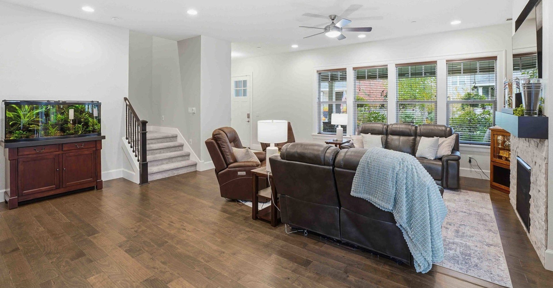 Modern Luxury End-Unit in Prestigious Three Creeks! Enjoy resort-style living near Camas Meadows Golf Course and Lacamas Lake in this highly sought-after gated community featuring a heated pool, pickleball courts, sauna, fitness center, and walking trails. This stunning end-unit townhome offers privacy with no home behind, exceptional upgrades, and abundant natural light. Open-concept living with 10-ft ceilings on both levels, gas fireplace, and engineered hardwoods on main. Chef’s kitchen with gas cooking, stainless steel appliances, solid quartz counters, ceiling-height cabinetry with custom crown molding, large island, and pantry. Upstairs, all bedrooms have walk-in closets; primary suite includes vaulted ceilings, private balcony, double vanity, soaking tub, and tiled walk-in shower. Working ELEVATOR, central vacuum system, and amazing oversized two-car garage with interlocking floor tiles ready for your wheels with high ceilings and lots of storage. Covered front patio and covered balcony for outdoor enjoyment and entertaining. Camas School District.