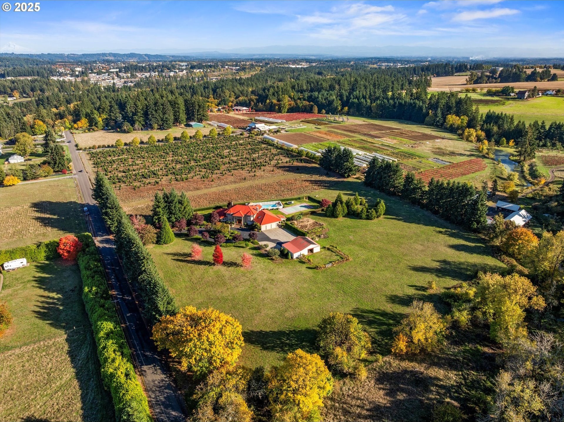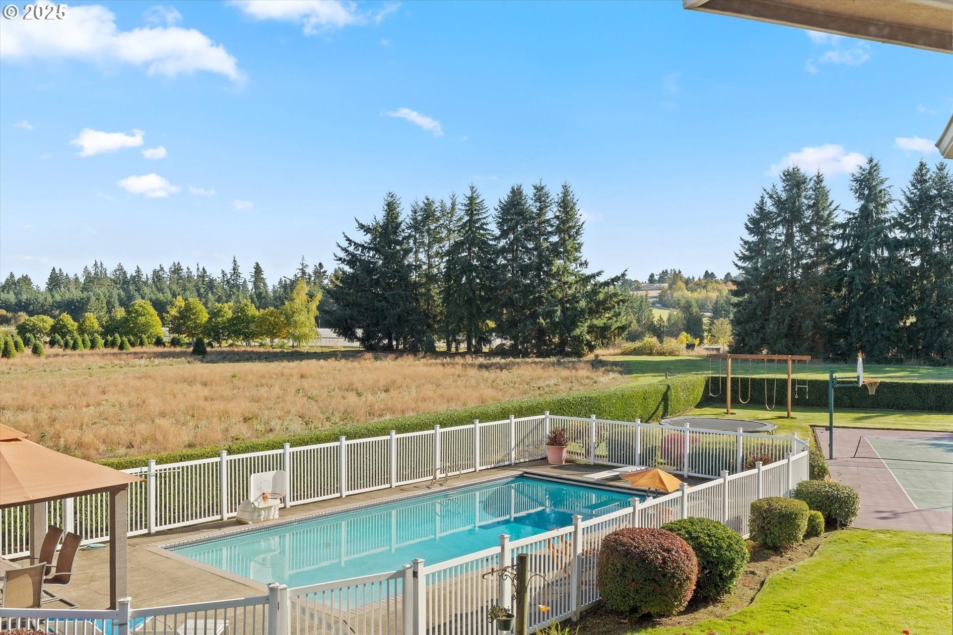 Welcome to this exceptional Sherwood estate — a rare opportunity to own over sixteen private acres in Oregon’s beautiful wine country. This impressive six-bedroom, five-bathroom residence combines luxury and functionality. From the moment you arrive, you’ll notice the attention to detail and the sense of privacy that make this property truly stand out. Inside, a flowing floor plan showcases vaulted ceilings, rich finishes, and expansive windows that fill the home with natural light. The gourmet kitchen features high-end appliances, a large island, and seamless flow into the spacious great room — perfect for entertaining or relaxing with family. The primary suite offers a private retreat with a spa-inspired bath, and stunning views of the surrounding landscape. Five additional bedrooms provide flexibility for guests, a second home office, or multi-generational living. Step outside to enjoy true resort-style amenities — including a sparkling pool, sport court, and expansive patios. There’s room for recreation, gardening, animals and all your toys. So many ways to enjoying the peace and quiet of country living. This is more than a home — it’s a lifestyle. Experience it all just minutes from the charming Old Town Sherwood, top-rated schools and easy commutes. Welcome to your next chapter!