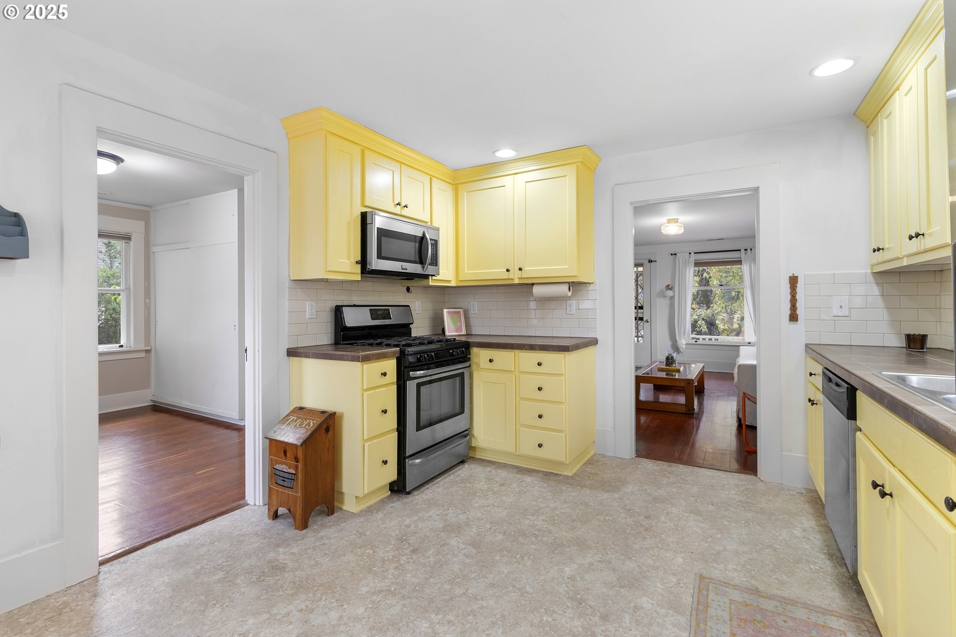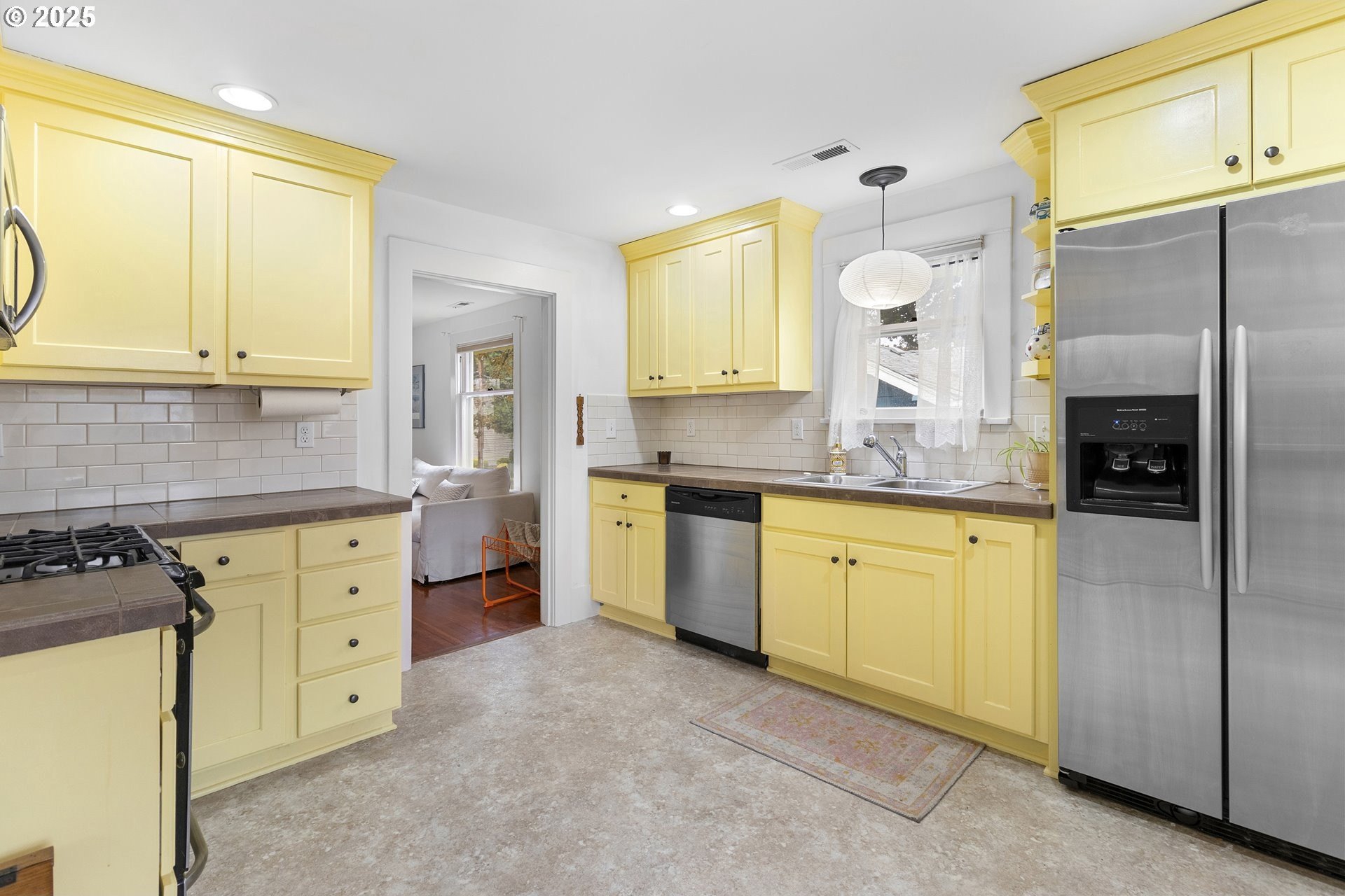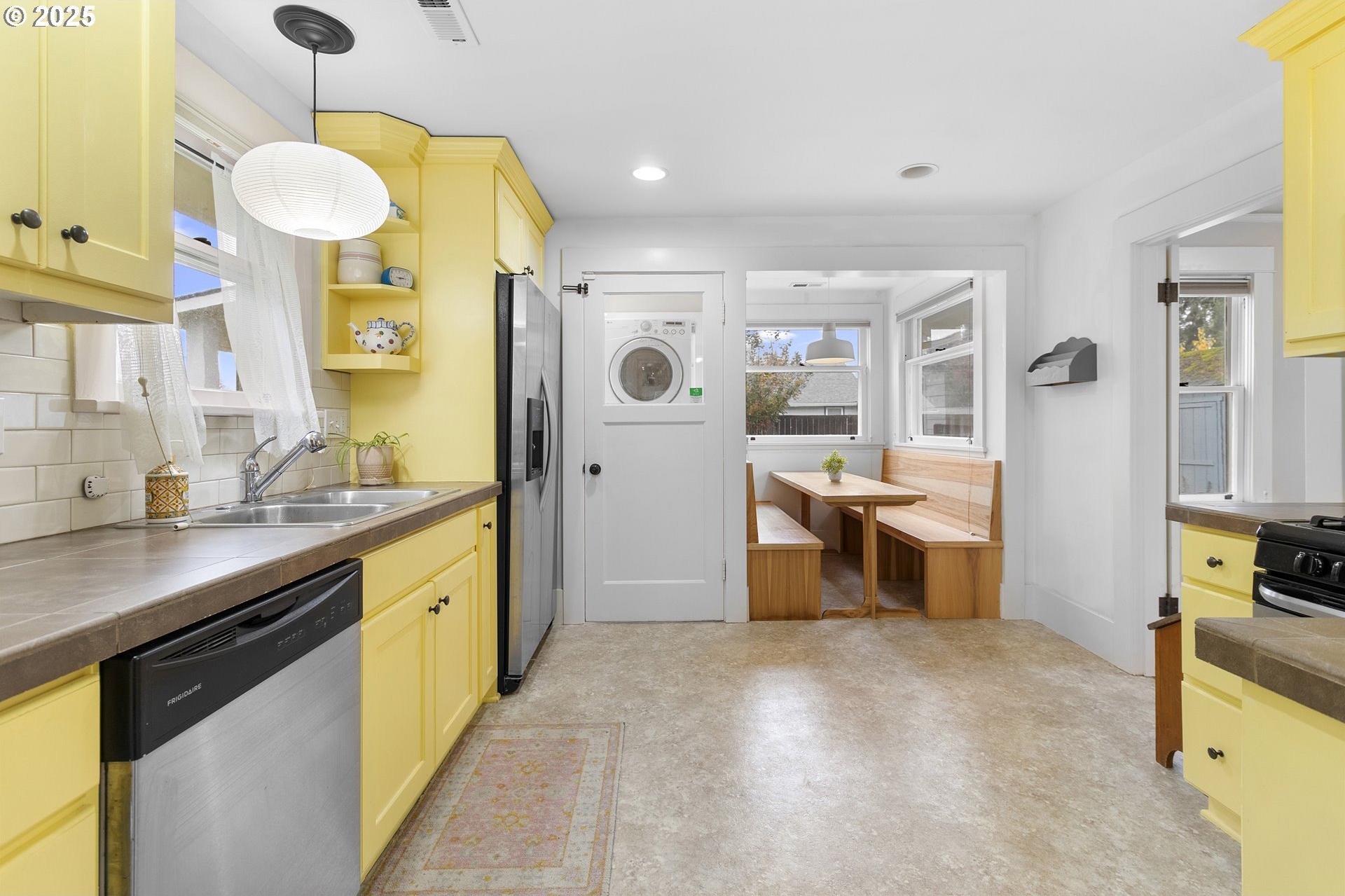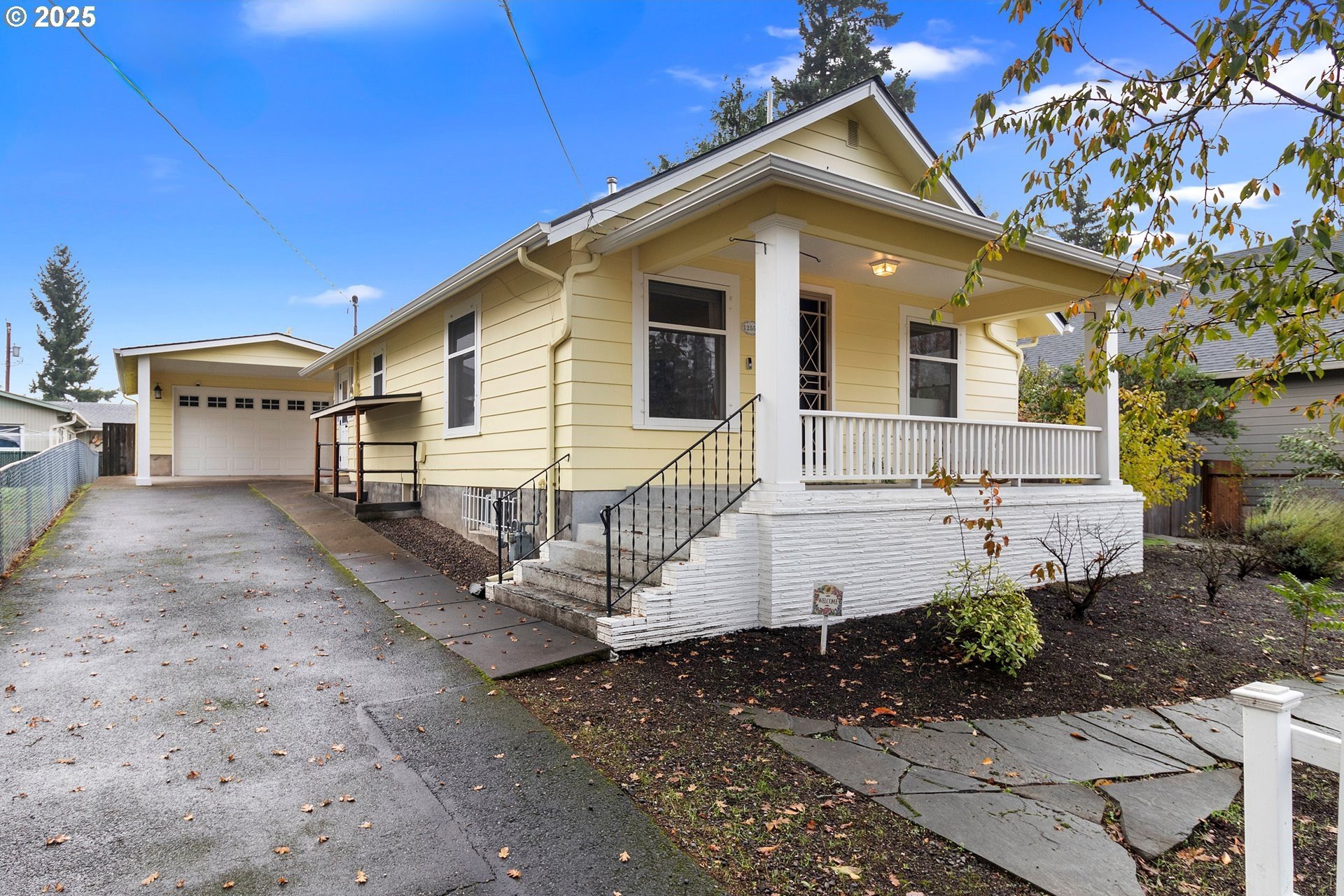 Charming 1925 bungalow filled with natural light and timeless character! This 2-bed, 1-bath home has 1,132 sq ft of comfortable living with original hardwood floors, a built-in eating nook, and an open kitchen featuring stainless steel gas appliances and built-in storage. Enjoy a cozy mudroom with washer & dryer, covered front porch, beautiful landscaping, a fully fenced backyard, and a detached garage plus storage shed.With a Home Energy Score of 8 and a radon mitigation system, this home combines vintage charm with modern efficiency. Ideally located near downtown Milwaukie- walk or bike to Painted Lady Coffee House, Cha Cha Cha Taqueria, and the Milwaukie Station Food Carts, or unwind at Milwaukie Bay Park. Quick drive to Portland favorites like St. Jack and Grassa.A rare blend of historic character, smart updates, and vibrant local living—welcome home to SE 23rd Ave! [Home Energy Score = 8. HES Report at https://rpt.greenbuildingregistry.com/hes/OR10205430]