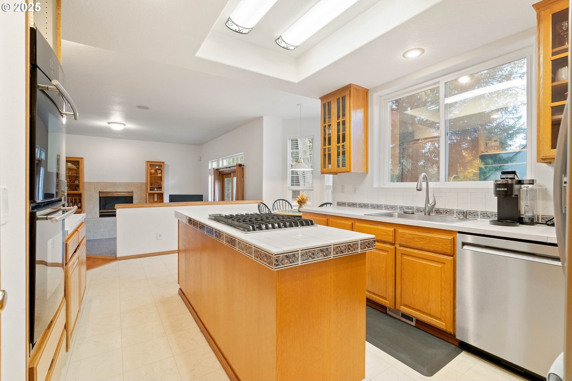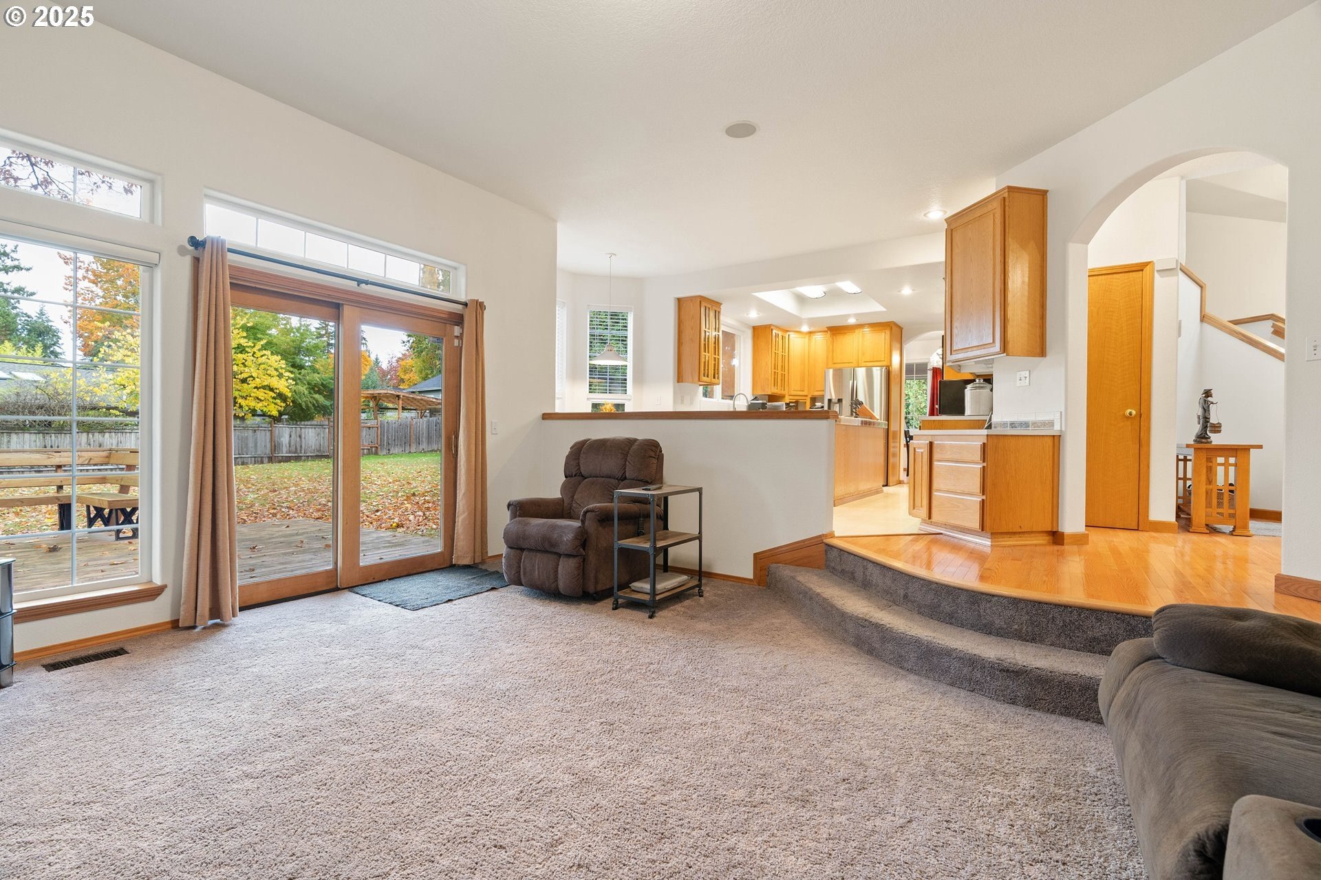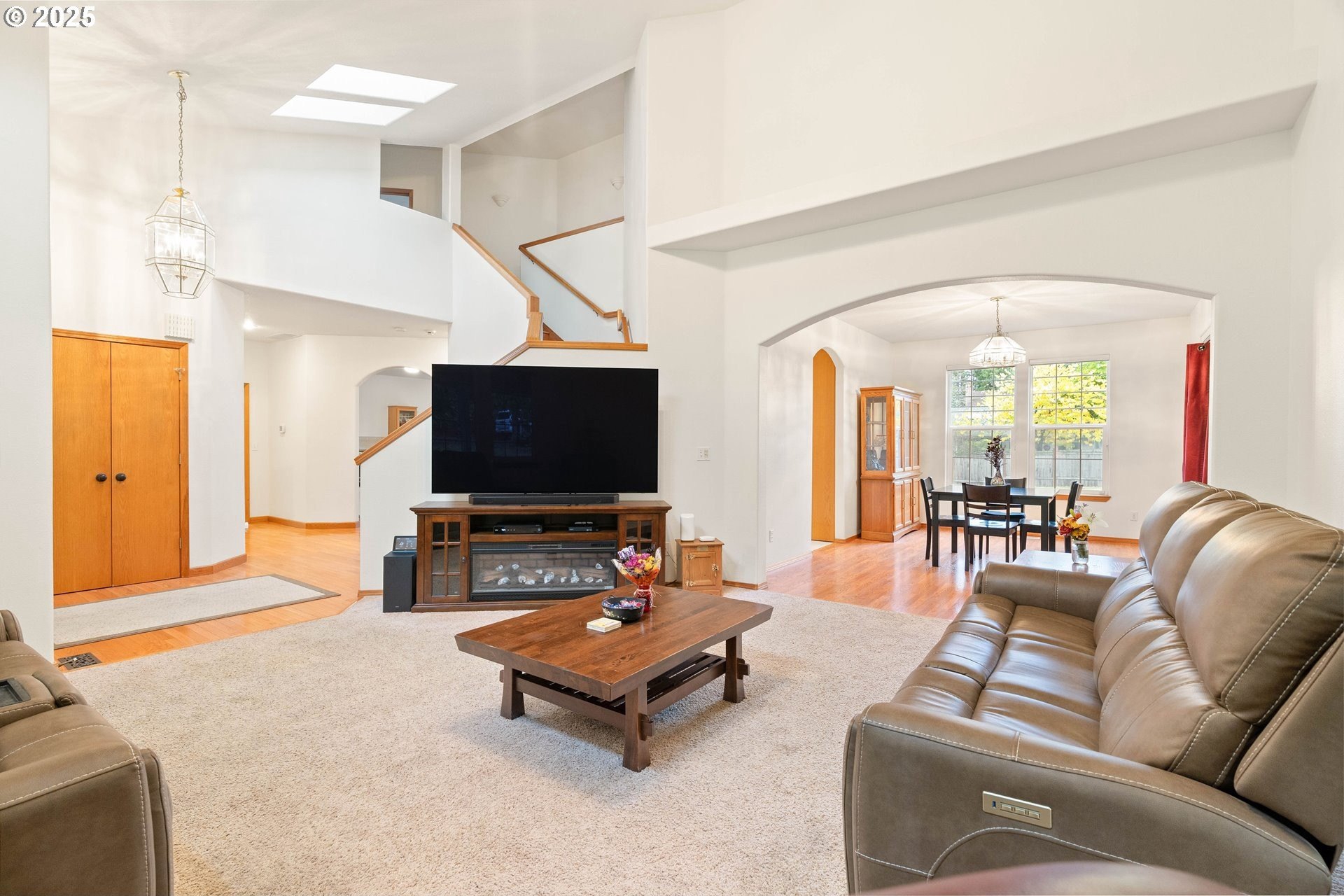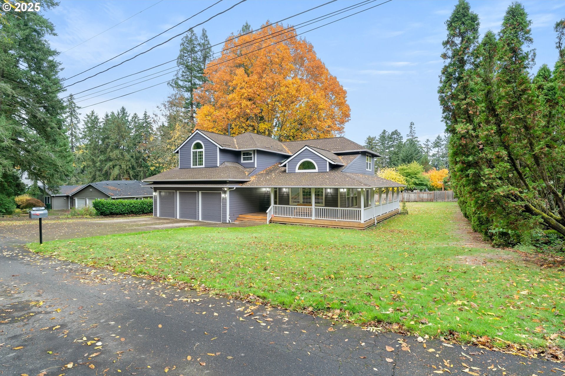 Well-maintained home on a 0.4-acre lot with numerous updates and great functionality throughout. Recent improvements include new Hardie plank siding (2023), a newer roof, furnace, and water heater; an encapsulated crawl space with sump pump; and bedroom carpet replaced within the last three years. Additional updates include a 2025 dishwasher, refreshed half bath on the main level, and new garage door openers. The garage is equipped with a 250-amp outlet—ideal for tools, hobbies, or electric vehicle charging. Inside, the main level features a large formal living room with vaulted ceilings, a formal dining room with hardwood floors, and an open kitchen with an adjoining nook and family room. Outdoor living shines with a large covered wraparound porch and a spacious deck off the family room, perfect for entertaining, complete with a gas hookup for a BBQ or outdoor fireplace/fire pit. The utility room includes a sink and built-in cabinetry for extra storage. Upstairs, the primary suite offers a private deck overlooking the backyard, a large bathroom with a soaking tub, walk-in shower, and generous walk-in closet. Four additional bedrooms are all well-sized and include ceiling fans. The hall bath features a walk-in tub for added accessibility. With thoughtful updates, a generous floor plan, and an expansive lot, this home combines comfort, space, and practicality in a desirable setting. [Home Energy Score = 3. HES Report at https://rpt.greenbuildingregistry.com/hes/OR10242356]