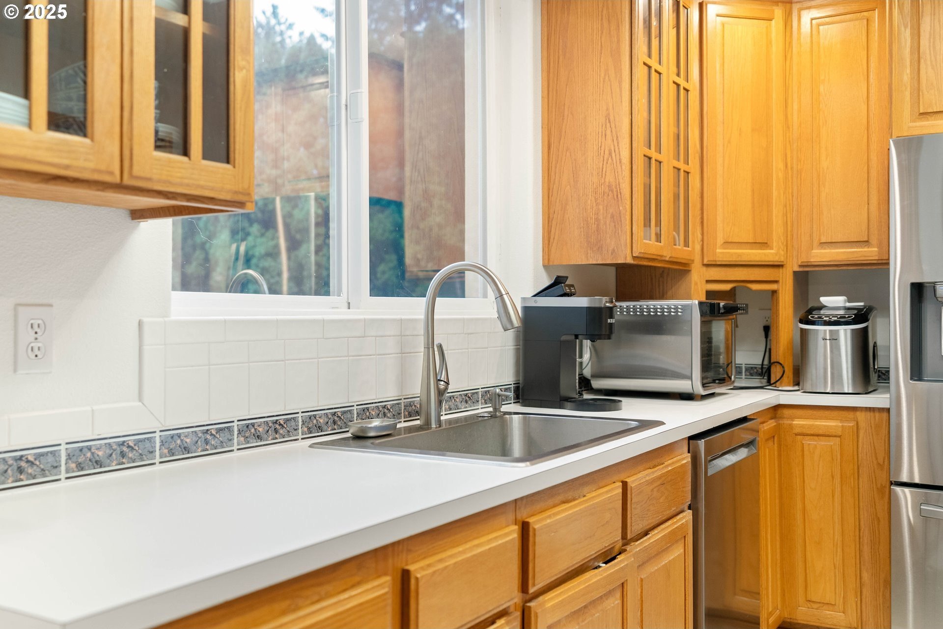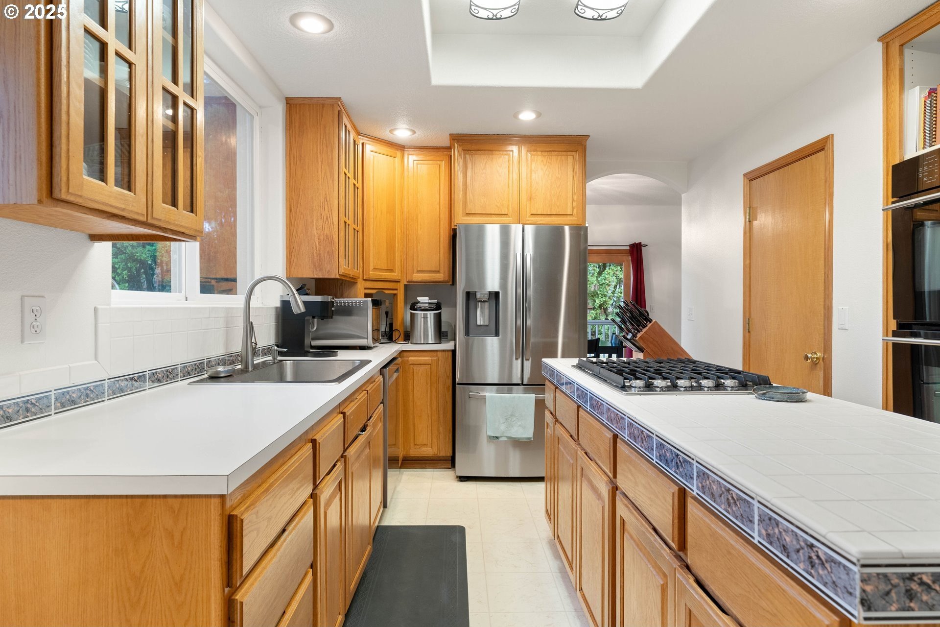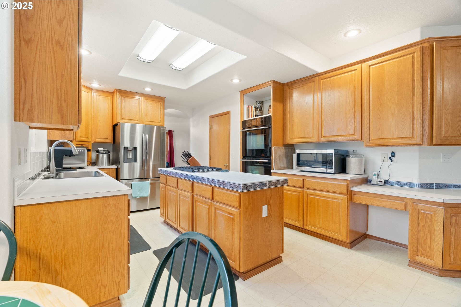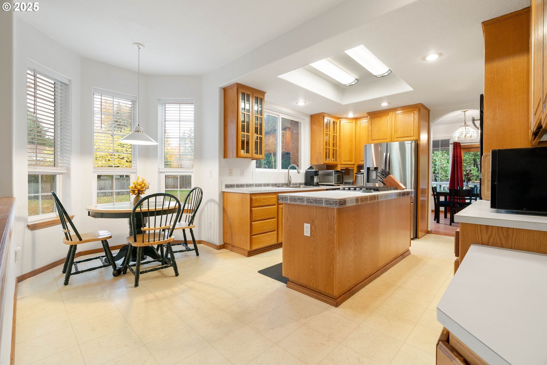 Well-maintained home on a 0.4-acre lot with numerous updates and great functionality throughout. Recent improvements include new Hardie plank siding (2023), a newer roof, furnace, and water heater; an encapsulated crawl space with sump pump; and bedroom carpet replaced within the last three years. Additional updates include a 2025 dishwasher, refreshed half bath on the main level, and new garage door openers. The garage is equipped with a 250-amp outlet—ideal for tools, hobbies, or electric vehicle charging. Inside, the main level features a large formal living room with vaulted ceilings, a formal dining room with hardwood floors, and an open kitchen with an adjoining nook and family room. Outdoor living shines with a large covered wraparound porch and a spacious deck off the family room, perfect for entertaining, complete with a gas hookup for a BBQ or outdoor fireplace/fire pit. The utility room includes a sink and built-in cabinetry for extra storage. Upstairs, the primary suite offers a private deck overlooking the backyard, a large bathroom with a soaking tub, walk-in shower, and generous walk-in closet. Four additional bedrooms are all well-sized and include ceiling fans. The hall bath features a walk-in tub for added accessibility. With thoughtful updates, a generous floor plan, and an expansive lot, this home combines comfort, space, and practicality in a desirable setting. [Home Energy Score = 3. HES Report at https://rpt.greenbuildingregistry.com/hes/OR10242356]