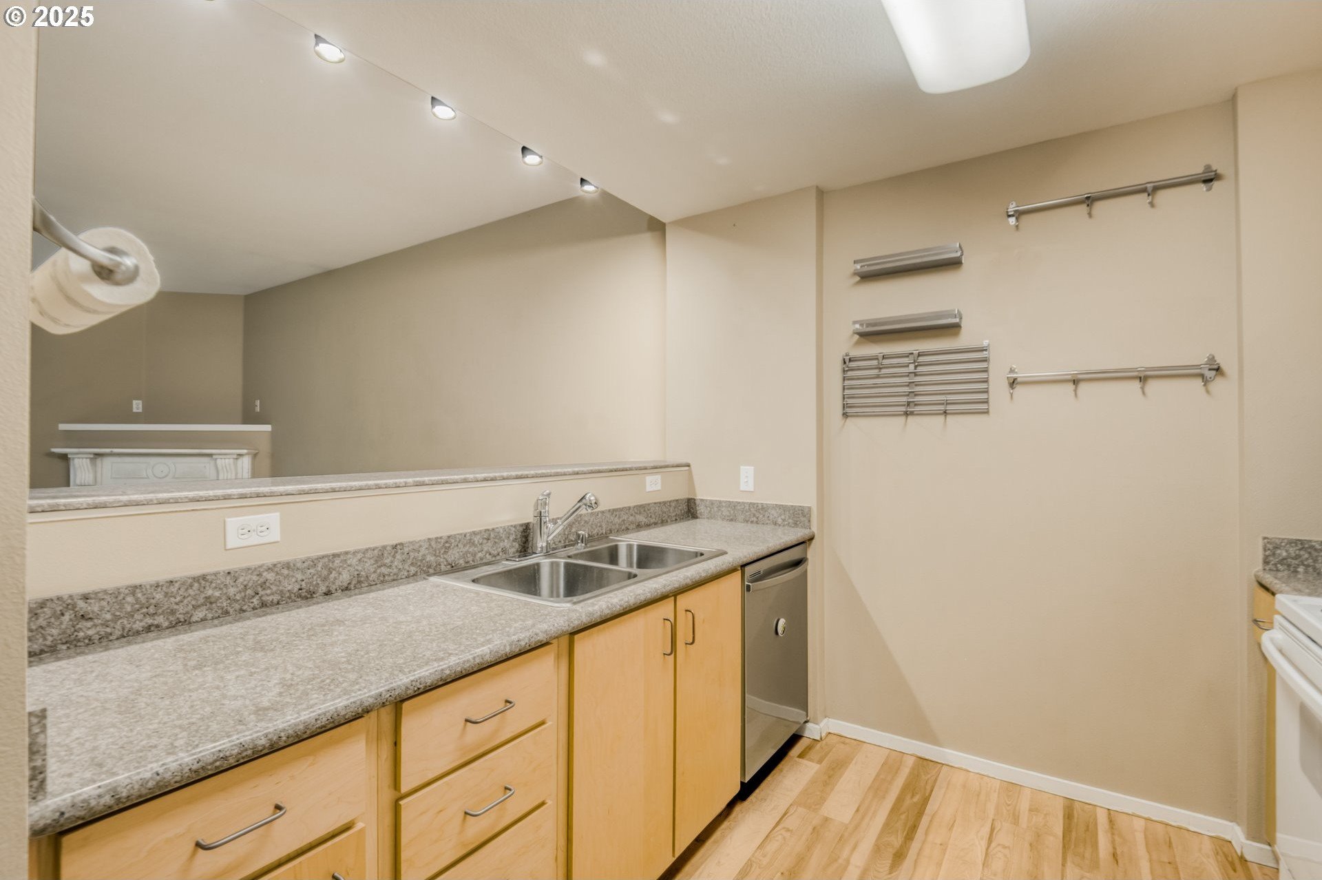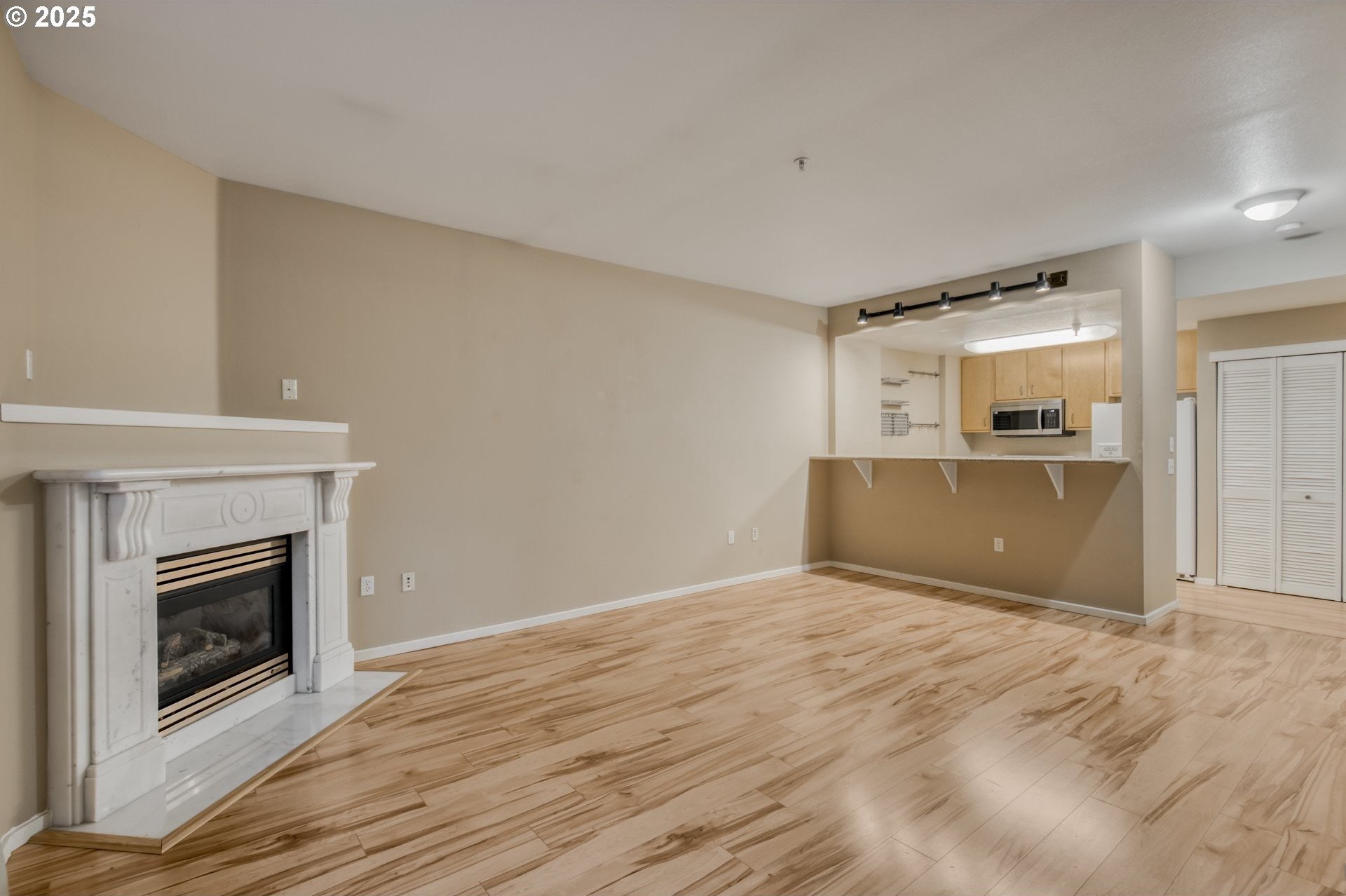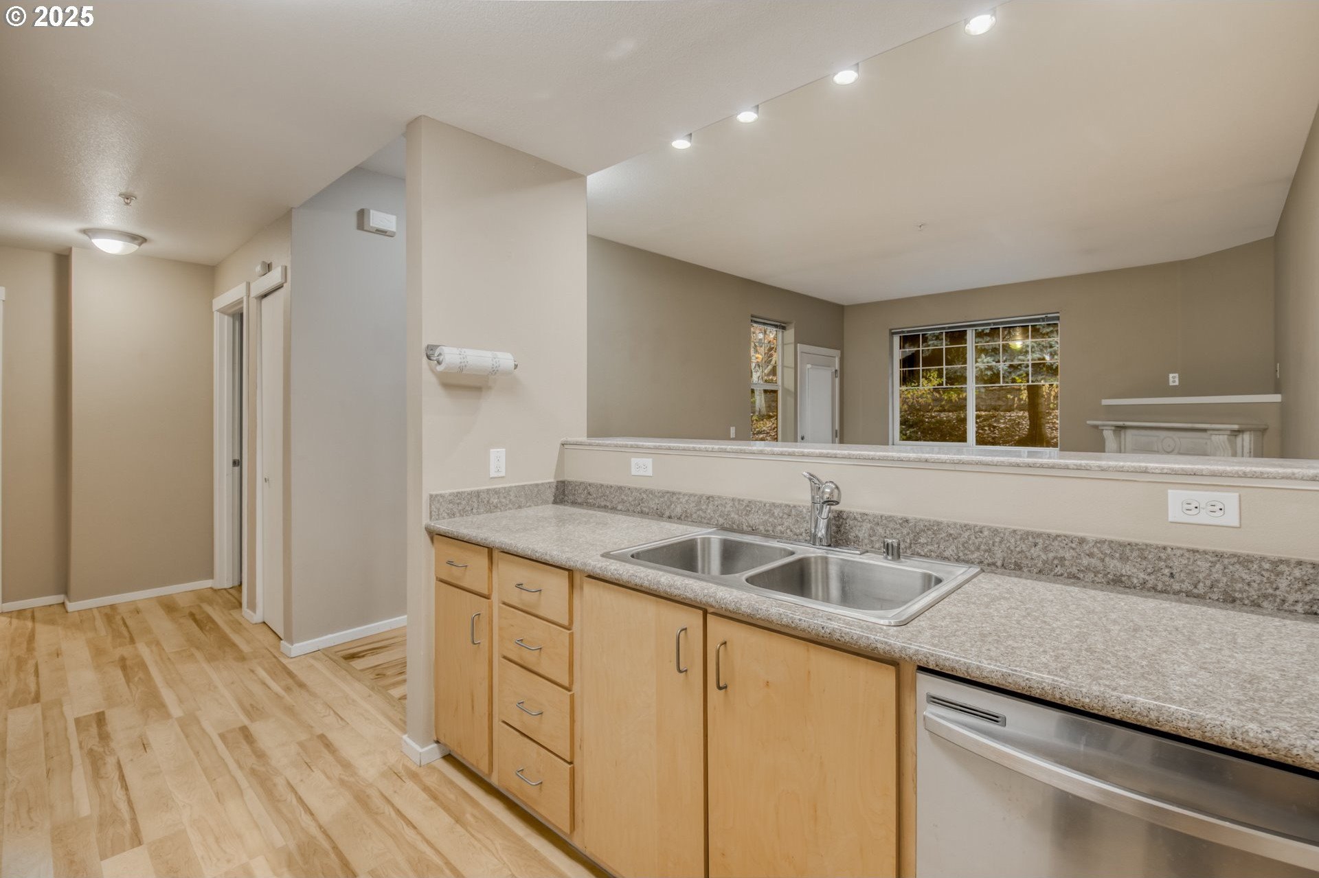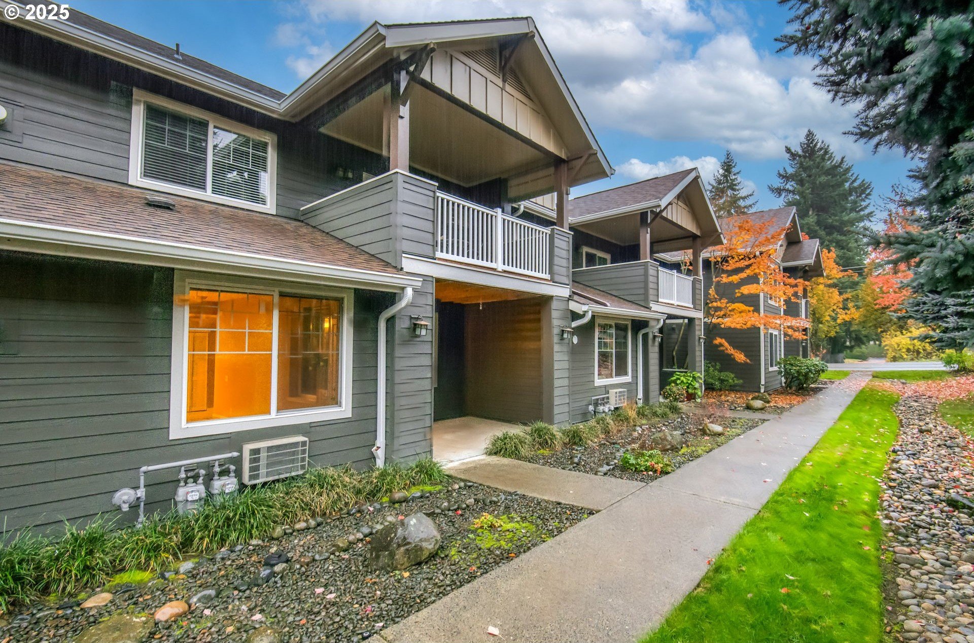 This ground-level condo enjoys one of the most desirable locations in the entire community. The complex is quiet, well cared for, and offers a relaxed, welcoming atmosphere. Inside, the single-level layout feels open and spacious, enhanced by high ceilings and large windows that fill the home with natural light. The kitchen features granite countertops and a bar-height counter ideal for casual meals or entertaining.A cozy gas fireplace anchors the living room, creating a comfortable space to unwind. The generous primary suite includes oversized closet and a private ensuite with a shower and an oversized vanity.Step onto your covered patio—complete with a gas hookup for grilling—and enjoy outdoor living in every season. An attached garage provides secure parking and the convenience of a private interior entrance.The community offers exceptional amenities, and this unit is just steps away, from the clubhouse with lounge and meeting areas, a fitness room, sauna, outdoor pool, and hot tub.