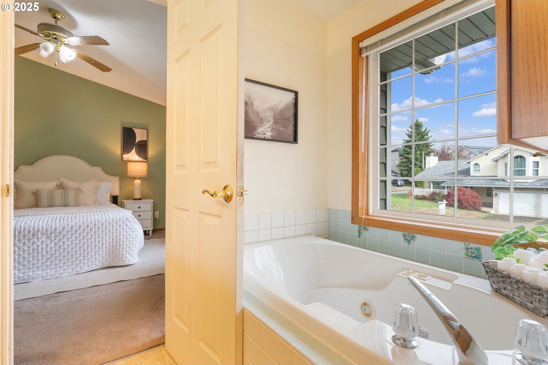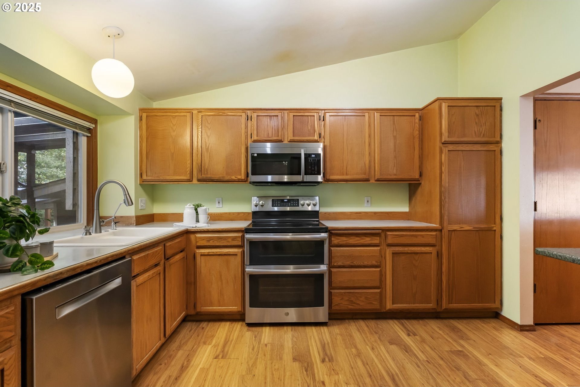 Step inside and feel the calm - the kind that only comes from sunlight streaming through to brighten vaulted ceilings and a view of nothing but trees behind you.Welcome to 8914 NE 28th Place, a home designed for how people actually live - with five true bedrooms, two-and-a-half baths, and plenty of space to stretch out, connect, or simply recharge.The main level greets you with an airy, light-filled layout where the living room opens seamlessly to dining, and a spacious kitchen making entertaining or weeknight dinners feel effortless. Vaulted ceilings lift your mood, while large windows bring the outside in - so even on cloudy days, the home still feels bright.Step out onto your covered deck and take a deep breath. That’s not traffic you hear - it’s the quiet of your private greenspace backdrop, a rare find that offers privacy, serenity, and room to watch the seasons change.Downstairs, you’ll find flexible living areas perfect for a media room, home gym, and that fifth bedroom you’ve always wanted for guests or your home office.And because smart living matters as much as beautiful living, this home comes equipped with solar panels that help lower monthly costs while reducing your footprint - practical, thoughtful, and future-forward.