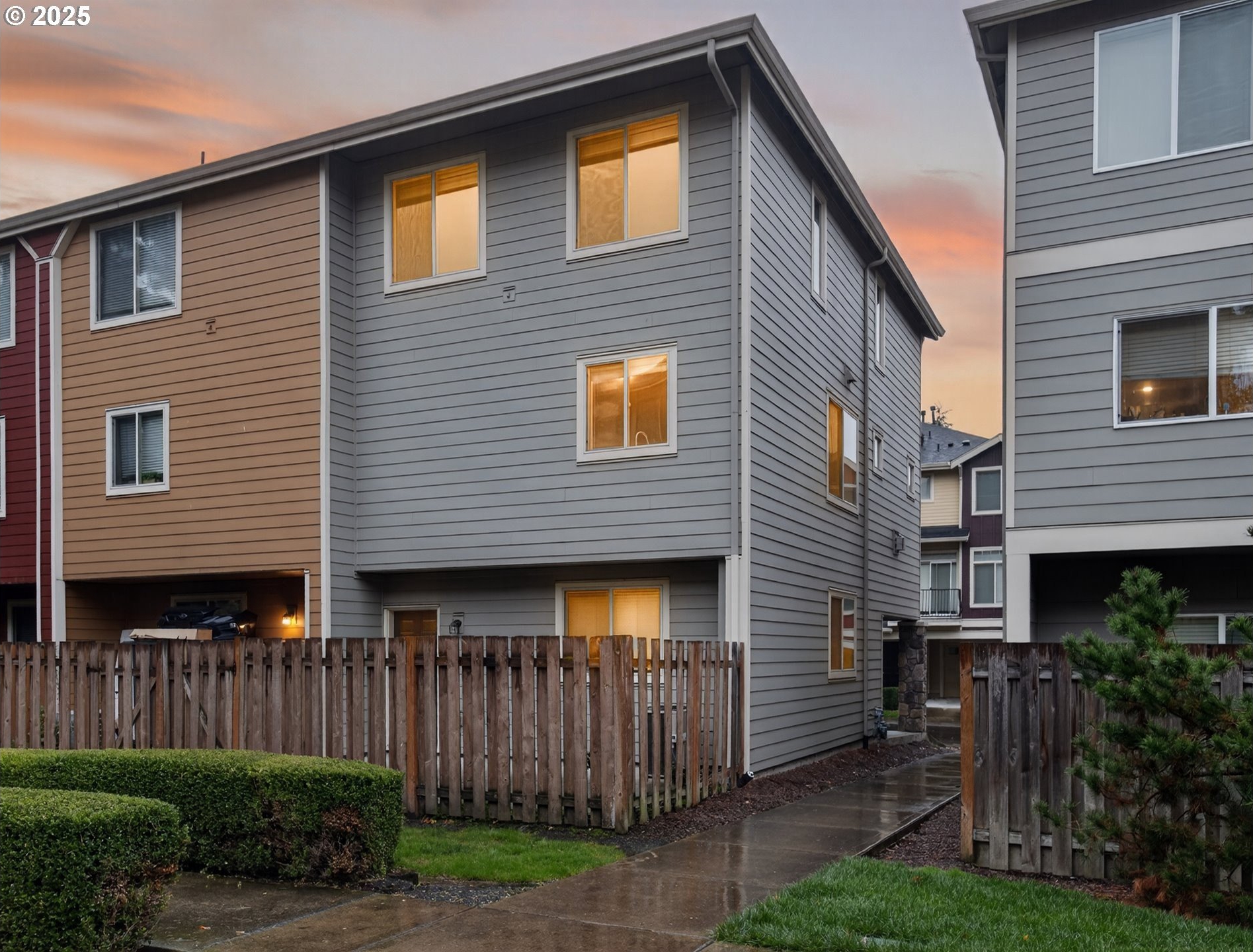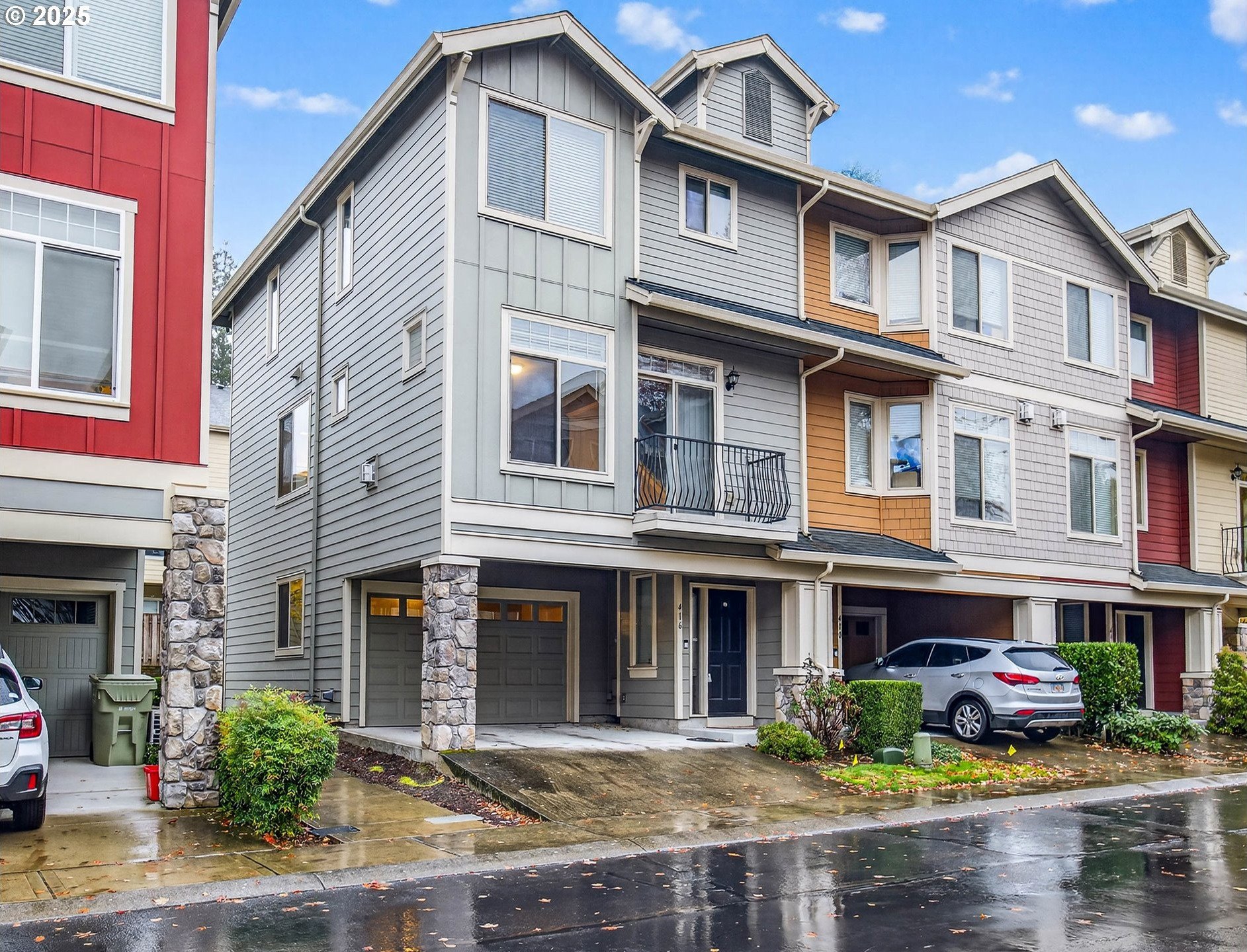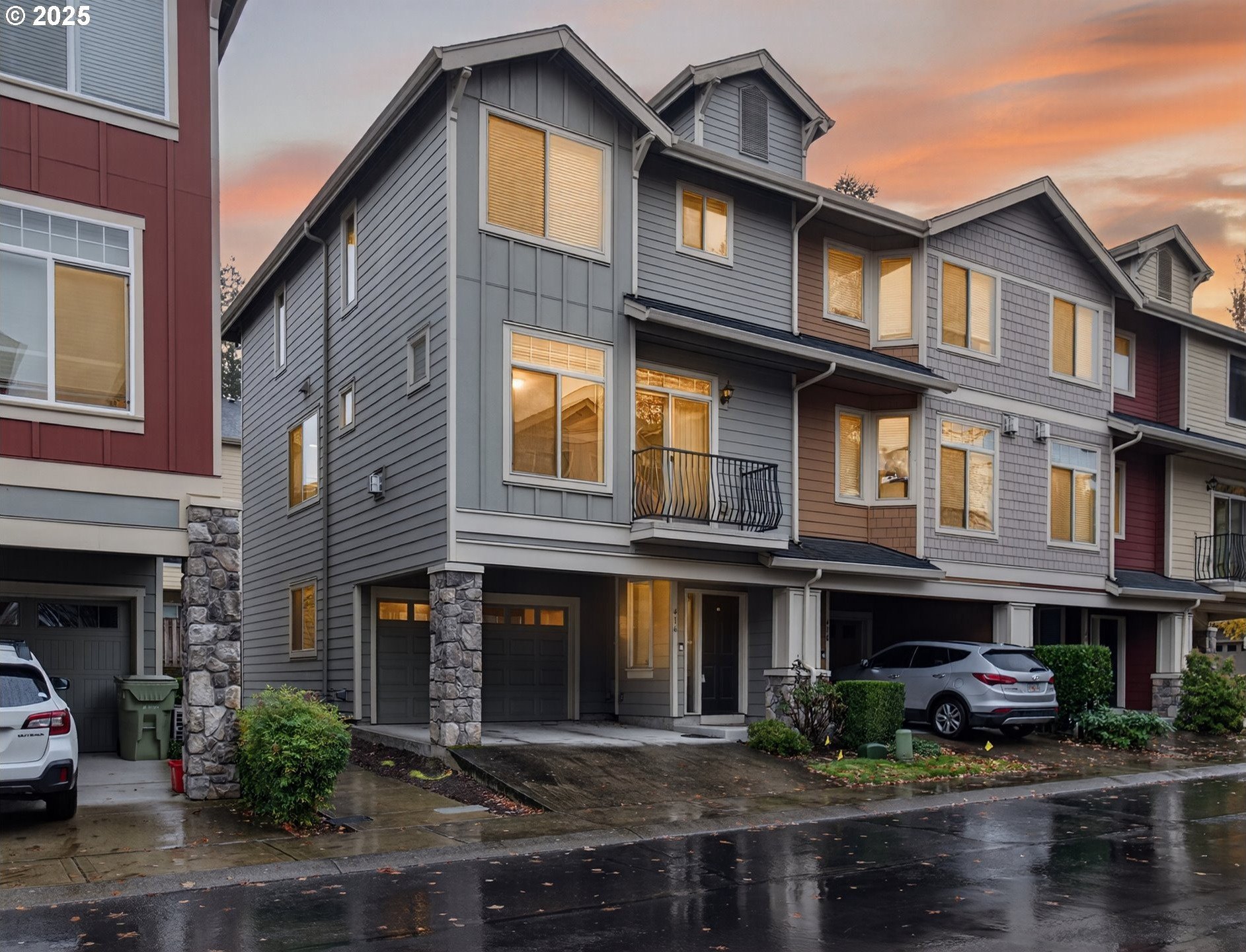 Welcome to this beautiful end-unit townhome, found in highly coveted area of Hillsboro. This home features a spacious open concept floor plan with lots of natural light. The main floor boasts of beautiful, hardwood floors and a great living area with a gas fireplace and nice built-ins. Also you will find a balcony, great for relaxing. The kitchen contains granite countertops, stainless steel appliances, tile backsplash, built-in microwave, and pantry for storage. All bedrooms have vaulted ceilings. The primary suite includes a bathroom en-suite and a walk-in closet. With an energy efficiency rating of 8, this home provides year around comfort an affordable price. Sharing only one wall, this unit provides virtually no noise from neighbors. On the lower level you will find a bonus office or guest area with a separate entrance. This great home also includes lots of storage space and an attached garage. The location is prime, minutes away from the MAX stop for easy commuting, grocery stores and outdoor/walking trails such as Quatama Nature Park. This home is situated near anything you would need, including shopping, dining, parks, and transportation. Fantastic value in a great location!