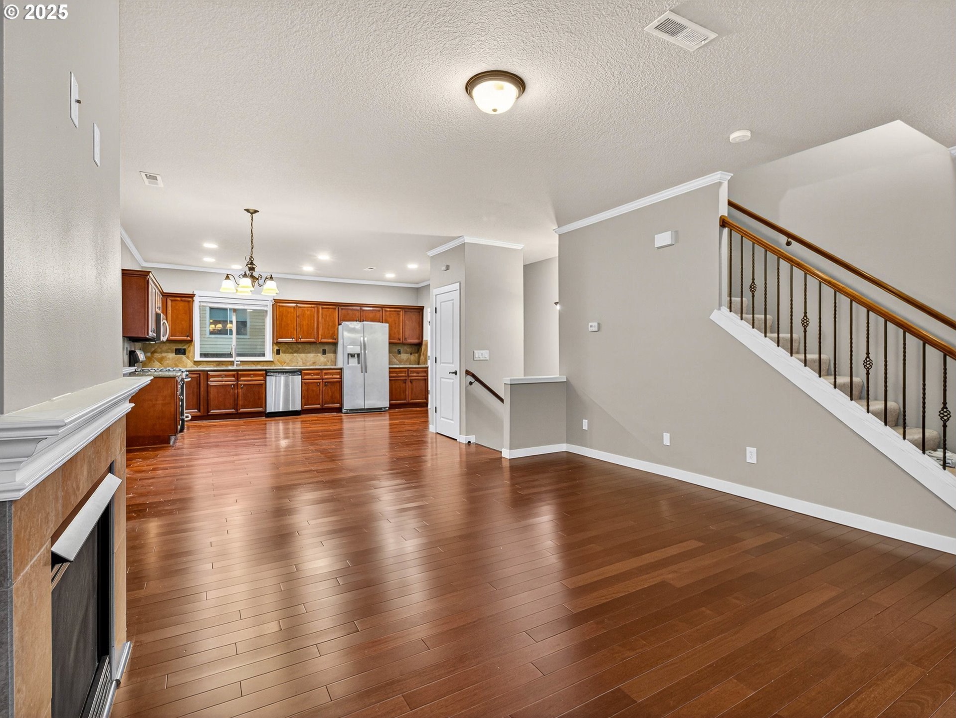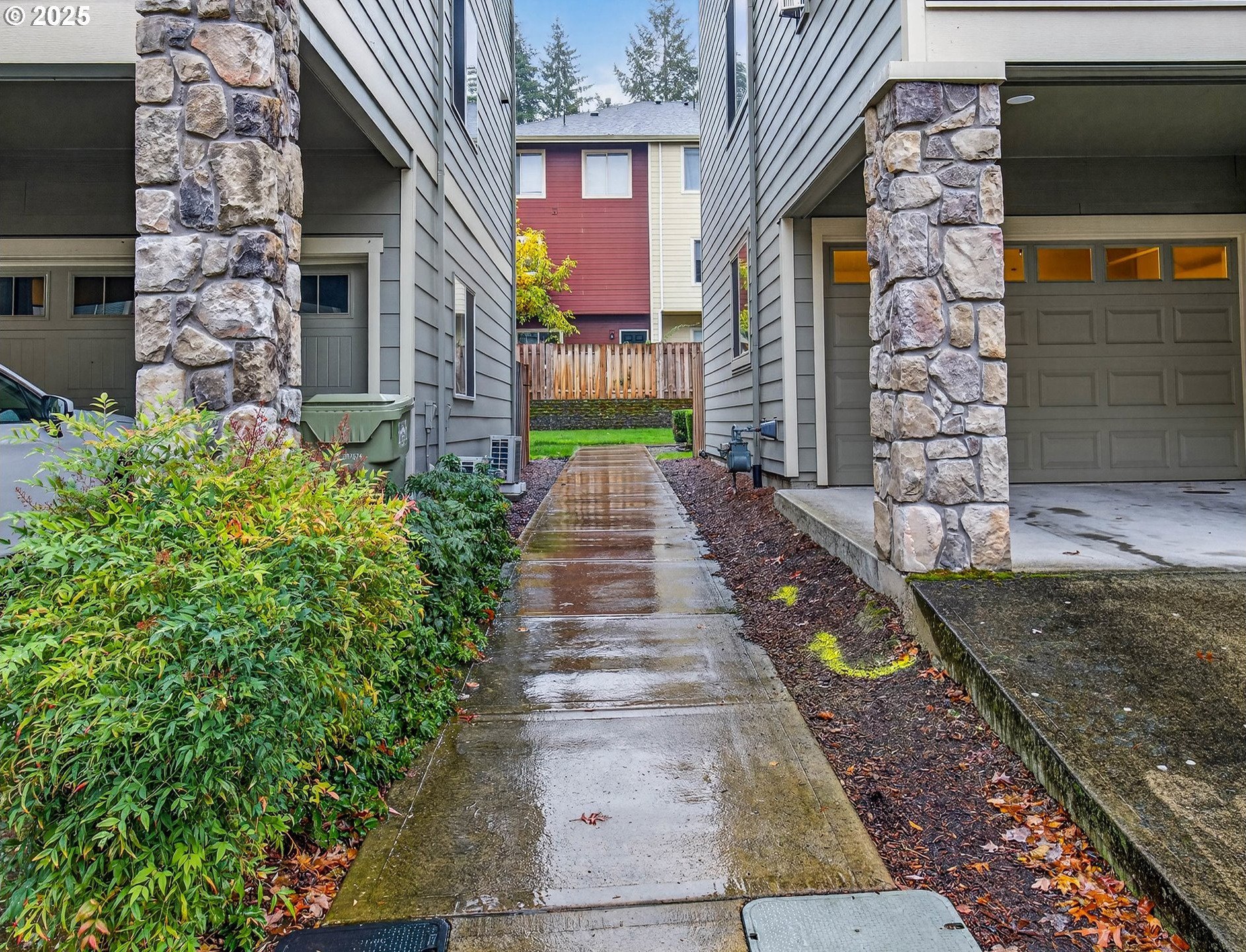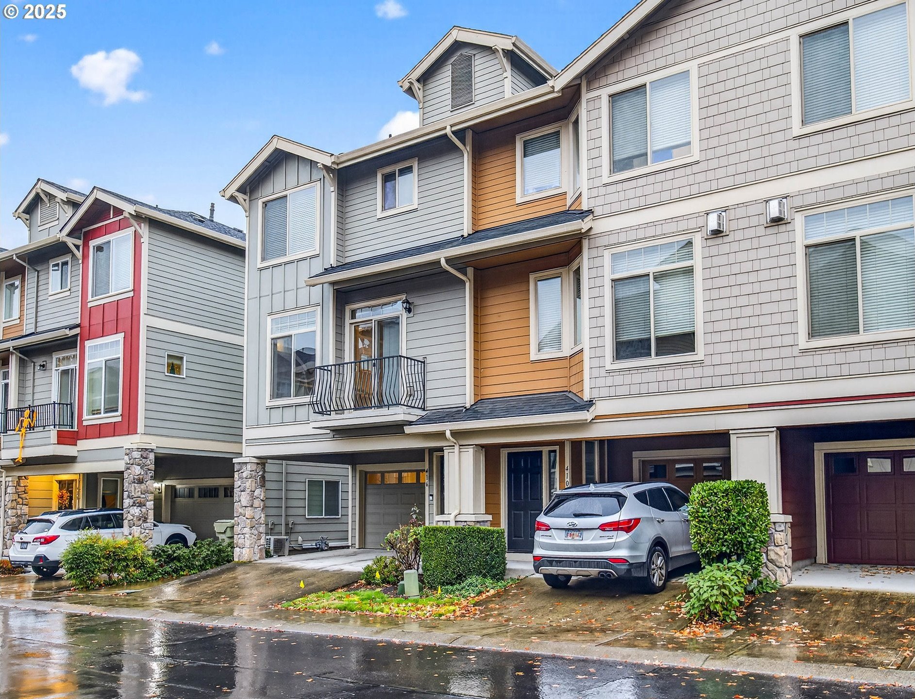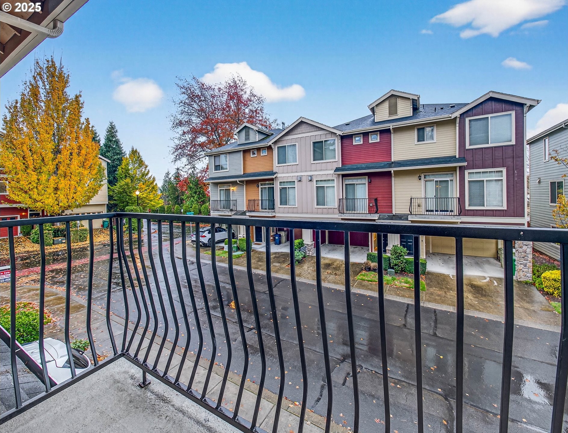 Welcome to this beautiful end-unit townhome, found in highly coveted area of Hillsboro. This home features a spacious open concept floor plan with lots of natural light. The main floor boasts of beautiful, hardwood floors and a great living area with a gas fireplace and nice built-ins. Also you will find a balcony, great for relaxing. The kitchen contains granite countertops, stainless steel appliances, tile backsplash, built-in microwave, and pantry for storage. All bedrooms have vaulted ceilings. The primary suite includes a bathroom en-suite and a walk-in closet. With an energy efficiency rating of 8, this home provides year around comfort an affordable price. Sharing only one wall, this unit provides virtually no noise from neighbors. On the lower level you will find a bonus office or guest area with a separate entrance. This great home also includes lots of storage space and an attached garage. The location is prime, minutes away from the MAX stop for easy commuting, grocery stores and outdoor/walking trails such as Quatama Nature Park. This home is situated near anything you would need, including shopping, dining, parks, and transportation. Fantastic value in a great location!
