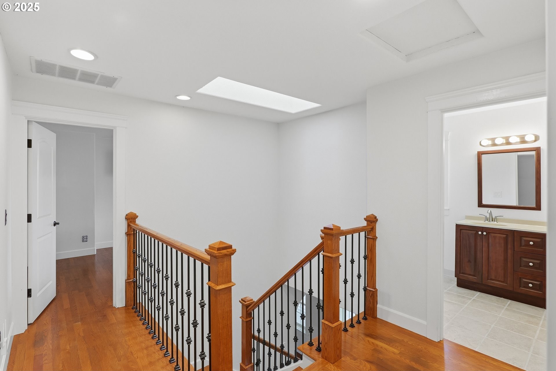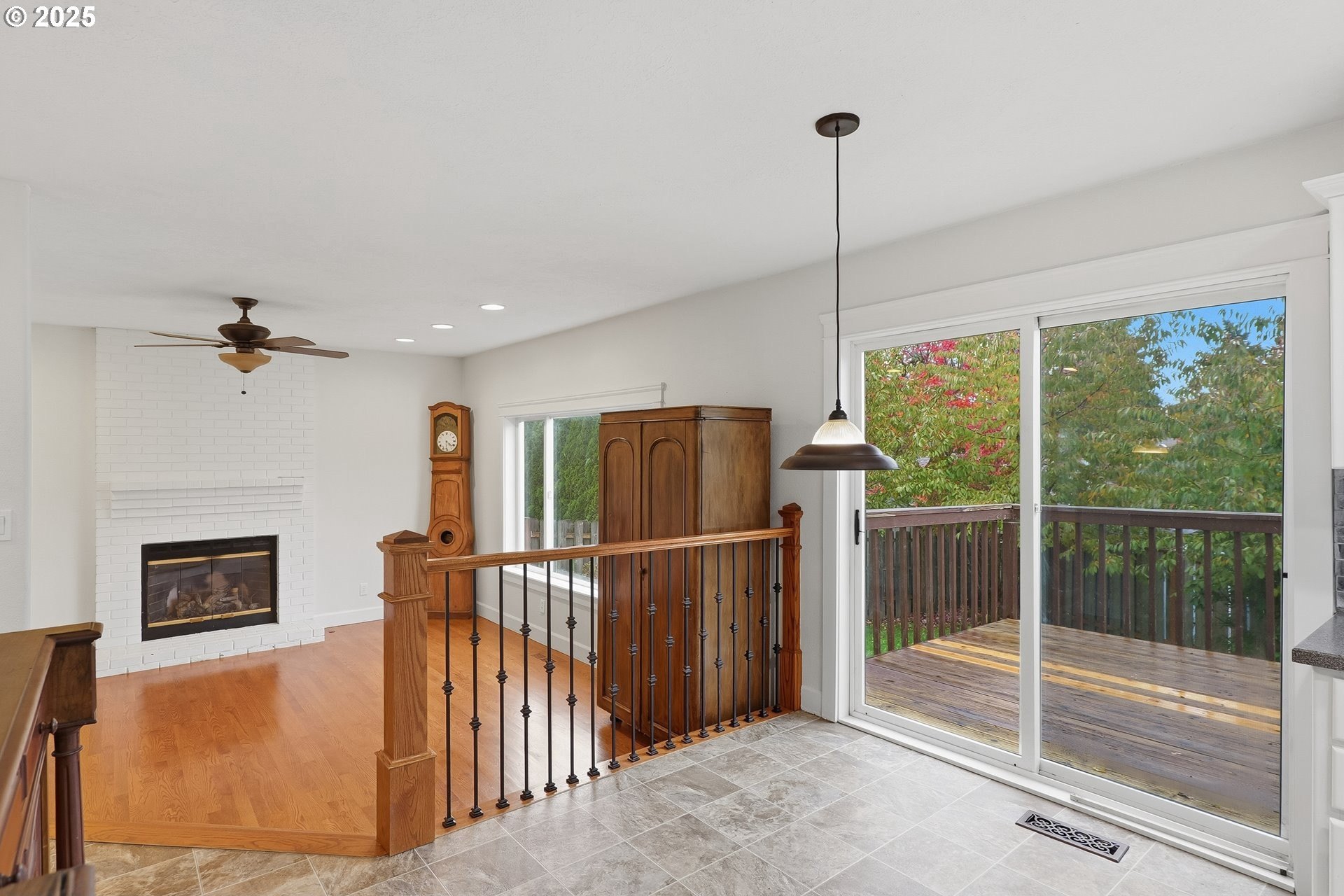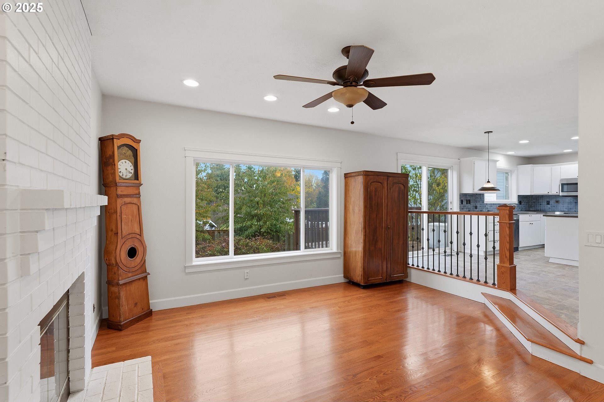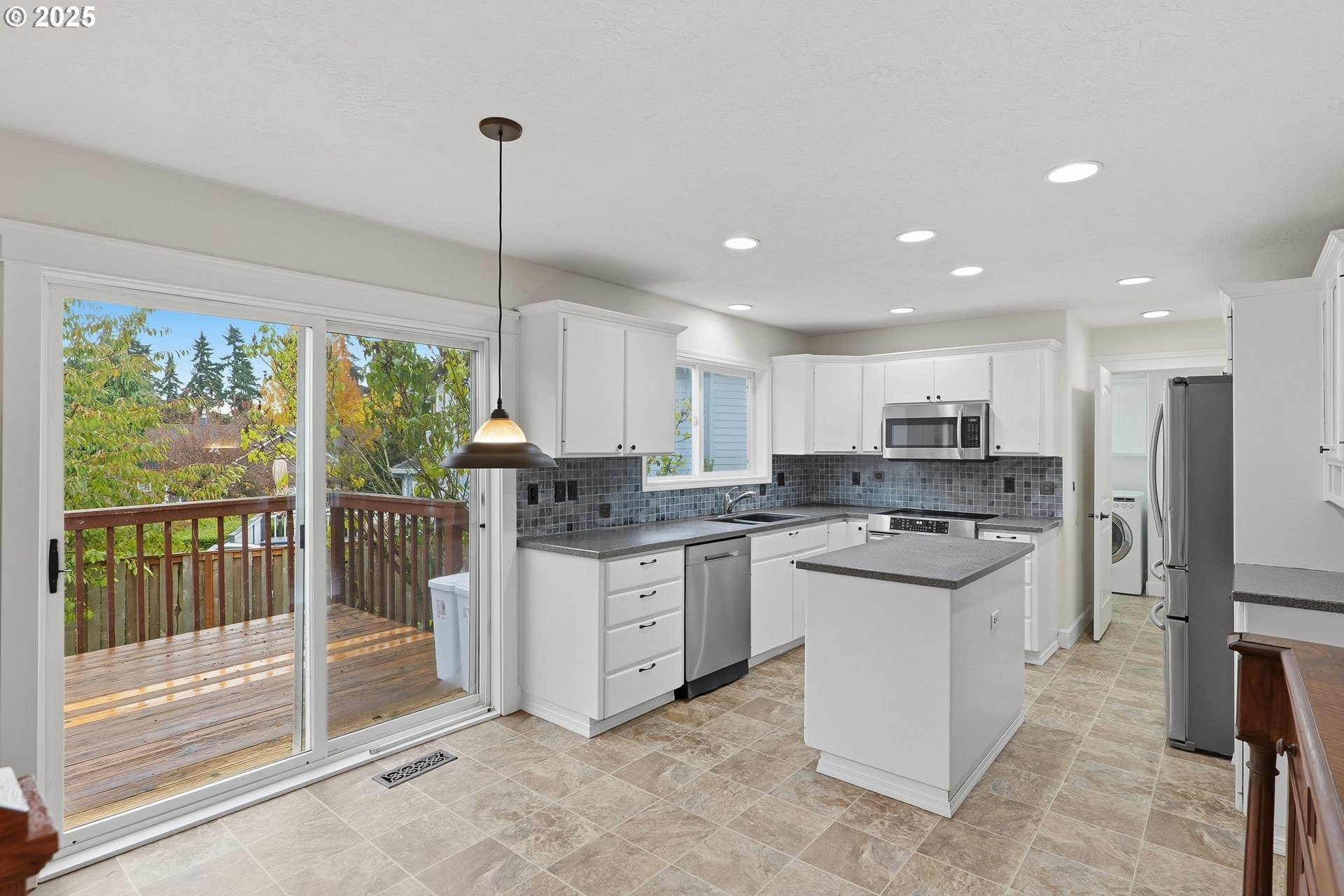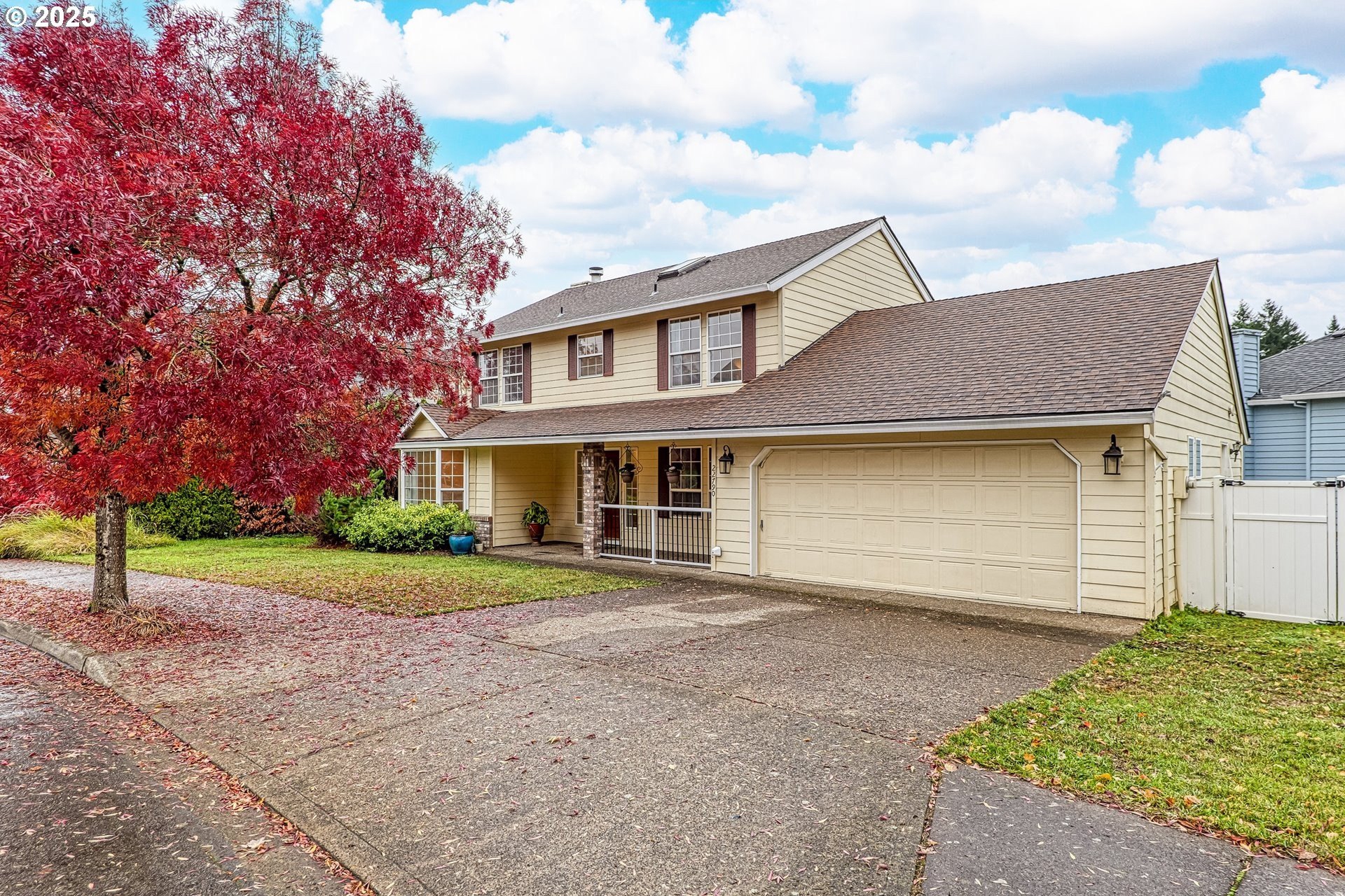 Easy-access driveway and welcoming covered porch! The entire interior has just been freshly repainted, creating a bright and inviting feel throughout. Enjoy morning sunlight from the east-facing kitchen window, complete with added can lighting—ideal for the functional cook. Beautiful hardwood floors flow through the home. Updates include a new roof (2015), Insta hot water system, newer appliances, and central AC (installed in 2015) for year-round comfort. The oversized two-car garage offers ample space for storage or projects and includes a stand-up freezer. The newer freestanding range features induction cooking and air-fryer options. Sliding doors off the kitchen open to the deck—perfect for outdoor dining or relaxing.