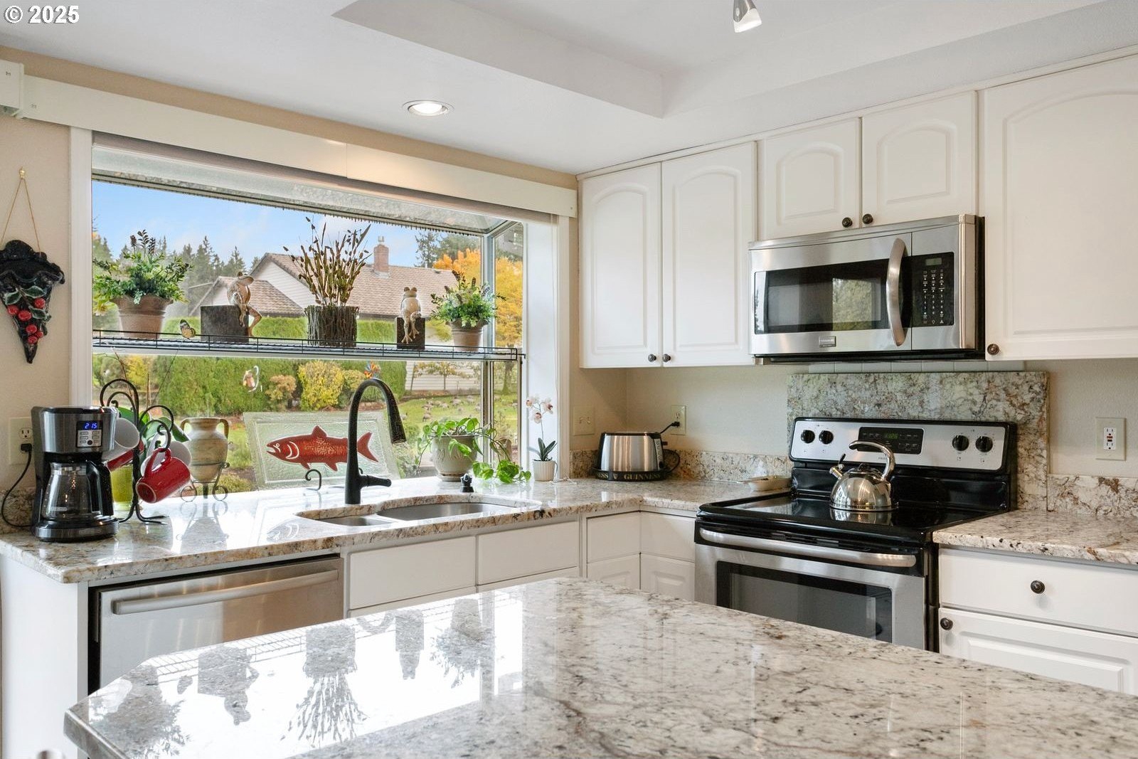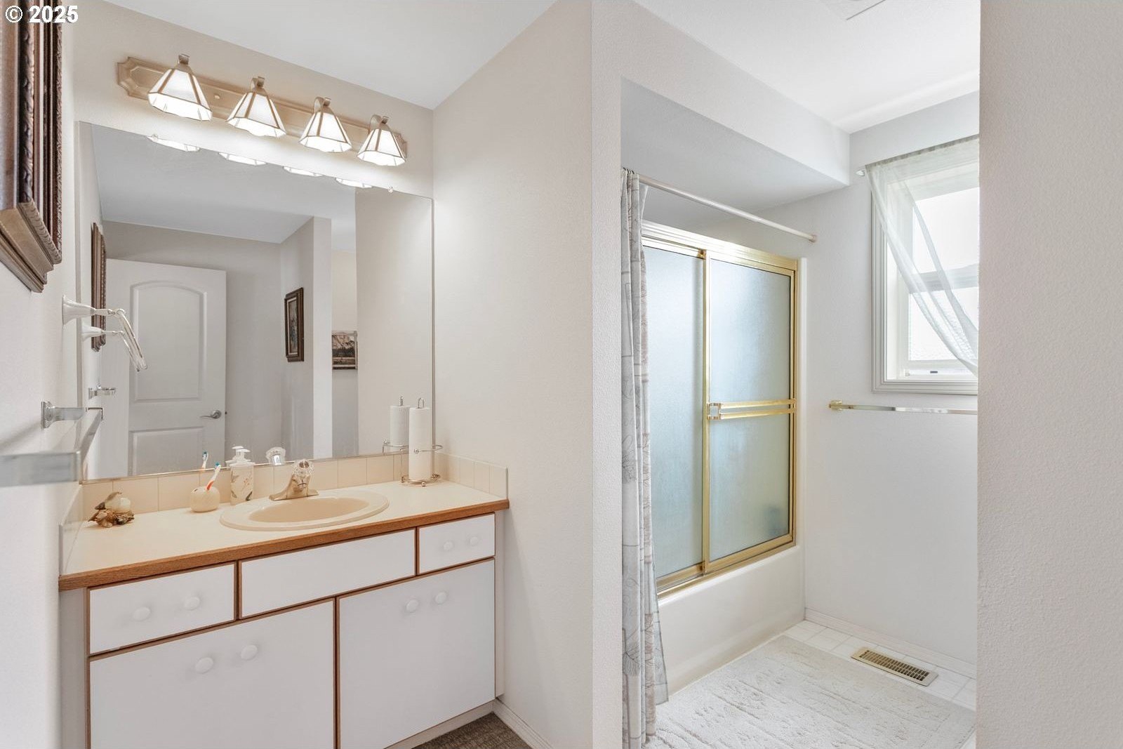 A rare find in Fairway Village! This beautiful home offers fairway frontage overlooking a tranquil pond—perfectly positioned to enjoy the views while being tucked away from stray golf balls. Experience the best of active 55+ living in one of Southwest Washington’s most desirable communities, where peaceful surroundings meet vibrant amenities.Step inside to an abundance of main-level living, featuring formal living and dining spaces filled with natural light and anchored by a cozy gas fireplace. The kitchen offers granite counters, an island for extra prep space, and a picture-perfect view of the fairway and ponds. The main-level primary suite includes a spacious layout, dual sinks, and a roll-in shower for easy accessibility.Upstairs, enjoy a versatile loft area ideal for hobbies or office space, along with two additional bedrooms and a full bath. The third bedroom’s private balcony provides a serene vantage point to soak in your surroundings.Outdoors, the expansive back patio is designed for relaxation and entertaining alike, surrounded by thoughtfully landscaped gardens, multiple water features, and tranquil viewsFairway Village residents enjoy an active, social lifestyle with a private 9-hole golf course, community clubhouse, gym, pool, sauna, billiards room, library, ballroom, and numerous hobby clubs and activities.
