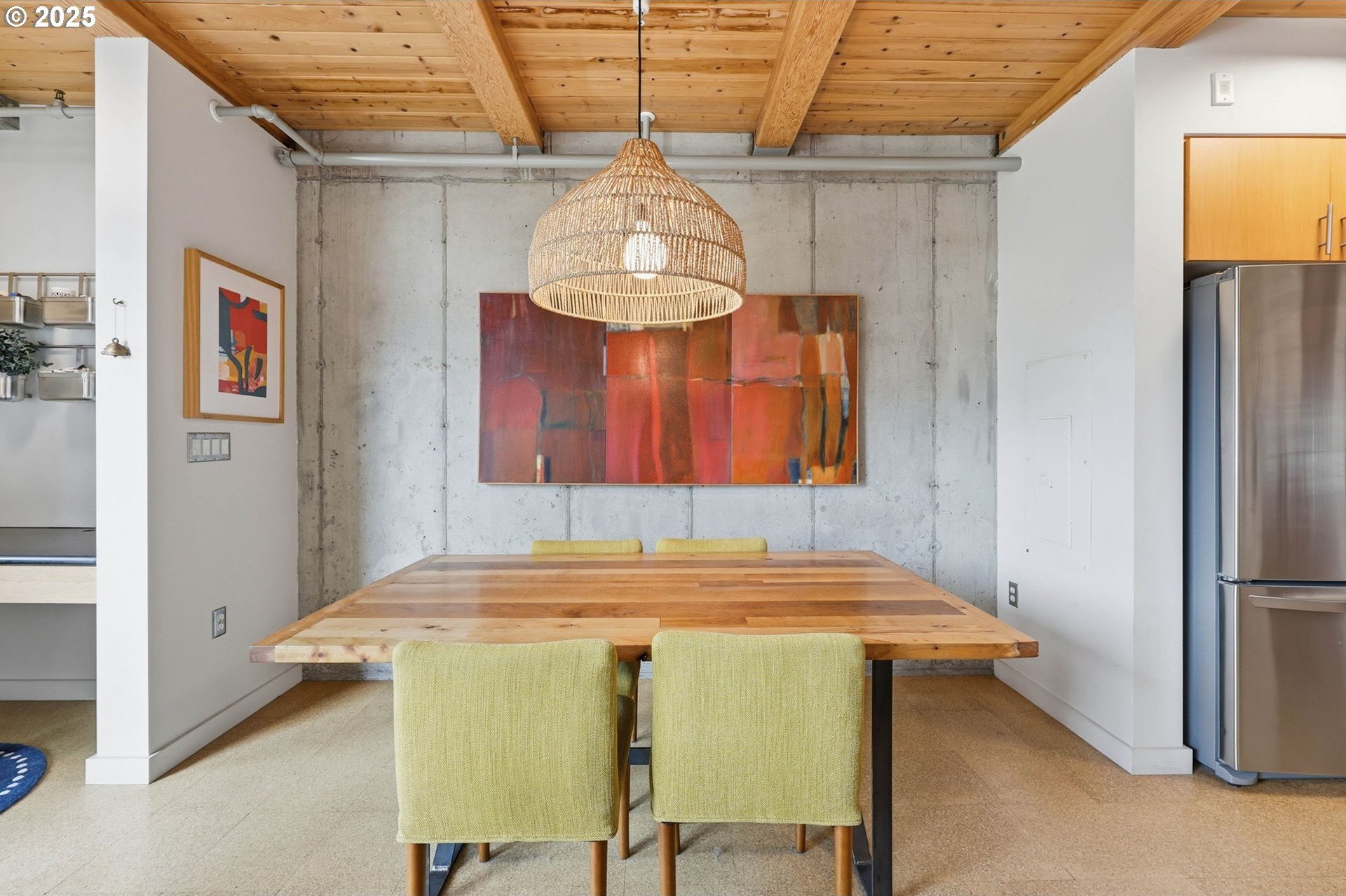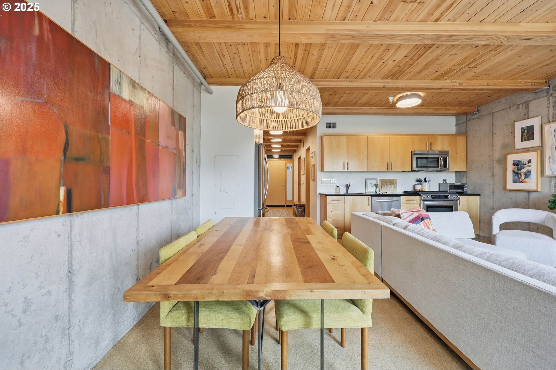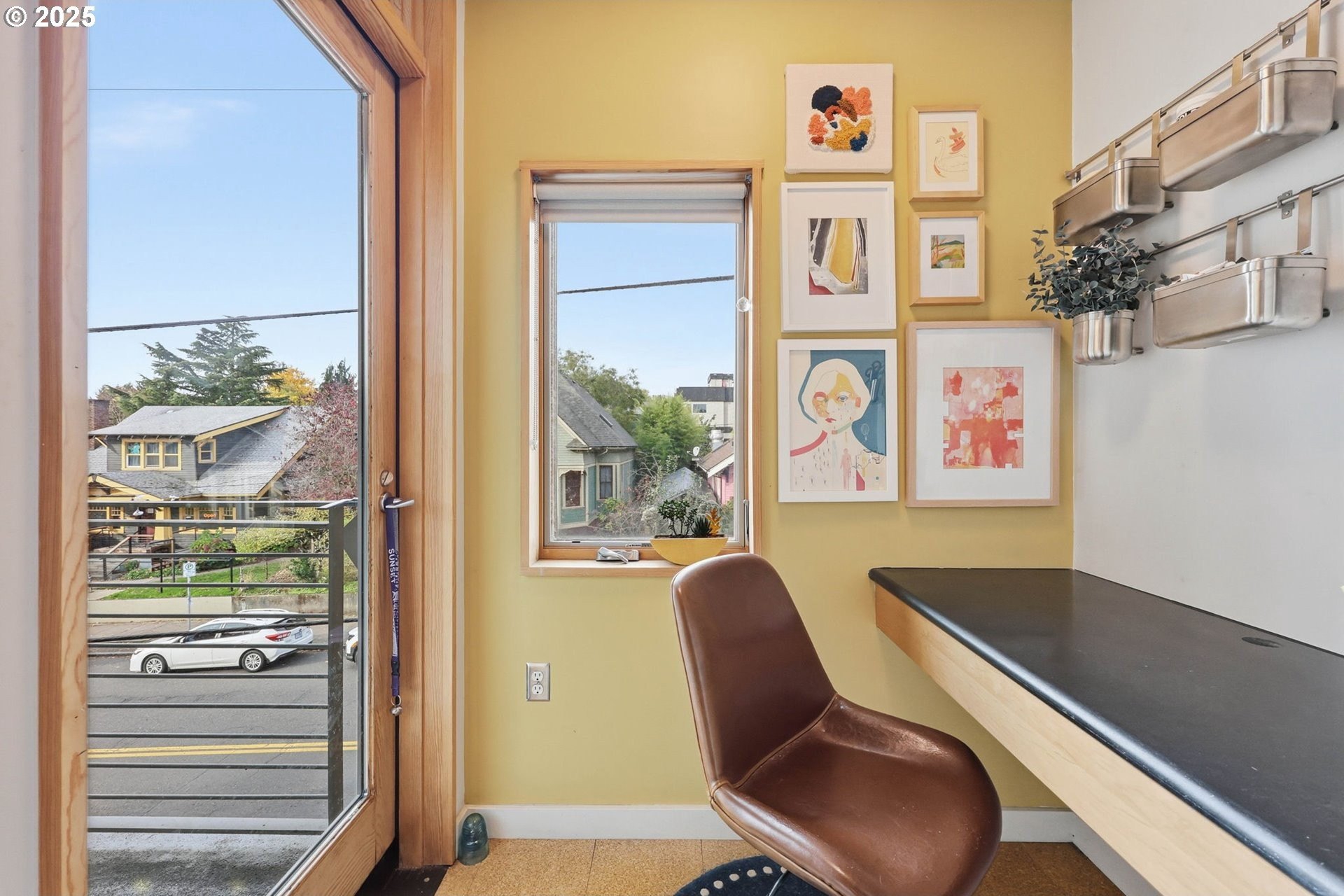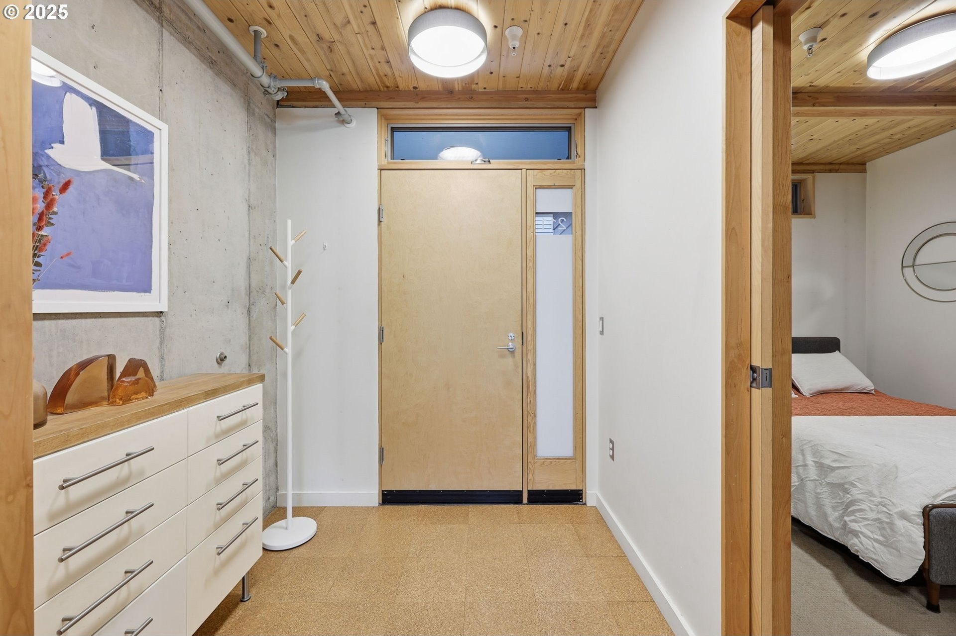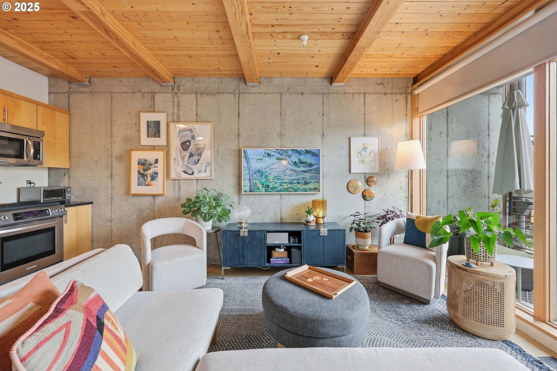 Don’t miss this rare opportunity to own one of only 32 Mississippi Avenue Loft Condos—ideally situated at the heart of one of Portland’s most vibrant neighborhoods. Just steps from renowned local favorites like Fifty Fifty, Prost!, Por Qué No, and Mississippi Studios/Bar Bar, this home places you within easy reach of food carts, microbreweries, coffee and ice cream shops. Constructed with heavy timber, concrete, and steel, the building offers exceptional privacy and sound insulation. Inside, you’ll find a modern, light-filled space featuring knotty pine ceilings, concrete walls, cork floors, an open floor plan, stainless steel appliances, gas cooking, and built-ins throughout. The bathroom showcases tile floors and a tiled shower surround. Additional highlights include an in-unit laundry area, a foyer with custom cabinetry, a built-in office nook, and a private balcony overlooking bustling Mississippi Avenue. This LEED Gold–certified building also offers air conditioning, a serene bamboo-filled courtyard, deeded secure parking, and optional storage available for purchase. Conveniently located near parks and freeways, this condo blends sustainable modern living with the best of Portland’s urban lifestyle. The HOA covers all but electricity! View the video walkthrough at:https://tinyurl.com/zmwb5jcn
