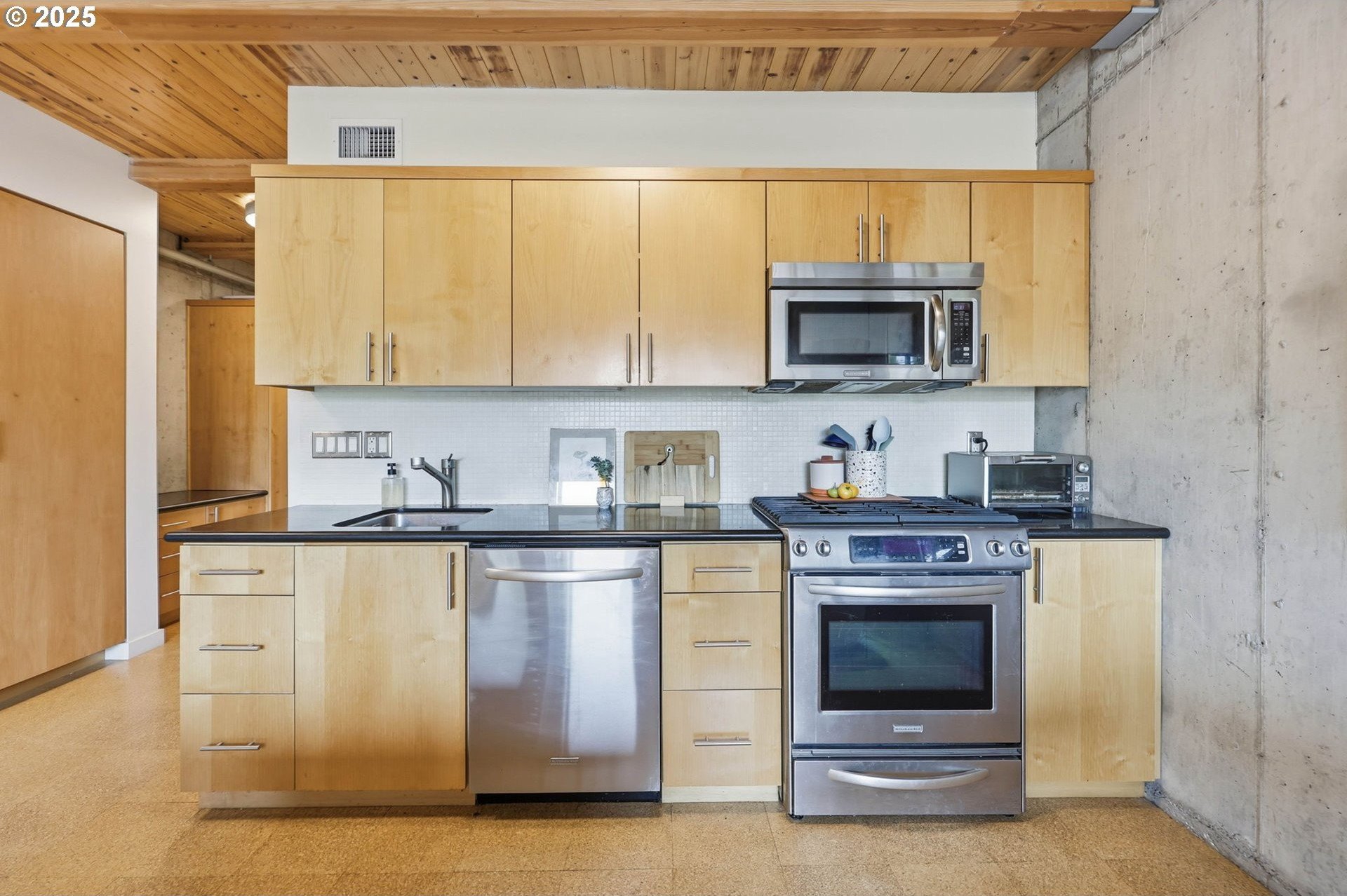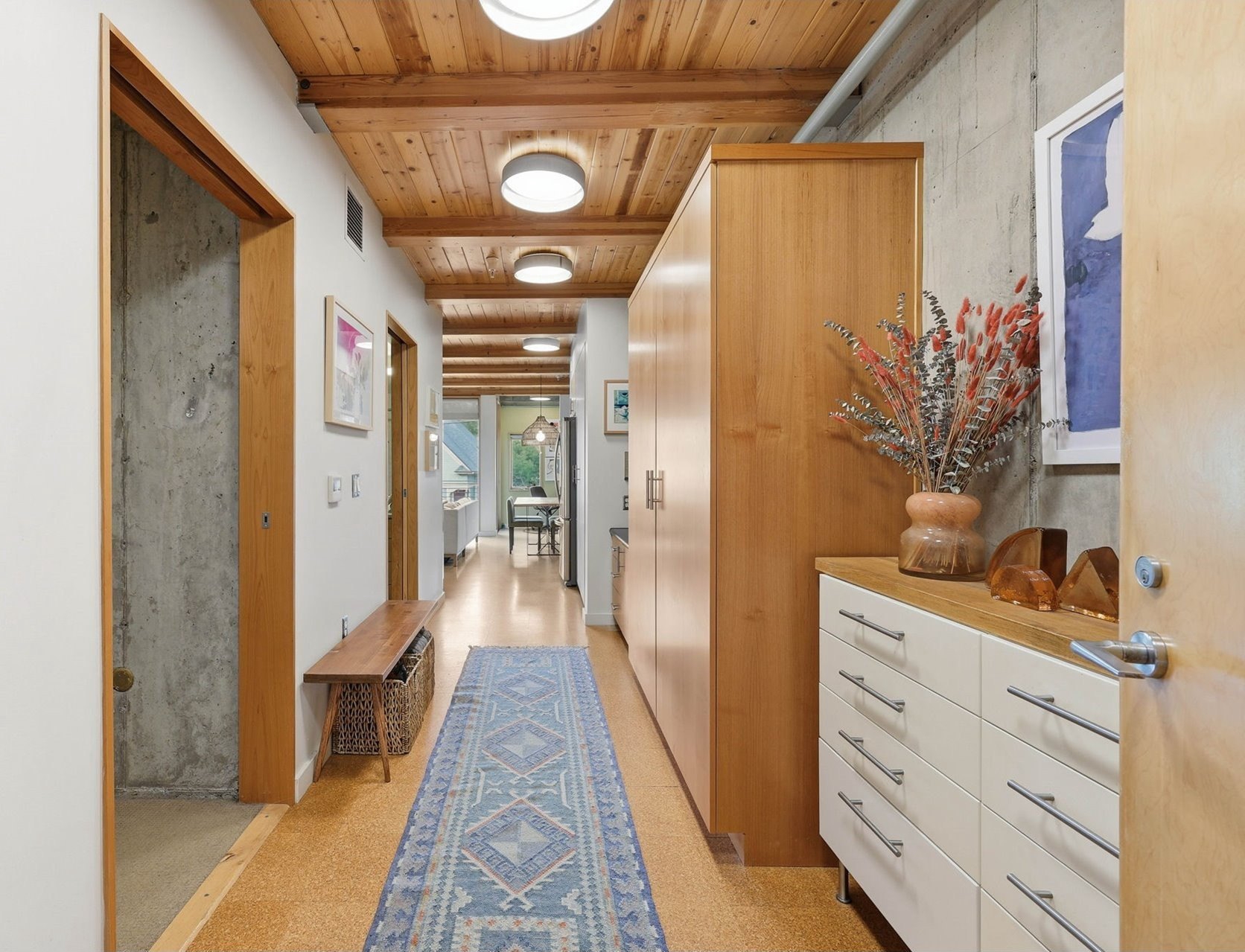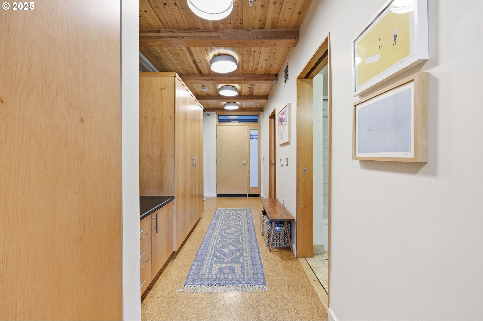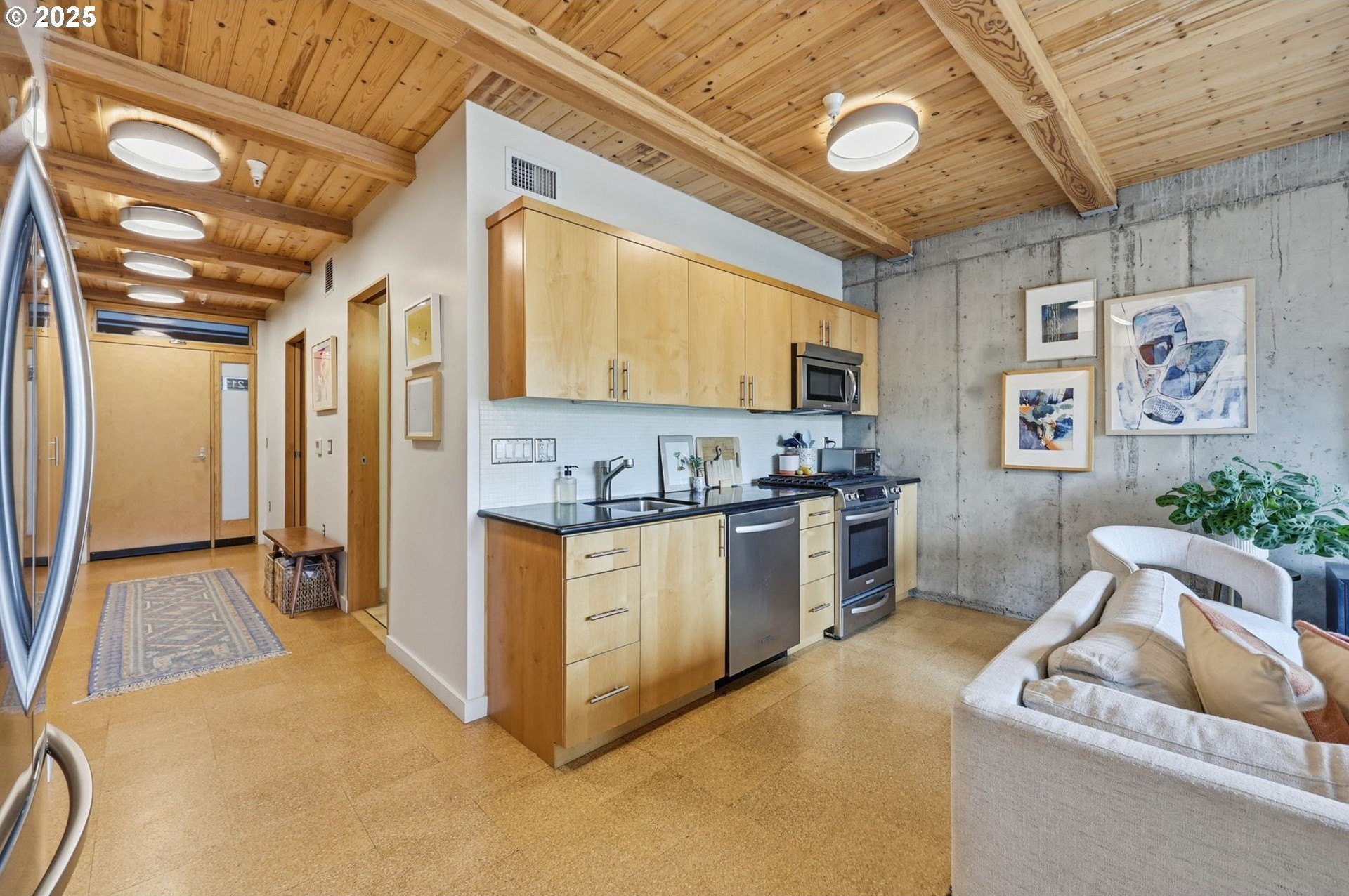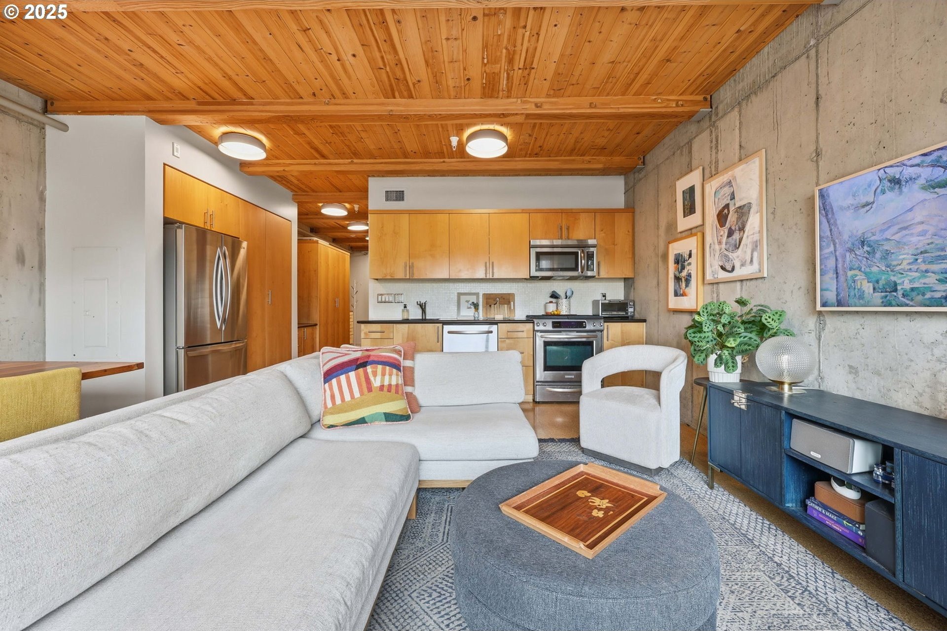 Don’t miss this rare opportunity to own one of only 32 Mississippi Avenue Loft Condos—ideally situated at the heart of one of Portland’s most vibrant neighborhoods. Just steps from renowned local favorites like Fifty Fifty, Prost!, Por Qué No, and Mississippi Studios/Bar Bar, this home places you within easy reach of food carts, microbreweries, coffee and ice cream shops. Constructed with heavy timber, concrete, and steel, the building offers exceptional privacy and sound insulation. Inside, you’ll find a modern, light-filled space featuring knotty pine ceilings, concrete walls, cork floors, an open floor plan, stainless steel appliances, gas cooking, and built-ins throughout. The bathroom showcases tile floors and a tiled shower surround. Additional highlights include an in-unit laundry area, a foyer with custom cabinetry, a built-in office nook, and a private balcony overlooking bustling Mississippi Avenue. This LEED Gold–certified building also offers air conditioning, a serene bamboo-filled courtyard, deeded secure parking, and optional storage available for purchase. Conveniently located near parks and freeways, this condo blends sustainable modern living with the best of Portland’s urban lifestyle. The HOA covers all but electricity! View the video walkthrough at:https://tinyurl.com/zmwb5jcn