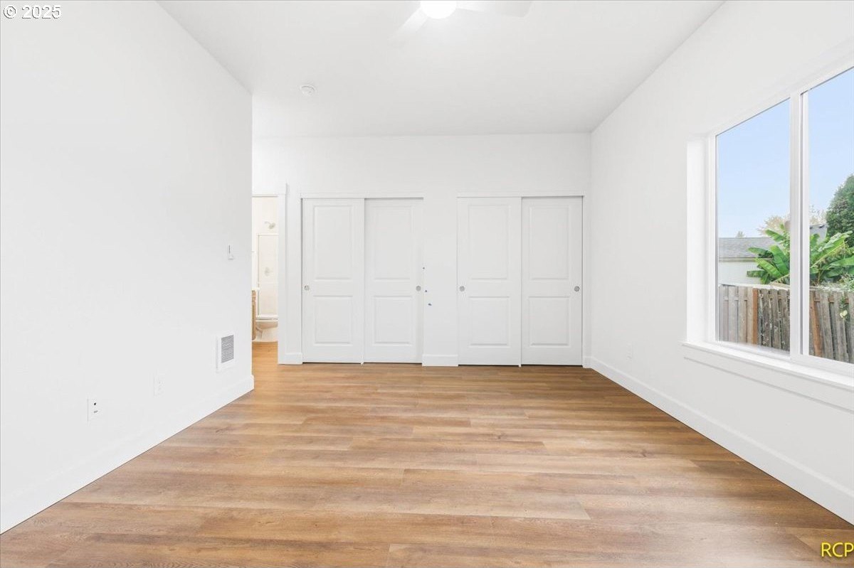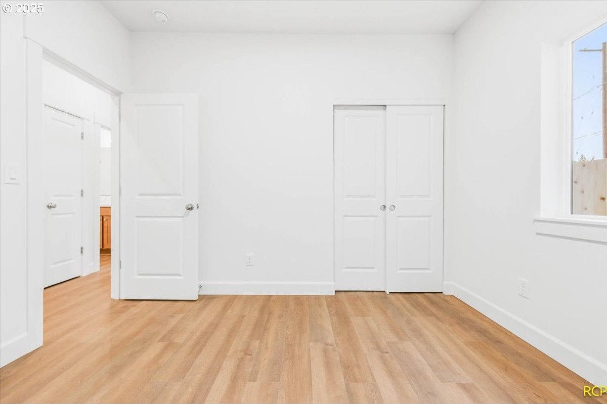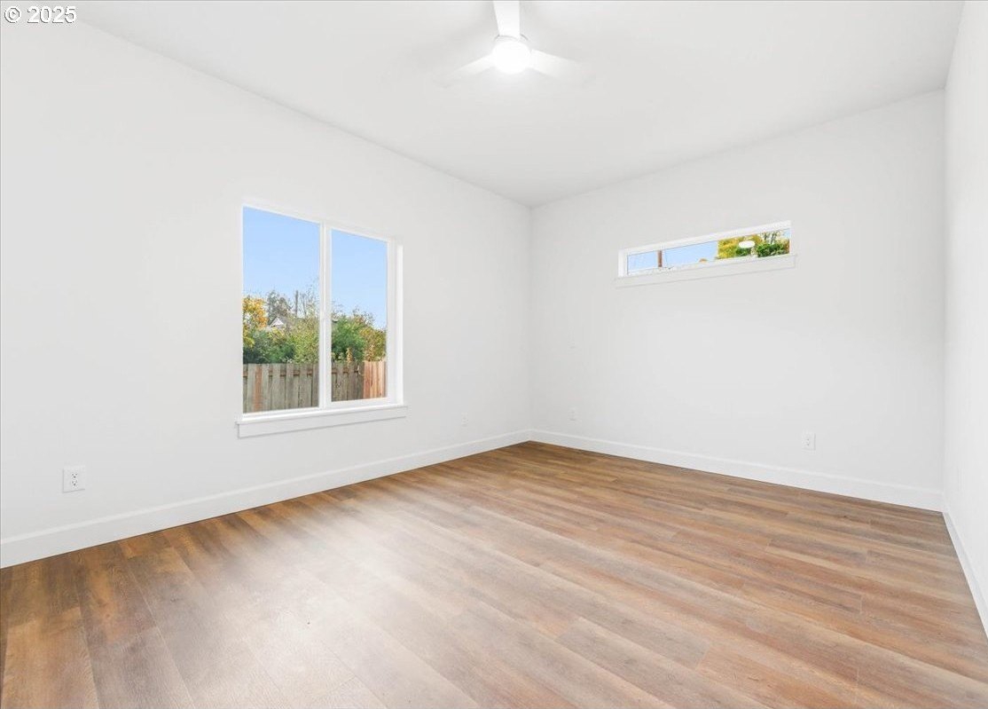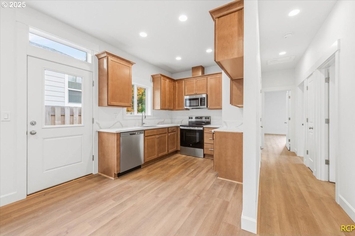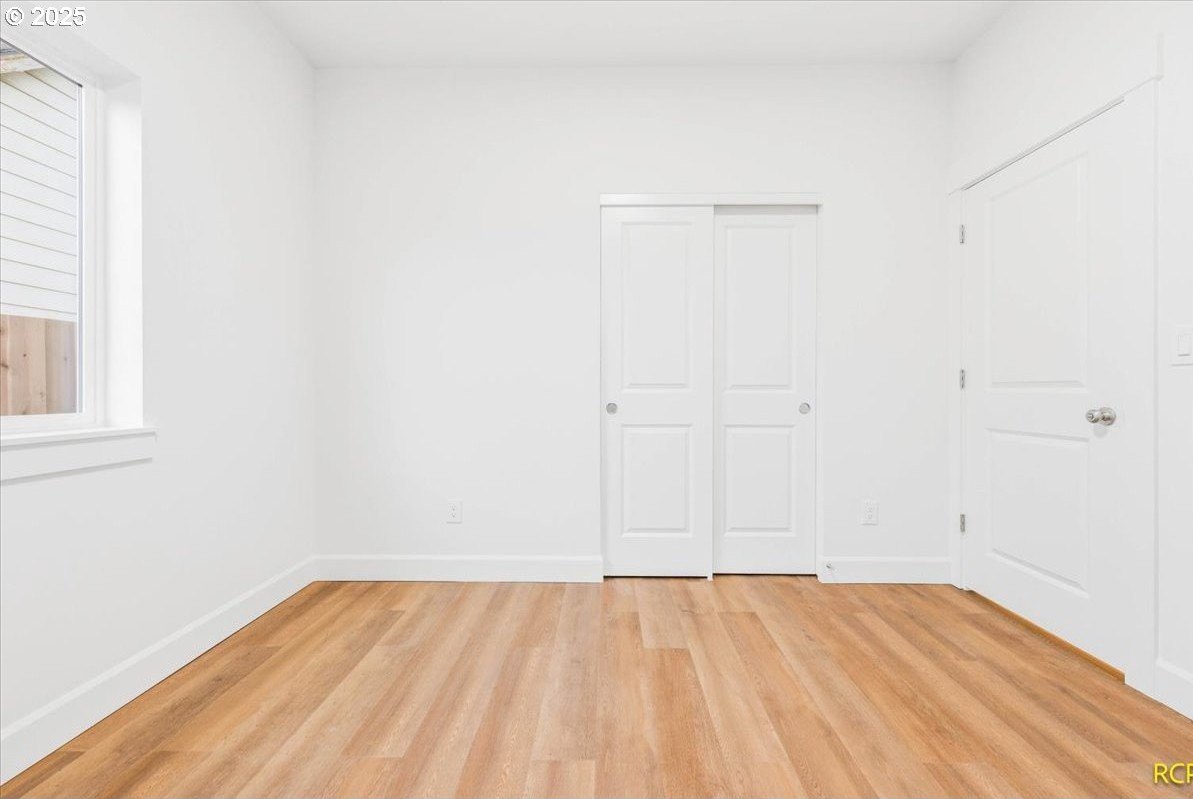The impossible-to-find—brand-new, single-level ranch with a garage on its own lot in the heart of North Portland! This modern home blends clean, contemporary design with everyday functionality. A bright, open-concept layout connects the kitchen, dining, and living areas. The kitchen features white cabinetry, quartz countertops, stainless steel appliances and designer finishes. Expansive windows and high ceilings flood the home with natural light. Enjoy spacious bedrooms, a luxurious primary suite with a double closet, and a private, fully fenced backyard and professional landscaping. Just blocks from two parks, Roosevelt High School and neighborhood shops and eateries. Eligible for 10-year Property Tax Abatement. This price is subject to the Buyer qualifying for City of Portland SDC Waivers. [Home Energy Score = 8. HES Report at https://rpt.greenbuildingregistry.com/hes/OR10242678]