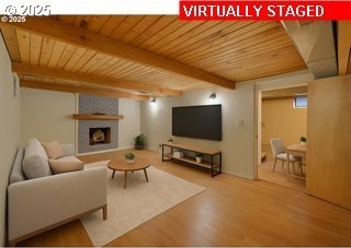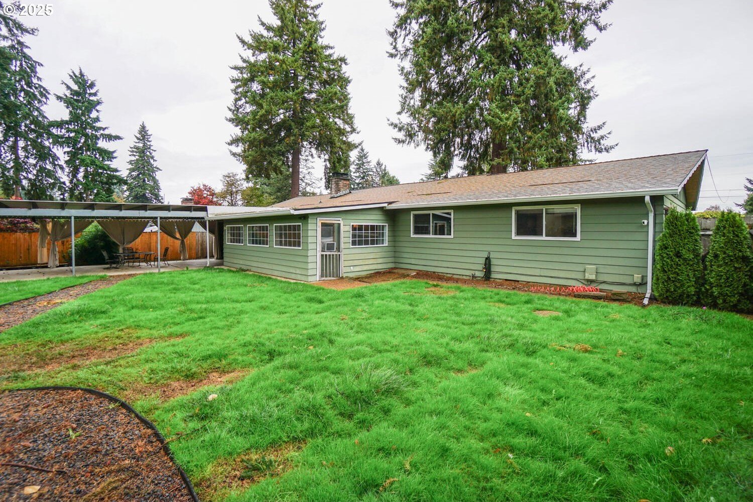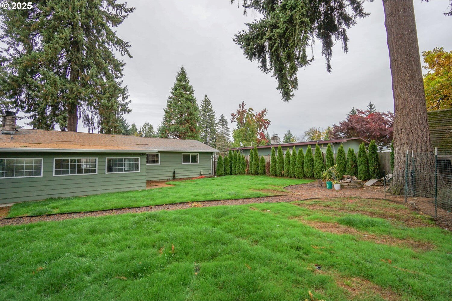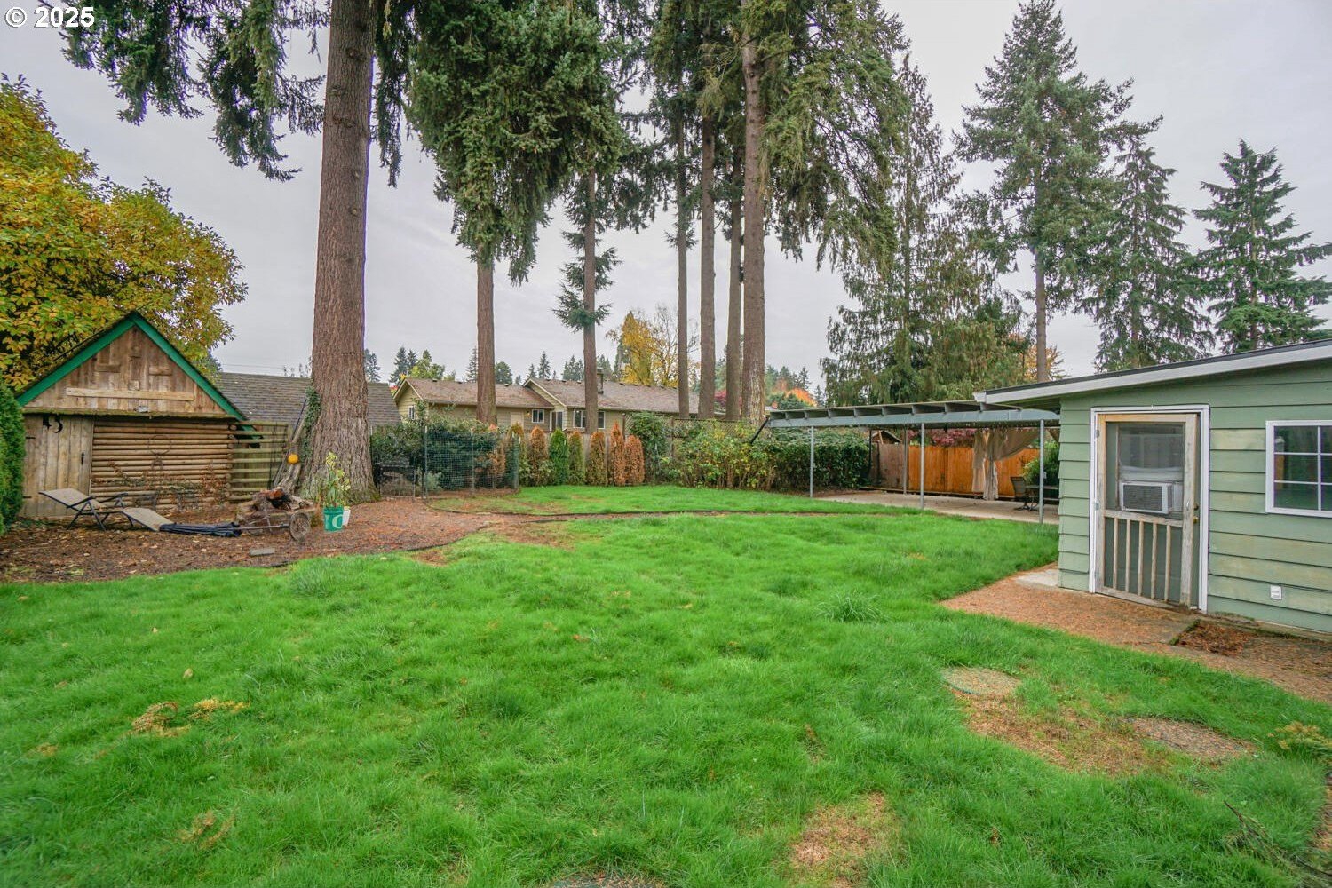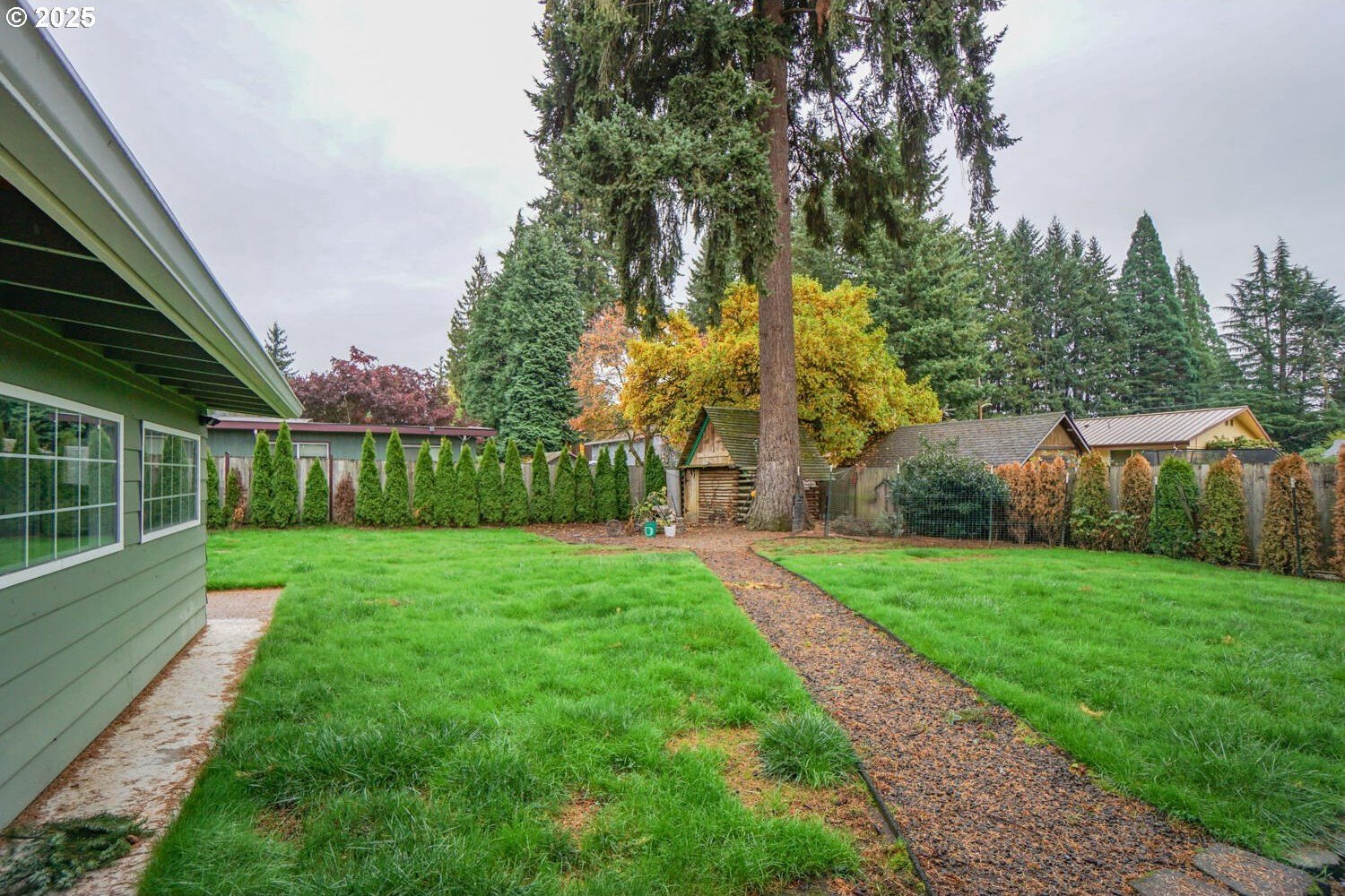 With 2,288 square feet of thoughtfully designed living space, this 3-bedroom, 2-bath home offers warmth, functionality, and a sense of calm from the moment you arrive.Step inside to find gleaming original hardwood floors, large windows that invite natural light, and a welcoming living room centered around a cozy fireplace with insert. The heart of the home is the custom kitchen—featuring quartz countertops, rich wood soft-close cabinetry, and stainless steel appliances, all included. The spacious primary bedroom is located on the main level and features a private ensuite bath with a beautiful custom-tiled walk-in shower.The home is equipped with a forced-air furnace and updated windows for year-round comfort and efficiency.The fully finished basement expands your living options with a second fireplace in the large family room—perfect for movie nights or entertaining guests. A separate den or office provides an ideal space for remote work, creative projects, or even a home library. This versatile lower level is also perfect for YouTube or content creators, offering plenty of room to design your own studio setup or workspace. Abundant storage adds even more functionality to this level.Off the back, a bright and inviting sunroom offers a relaxing space to enjoy morning coffee while overlooking the lush backyard. Sitting on over a quarter acre, the grounds are private, green, and full of character. A whimsical “Hobbit House” storage shed adds both charm and utility. The oversized two-car garage includes a convenient pull-through overhead door leading to a massive 48' x 18' covered patio area—ideal for outdoor dining, entertaining, or covered parking.Nestled in a quiet, established neighborhood, this home feels secluded yet remains close to I-5, shopping, dining, the I-5 Bridge, and PDX—making commuting a breeze. No HOA or CC&Rs, so you can enjoy your property your way.A rare find that perfectly blends mid-century charm, modern upgrades, and unmatched versatility