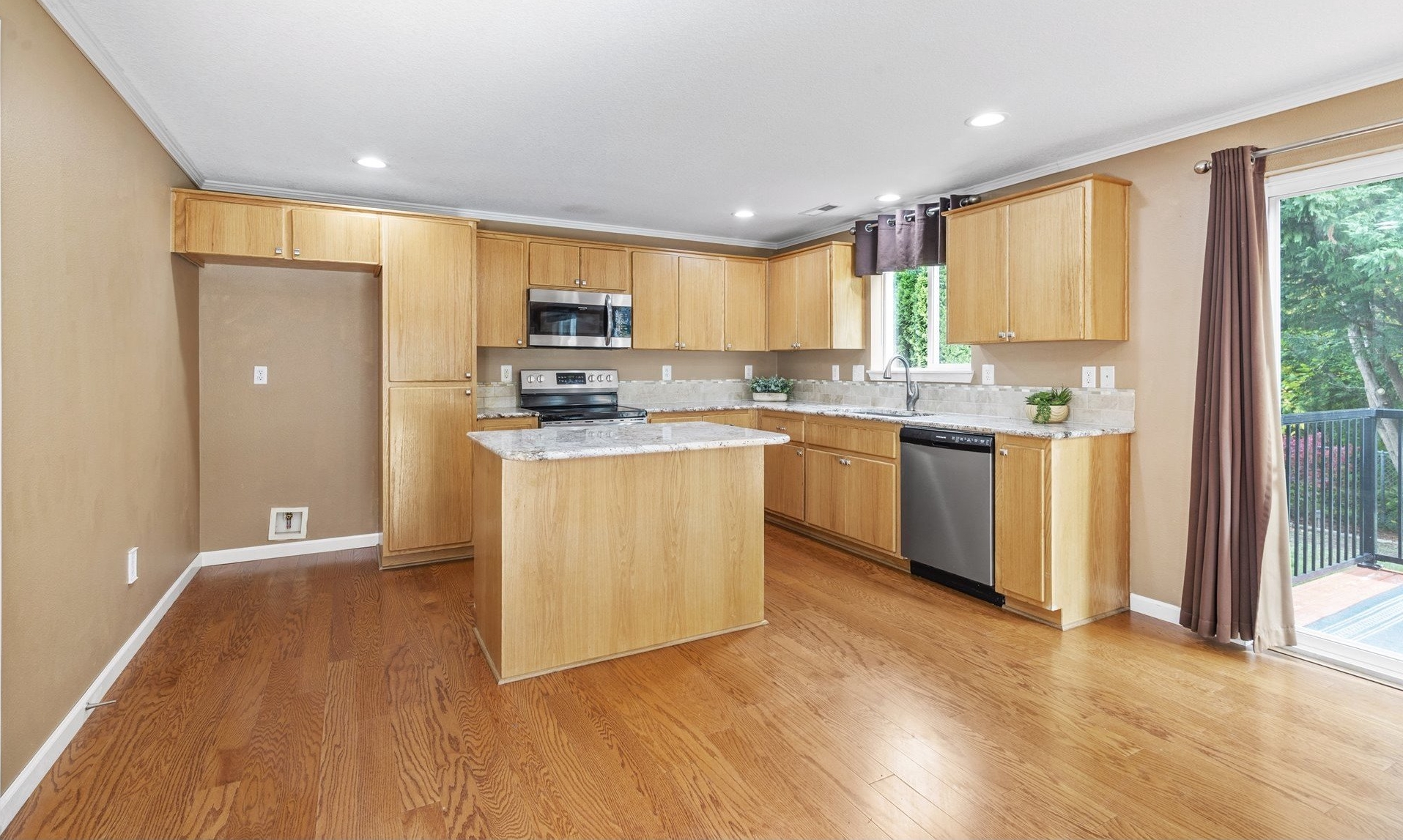 This beautifully updated 4-bedroom, 2.5-bath home offers comfort and style in quiet, Avalon Hills neighborhood! Enjoy brand-new carpet installed October 2025, newer roof (2018) and newer A/C (2018) for peace of mind. The open-concept main level features gorgeous hardwood floors, granite countertops and backsplashes throughout + a kitchen that shines w/stainless steel appliances, an island, and plenty of workspace — all opening to a cozy family room with a gas fireplace. Upstairs you’ll find four spacious bedrooms, including a comfortable primary suite. Outside, the private, fully fenced backyard backs to a beautiful, treed property and include 2 wood decks, garden beds, a flagstone path, and a large garden shed — perfect for relaxing or entertaining. Located close to shopping, dining + easy access to I-5 and 1-205. Just minutes from Costco, parks and great schools, this home is the perfect blend of quiet living and convenience. Don’t miss your chance to make it yours!