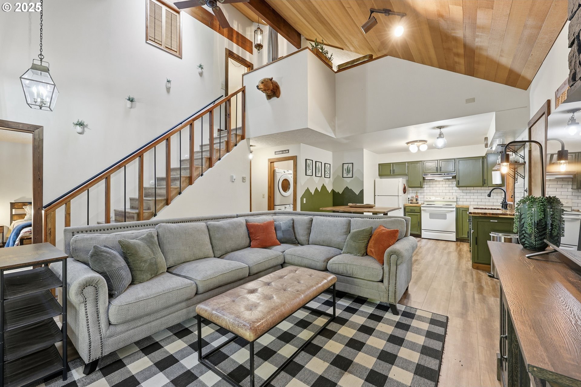 Looking for a turnkey, fully furnished short-term rental near Mt. Hood? This remodeled Timberline Rim home is ready to go. Updated in 2023 with all-new flooring, stylish finishes, and complete furnishings, it was designed with short-term rental use in mind and shows beautifully. The vaulted living room features warm cedar ceilings and a skylight that fills the space with natural light. Three bedrooms plus a loft provide flexible sleeping arrangements, while the primary suite includes vaulted ceilings, a walk-in closet, an en-suite bathroom, and private access to a second-story deck. Enjoy a private, fenced backyard and large covered front and side decks for year-round outdoor living. The Timberline Rim community offers access to the Sandy River, a lodge, swimming pool, tennis courts, and basketball court—all just minutes from Brightwood and Welches for dining and recreation. Located about an hour from Portland and close to the slopes of Mt. Hood, this fully furnished, move-in-ready home is an excellent option for a vacation property, rental investment, or full-time residence.