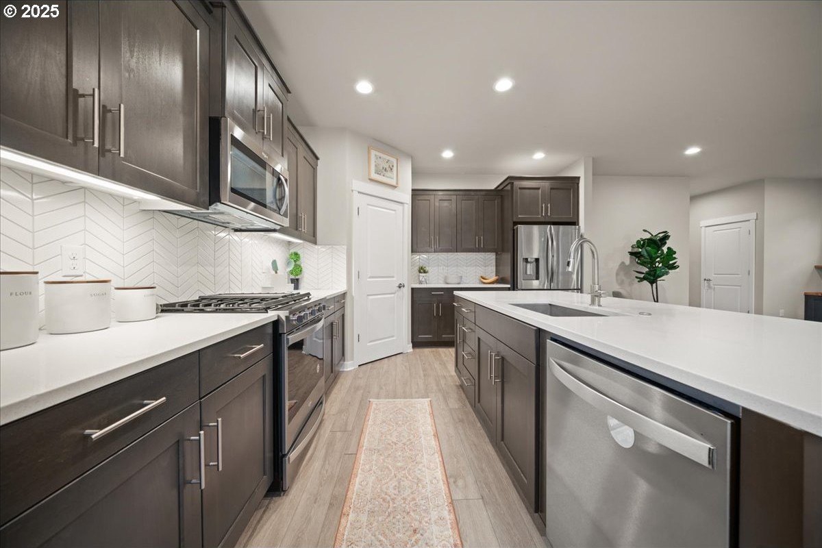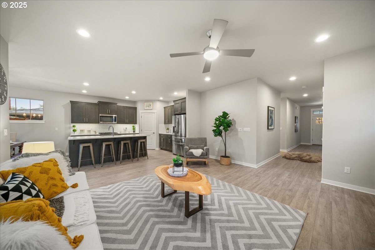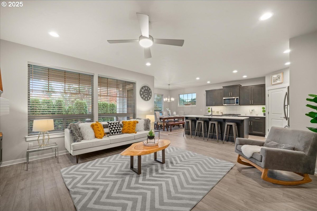 Welcome to this nearly brand new, four bedroom, three full bath farmhouse style home, nestled in one of Portland Metro’s most sought after communities. This is the only home for sale in the Frog Pond Neighborhood that delivers a full bath and bedroom on the main level at this unbeatable price! Just steps from your front door, the brand-new Frog Pond Primary School opens for the 2026-2027 school year. Move-in ready with all appliances included and in pristine condition, this 2,661-square-foot gem offers thoughtfully designed living space perfectly suited for you and your loved ones. The main floor is both practical and inviting, featuring a convenient full bathroom and awarm atmosphere ready for you to create lasting memories. Step outside to the beautiful covered back patio that is ideal for year around entertaining or quiet mornings with coffee. Inside, classic character meets artisan details: a living room accented by stunning live-edge shelving for rustic elegance, and an upstairs loft wrapped in gorgeous natural wood panel walls for a cozy retreat. This home blends comfort and distinctive style, delivering a spacious, welcoming environment for everyday living and gatherings. Ideally located in a wonderful community and minutes from shopping and highway access, this exceptional property offers the space, charm, and convenience discerning buyers crave. With room to grow and a location that can’t be beat, this is an opportunity you don’t want to miss. Schedule your private showing today or come on Sunday during the Open House from 1-4PM.
