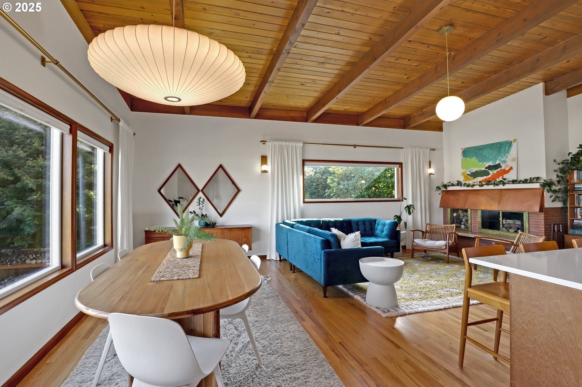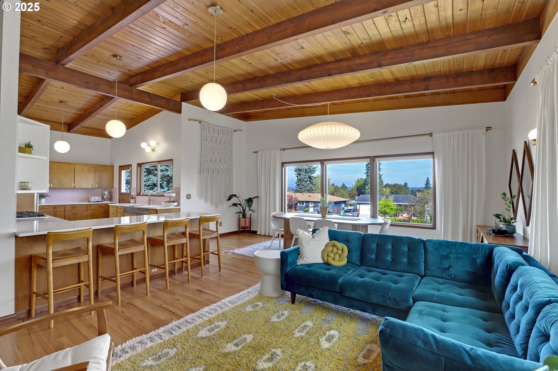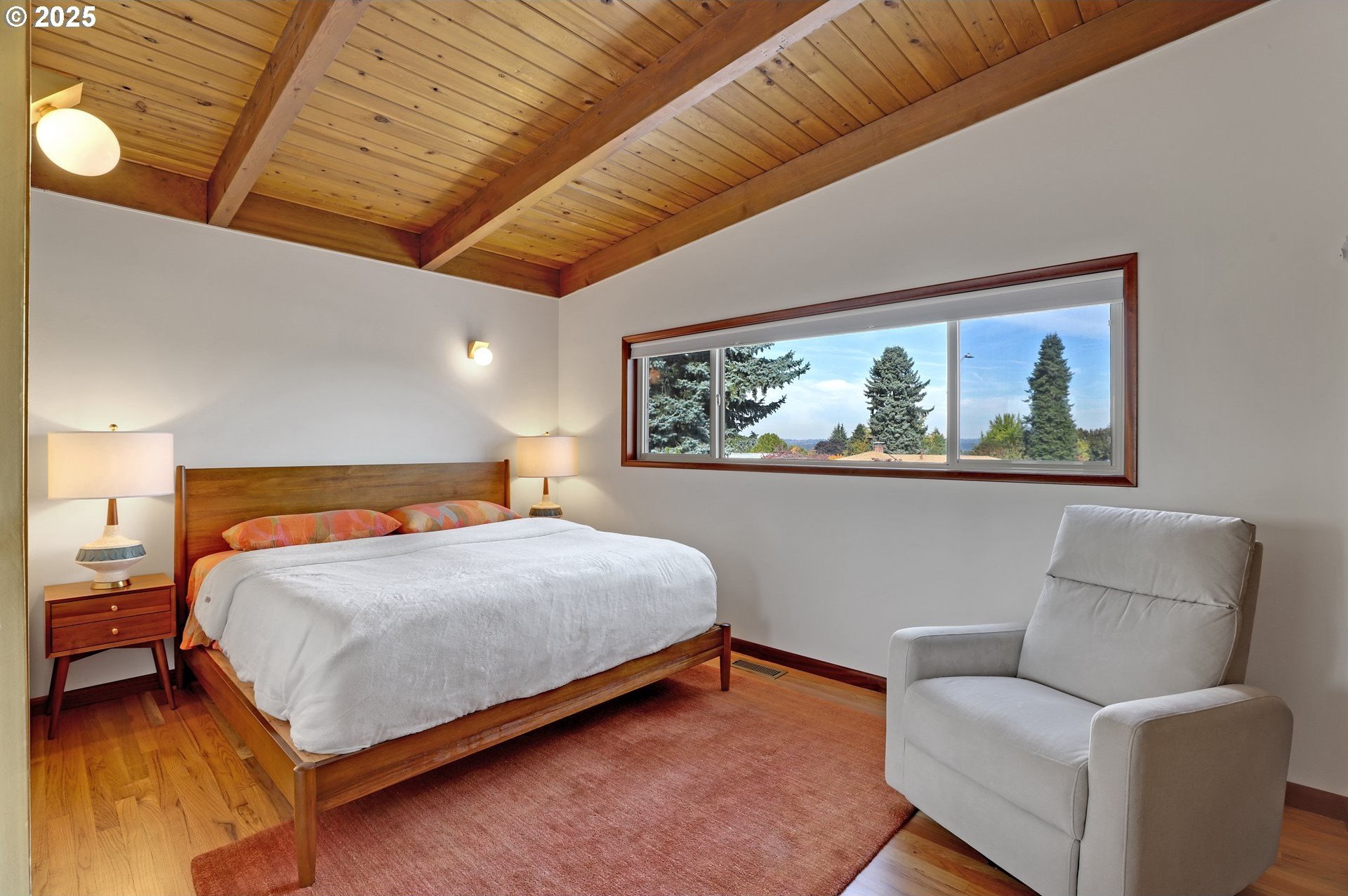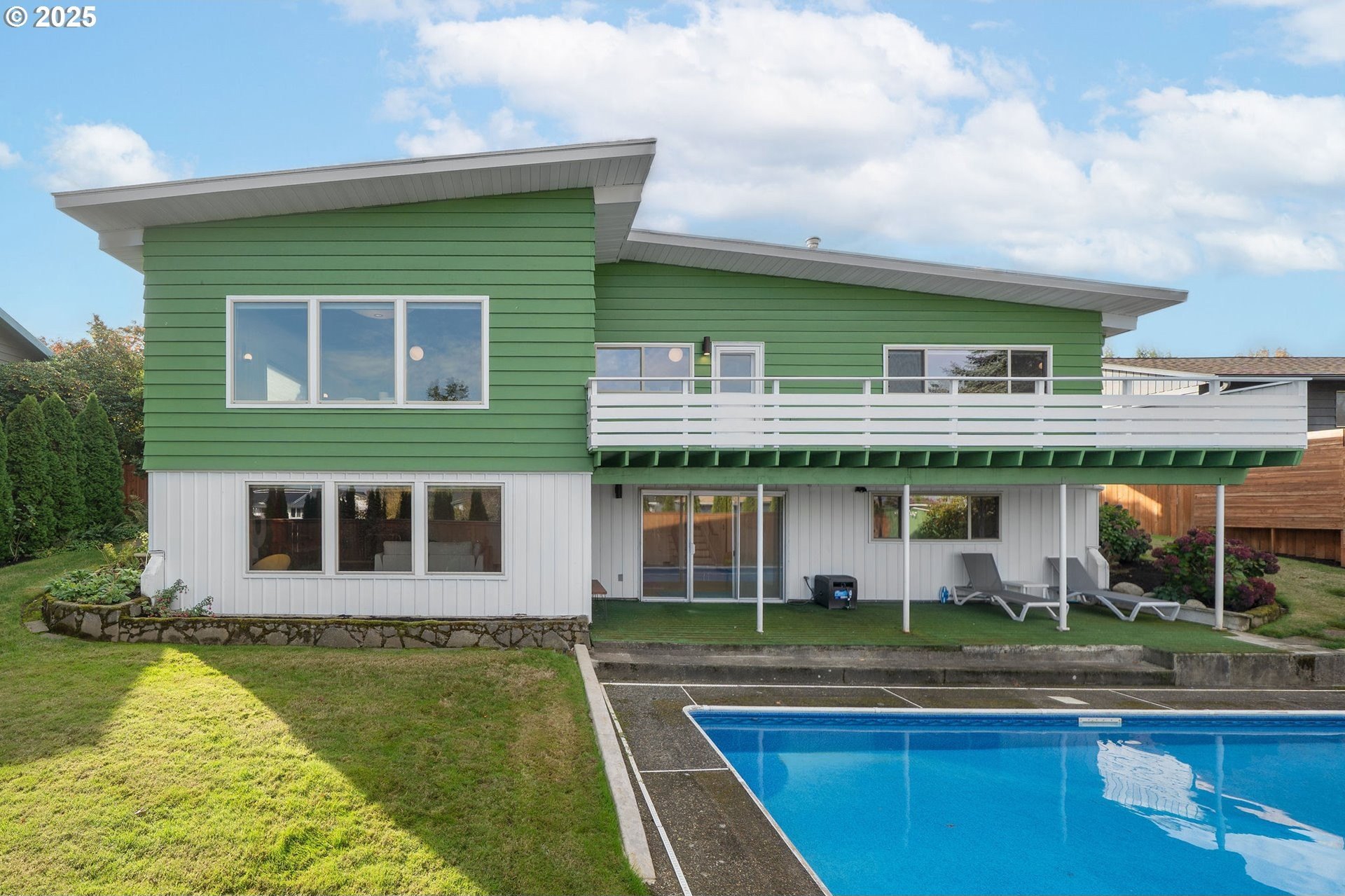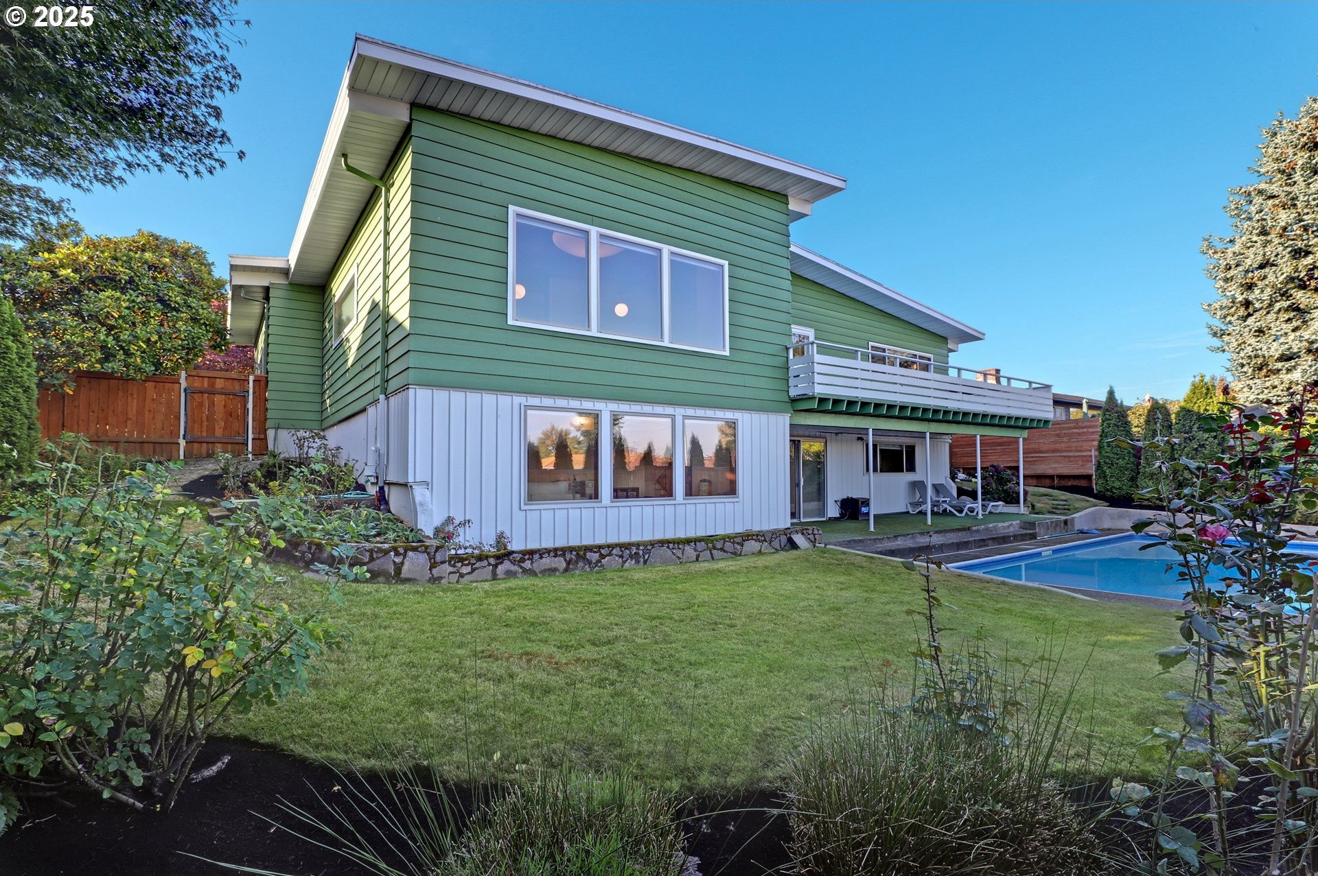 Discover a truly one-of-a-kind mid-century home nestled in the coveted Argay Terrace neighborhood. This 1964 daylight ranch, one of only two built by renowned architect Archie Hodges, showcases unparalleled craftsmanship and views of Mt. St. Helens. As you step inside, you are greeted by vaulted tongue-and-groove cedar ceilings that create an airy and inviting atmosphere. The exposed beams add a touch of architectural elegance, reflecting the timeless style of the 1960s. Every corner of this home is a testament to quality design, featuring beautiful oak hardwood floors and solid core doors that enhance the warm and welcoming feel. The updated kitchen has it all, boasting quartz countertops, a Viking gas range, double oven, Samsung French door refrigerator, Bosch dishwasher, and custom tile backsplash. The bathrooms have also been thoughtfully updated with quartz countertops, Delta fixtures, custom tile, and a new soaking tub for relaxation. One of the standout features of this property is its commitment to preserving the views. The home is equipped with underground power lines, ensuring that your sight-lines remain unobstructed, allowing you to fully appreciate the vistas of Mt. St. Helens year-round. Additional highlights include a new Rinnai tankless water heater, added central air conditioning, a new electrical panel, and refinished hardwood floors upstairs, complemented by new oak hardwood floors downstairs. The home features new light fixtures and rejuvenation fixtures and hardware throughout. Step outside to your fully fenced backyard, featuring a brand new 6' cedar fence for added privacy and an inviting in-ground pool, complete with a new Pentair pool pump and chlorinator. Newly planted 10' Arborvitae ensures a serene and secluded outdoor space. With its rich history and distinctive architecture, this mid-century gem is more than just a home; it is a rare opportunity to own a piece of architectural artistry in one of Portland's most desirable neighborhood. [Home Energy Score = 1. HES Report at https://rpt.greenbuildingregistry.com/hes/OR10242705]