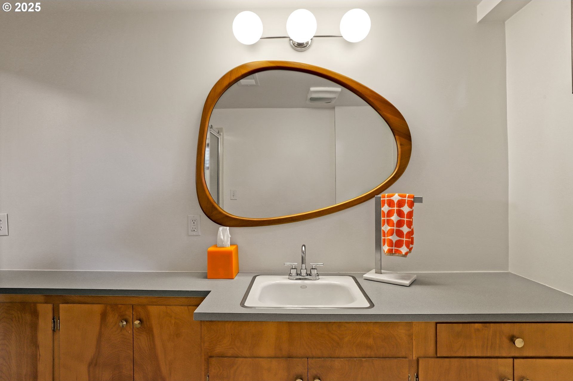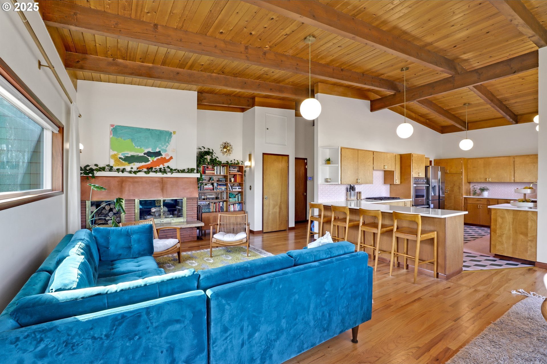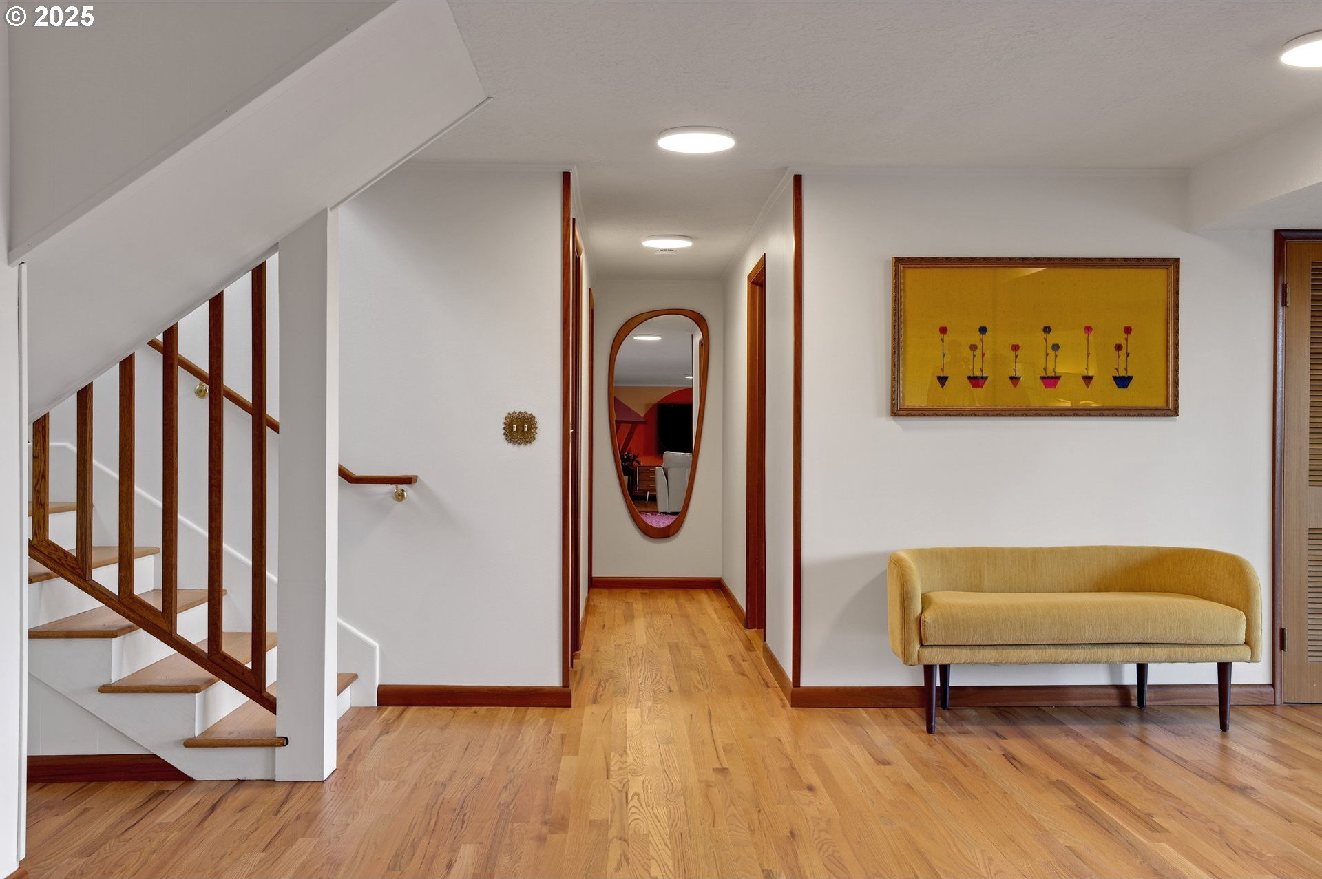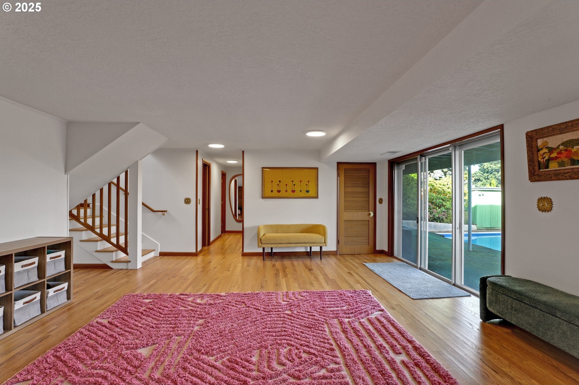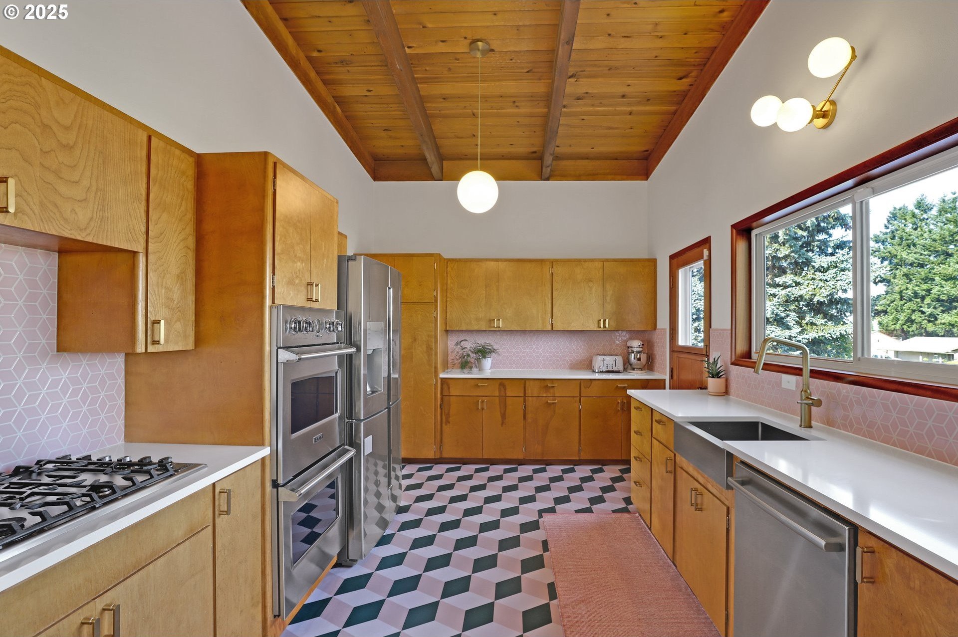 Discover a truly one-of-a-kind mid-century home nestled in the coveted Argay Terrace neighborhood. This 1964 daylight ranch, one of only two built by renowned architect Archie Hodges, showcases unparalleled craftsmanship and views of Mt. St. Helens. As you step inside, you are greeted by vaulted tongue-and-groove cedar ceilings that create an airy and inviting atmosphere. The exposed beams add a touch of architectural elegance, reflecting the timeless style of the 1960s. Every corner of this home is a testament to quality design, featuring beautiful oak hardwood floors and solid core doors that enhance the warm and welcoming feel. The updated kitchen has it all, boasting quartz countertops, a Viking gas range, double oven, Samsung French door refrigerator, Bosch dishwasher, and custom tile backsplash. The bathrooms have also been thoughtfully updated with quartz countertops, Delta fixtures, custom tile, and a new soaking tub for relaxation. One of the standout features of this property is its commitment to preserving the views. The home is equipped with underground power lines, ensuring that your sight-lines remain unobstructed, allowing you to fully appreciate the vistas of Mt. St. Helens year-round. Additional highlights include a new Rinnai tankless water heater, added central air conditioning, a new electrical panel, and refinished hardwood floors upstairs, complemented by new oak hardwood floors downstairs. The home features new light fixtures and rejuvenation fixtures and hardware throughout. Step outside to your fully fenced backyard, featuring a brand new 6' cedar fence for added privacy and an inviting in-ground pool, complete with a new Pentair pool pump and chlorinator. Newly planted 10' Arborvitae ensures a serene and secluded outdoor space. With its rich history and distinctive architecture, this mid-century gem is more than just a home; it is a rare opportunity to own a piece of architectural artistry in one of Portland's most desirable neighborhood. [Home Energy Score = 1. HES Report at https://rpt.greenbuildingregistry.com/hes/OR10242705]