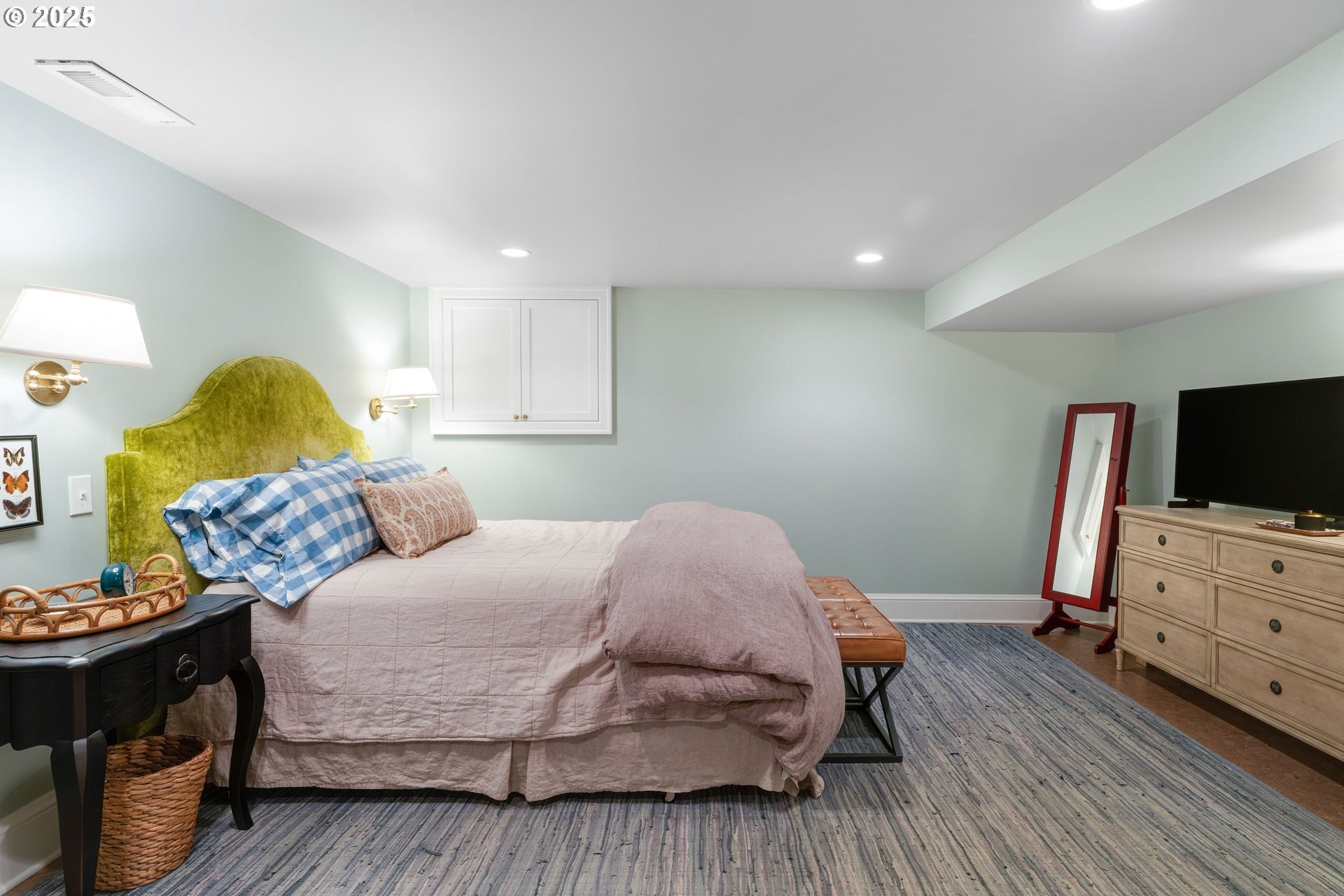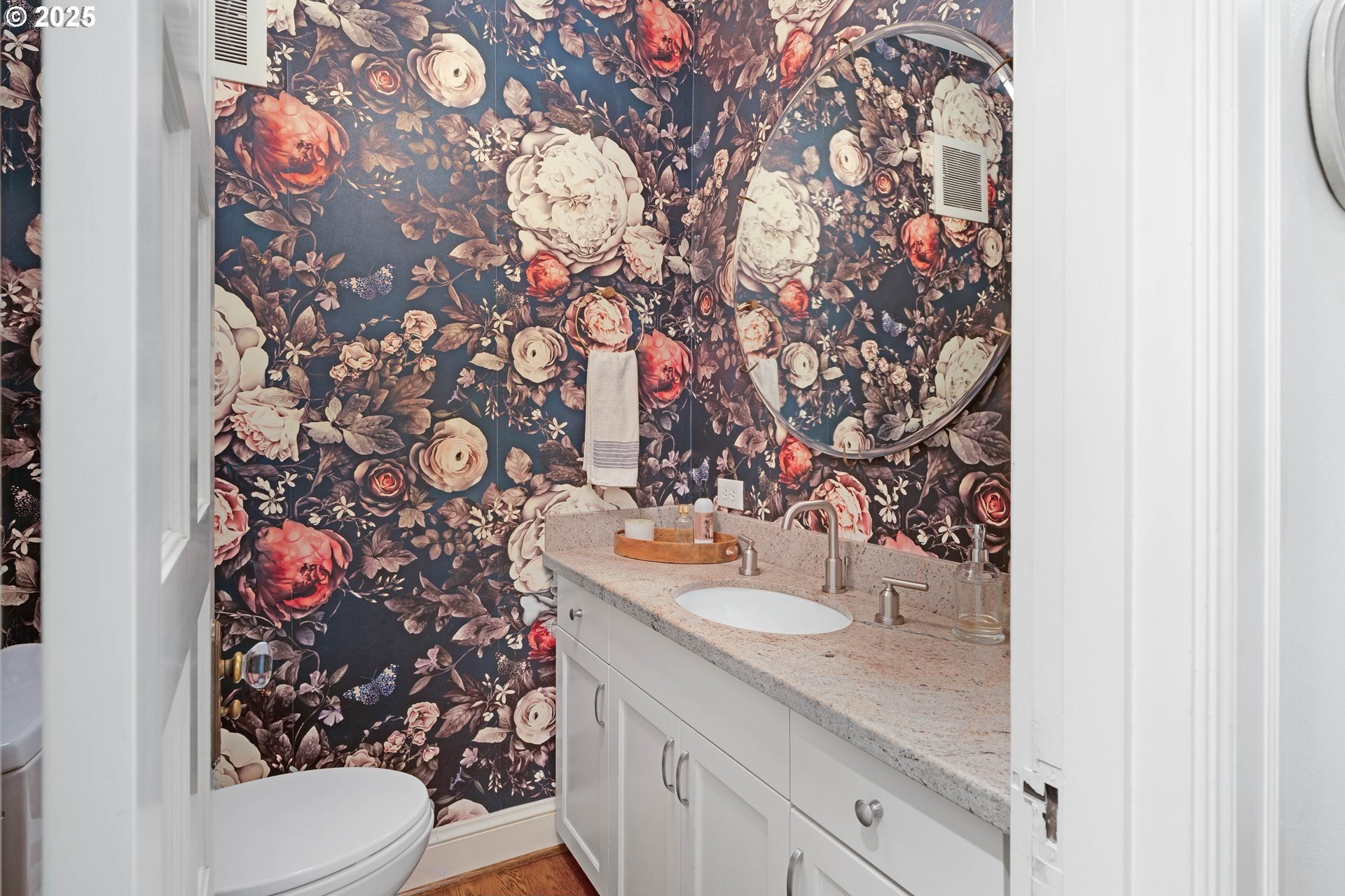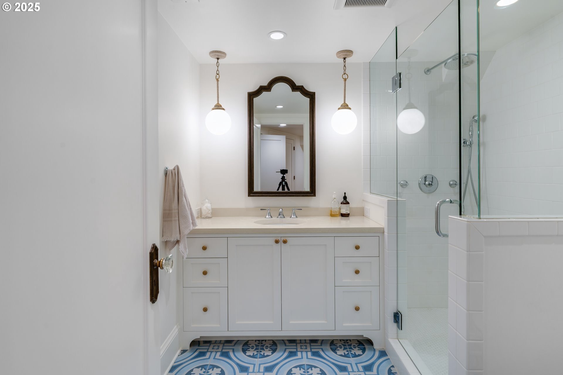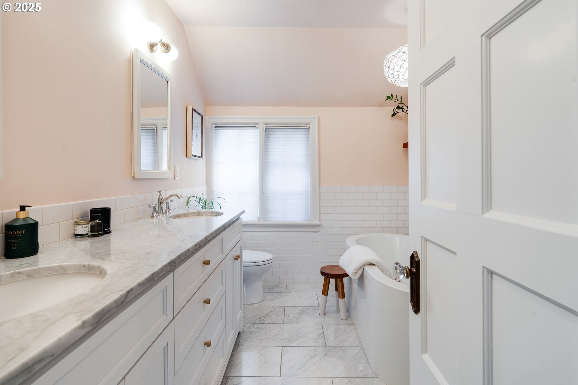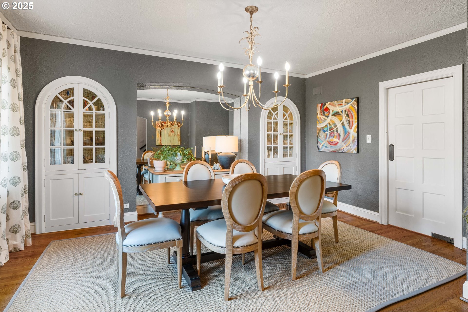 Step into timeless elegance with this stunning Tudor revival situated on a double lot in the premier block of Eastmoreland, offering five bedrooms, three and a half bathrooms, and exquisite details throughout. Off the entry, the formal living room welcomes you with a cozy fireplace, custom bookshelves, and coffered ceilings, while double doors open to a richly styled sunroom filled with character. Hardwood floors flow seamlessly through the main level, leading to a dining room adorned with a chandelier and original built-ins, as well as a chef’s kitchen with stainless steel appliances, double ovens, an island, and abundant storage. A charming breakfast nook with a custom window bench opens to a storybook courtyard, perfect for indoor-outdoor living. The lower level offers incredible versatility with a spacious bonus room featuring a fireplace, an additional bedroom, a full bath, laundry room, and a private sauna for relaxation. Upstairs, four bedrooms include a serene primary suite with a custom walk-in closet and spa-like en suite with soaking tub, glass shower, and dual vanity, complemented by a hallway bath and an office/flex space currently serving as an art studio. Outside, the manicured backyard evokes an English countryside garden, offering lush landscaping and privacy. Ideally situated, it’s an easy walk to Westmoreland Park, the Crystal Springs Rhododendron Gardens, and all the offerings of the charming Sellwood-Moreland neighborhood.