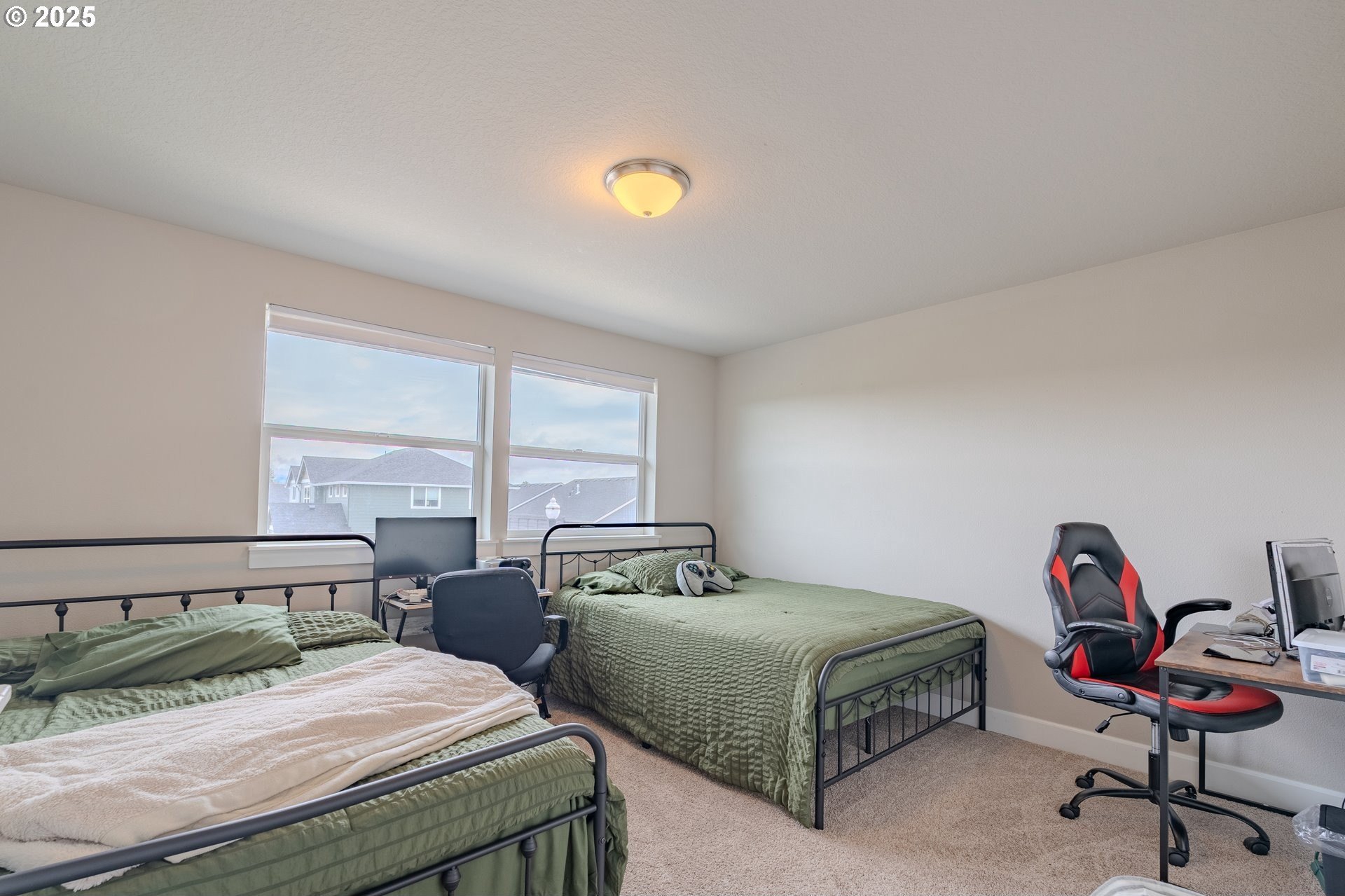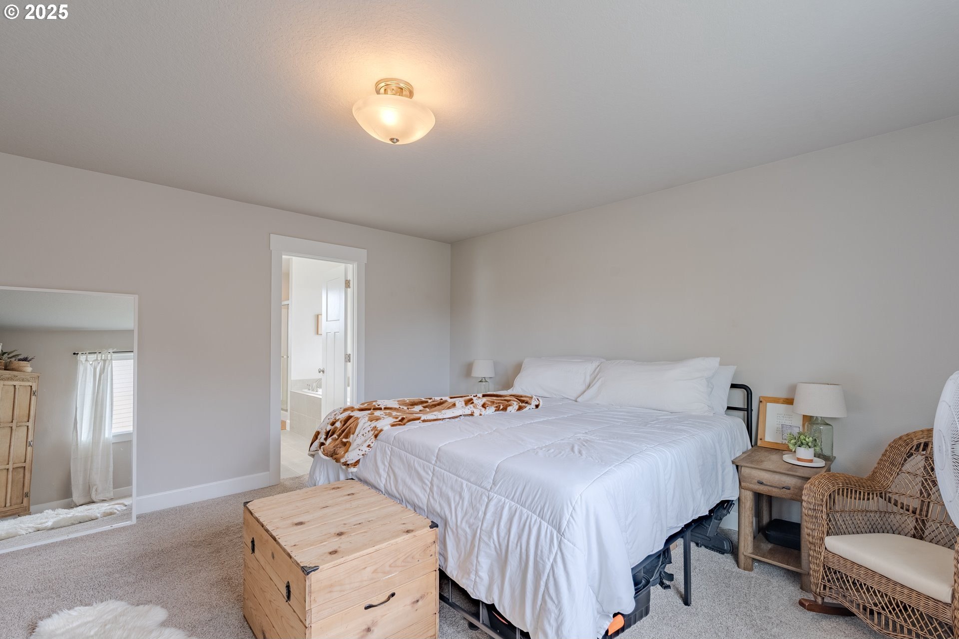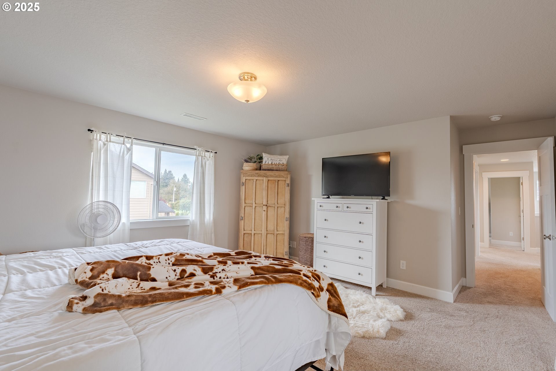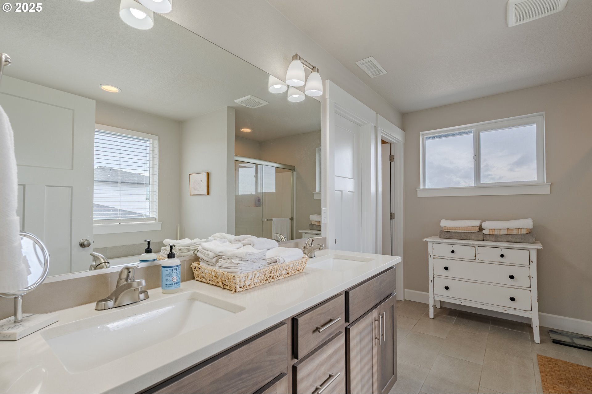 Stylish inside and out! From its contemporary Prairie-style architecture to the striking stacked-stone fireplace surround, this 2019-built home blends modern design with everyday comfort. Offering 2,110 sq ft of thoughtfully designed living space, it includes 4 bedrooms and 2.5 bathrooms. The main level features an open floor plan with high ceilings and warm-toned, easy-care Luxury Vinyl Plank flooring throughout. Off the foyer, French doors open to a spacious office/flex space. The great/living room is the heart of the home - bright and inviting with a large picture window overlooking the backyard and a gas fireplace framed by beautiful, stacked-stone as the focal point. The kitchen seamlessly combines style and function with sleek quartz countertops, an eating bar, pendant lighting, Shaker-style cabinetry, a pantry, and stainless-steel appliances. Sliding doors from the dining area open to a large, covered patio – allowing for tons of natural light and easy indoor/outdoor living. Upstairs, you’ll find 3 good-sized bedrooms plus a spacious owner’s suite featuring a large spa-inspired ensuite with a dual-sink quartz vanity, soaking tub, separate shower, and walk-in closet. Outdoors, you will find a manicured yard, with the backyard fully fenced and complete with a covered patio, firepit, raised garden beds, and plenty of space to relax or play. An attached 3-car garage provides ample space for vehicles, storage, or hobbies. Conveniently located near schools, parks, and all that downtown Battle Ground has to offer - dining, shopping, and more - this chic, functional home is move-in ready. Welcome Home! Open House this Saturday, November 8 from 12-2pm - Join Us!