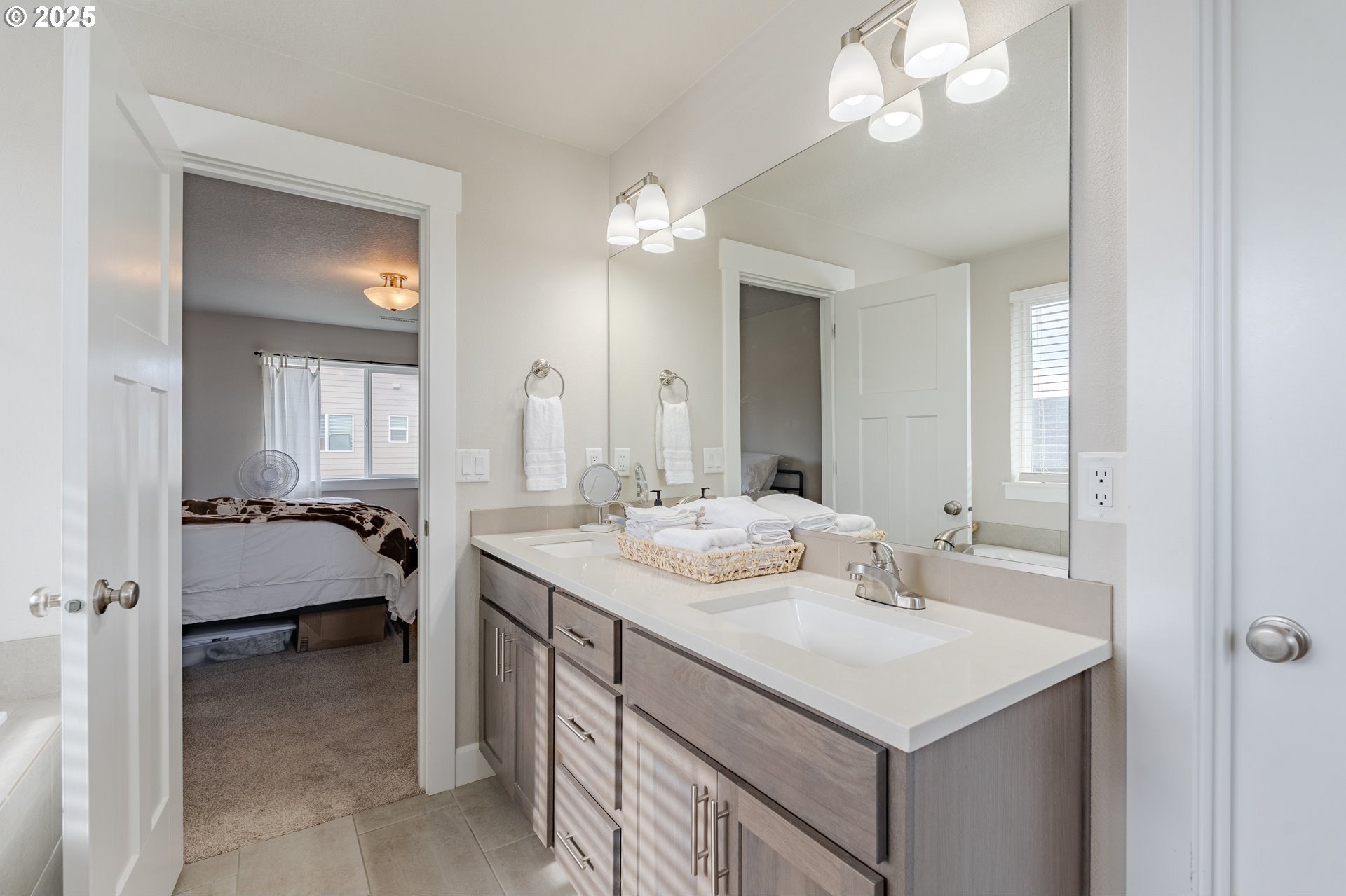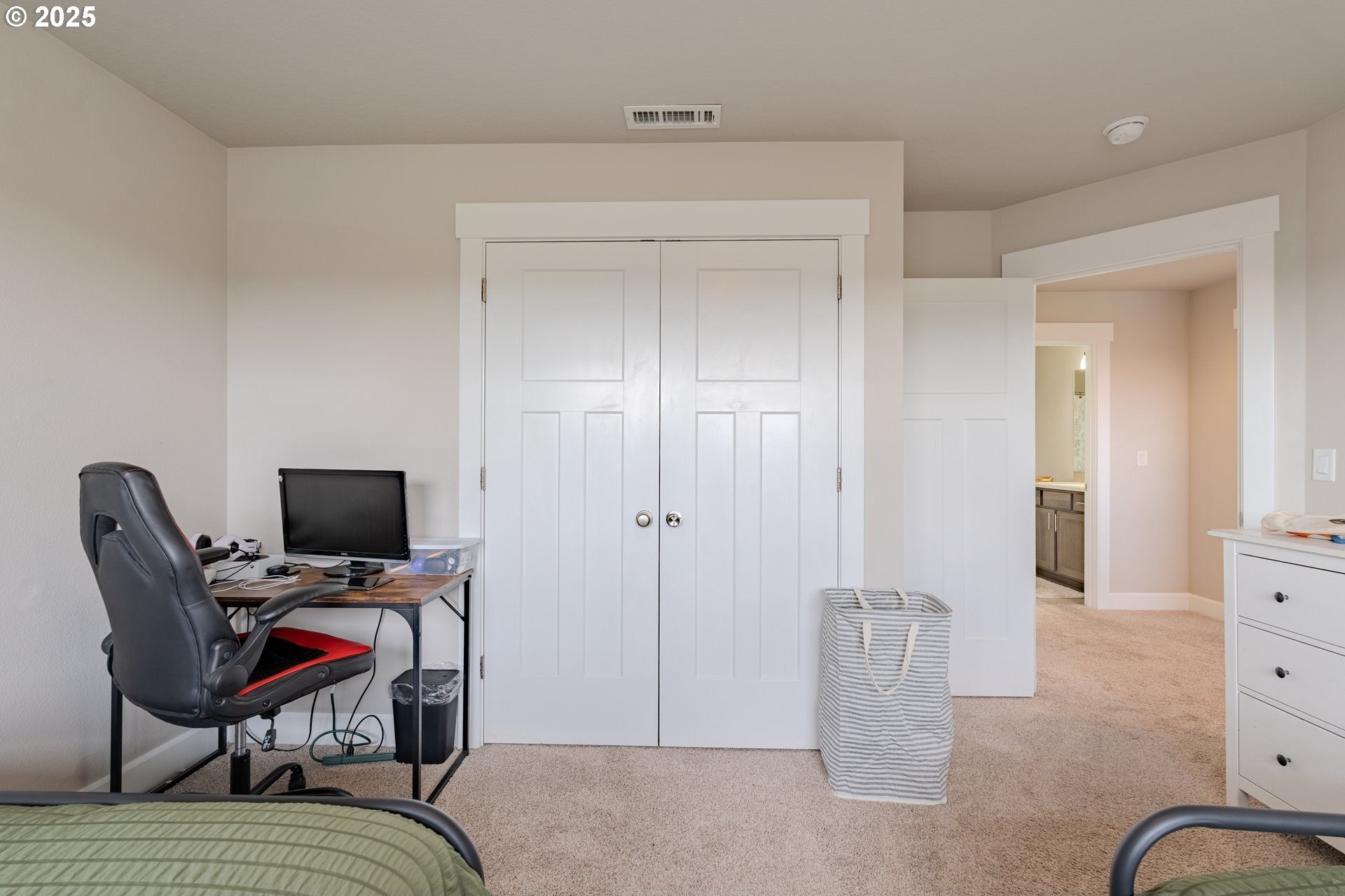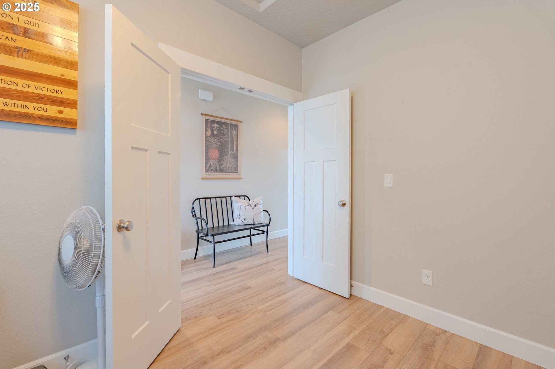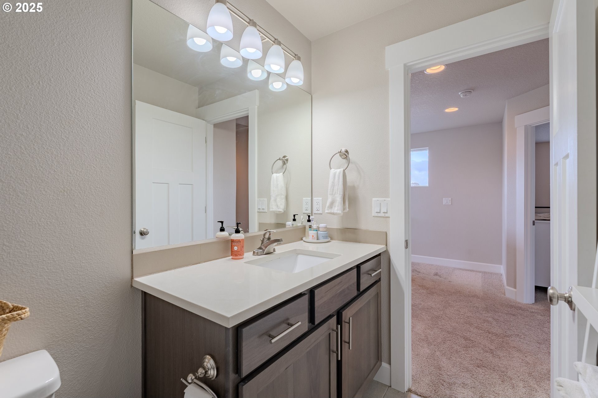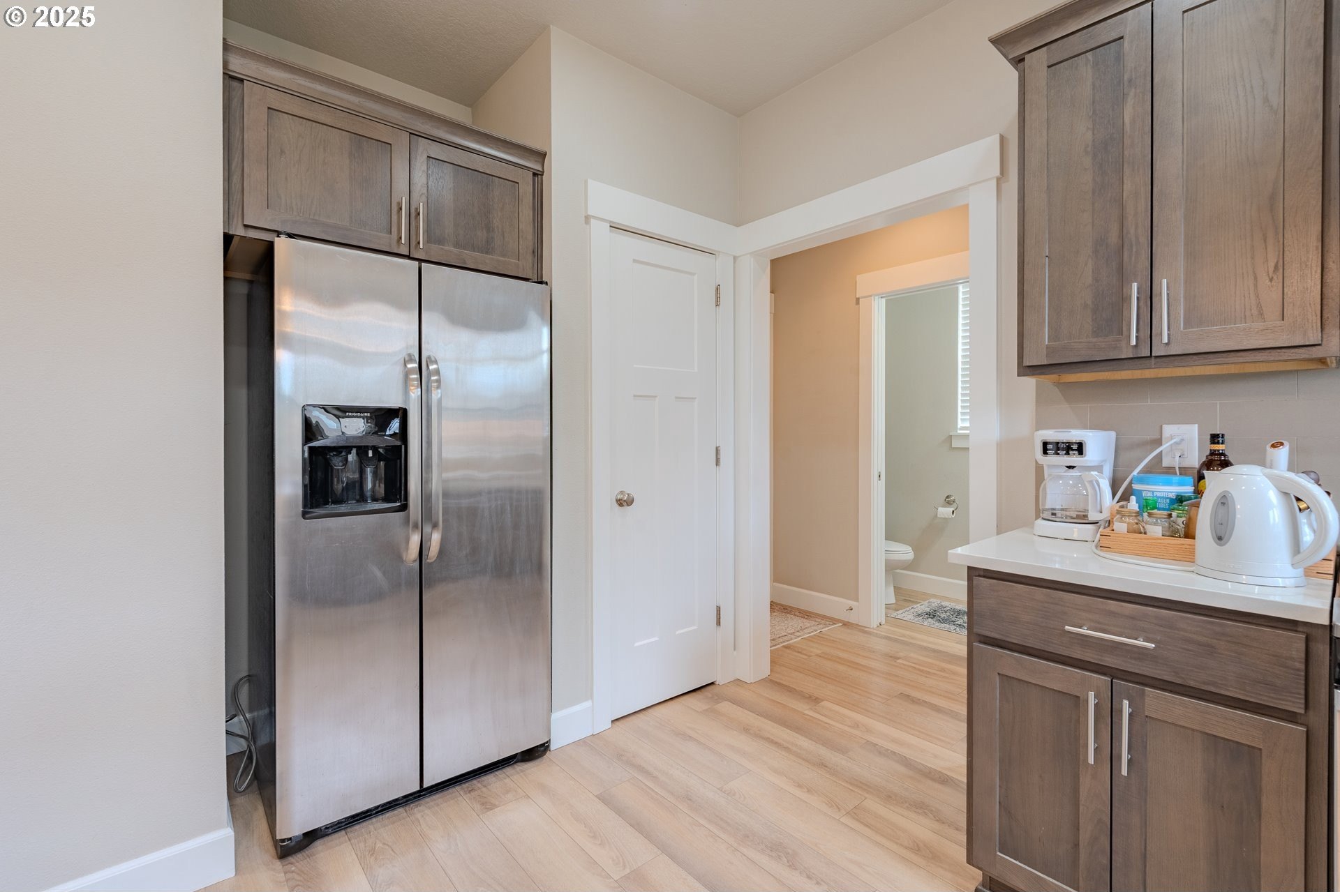 Stylish inside and out! From its contemporary Prairie-style architecture to the striking stacked-stone fireplace surround, this 2019-built home blends modern design with everyday comfort. Offering 2,110 sq ft of thoughtfully designed living space, it includes 4 bedrooms and 2.5 bathrooms. The main level features an open floor plan with high ceilings and warm-toned, easy-care Luxury Vinyl Plank flooring throughout. Off the foyer, French doors open to a spacious office/flex space. The great/living room is the heart of the home - bright and inviting with a large picture window overlooking the backyard and a gas fireplace framed by beautiful, stacked-stone as the focal point. The kitchen seamlessly combines style and function with sleek quartz countertops, an eating bar, pendant lighting, Shaker-style cabinetry, a pantry, and stainless-steel appliances. Sliding doors from the dining area open to a large, covered patio – allowing for tons of natural light and easy indoor/outdoor living. Upstairs, you’ll find 3 good-sized bedrooms plus a spacious owner’s suite featuring a large spa-inspired ensuite with a dual-sink quartz vanity, soaking tub, separate shower, and walk-in closet. Outdoors, you will find a manicured yard, with the backyard fully fenced and complete with a covered patio, firepit, raised garden beds, and plenty of space to relax or play. An attached 3-car garage provides ample space for vehicles, storage, or hobbies. Conveniently located near schools, parks, and all that downtown Battle Ground has to offer - dining, shopping, and more - this chic, functional home is move-in ready. Welcome Home! Open House this Saturday, November 8 from 12-2pm - Join Us!