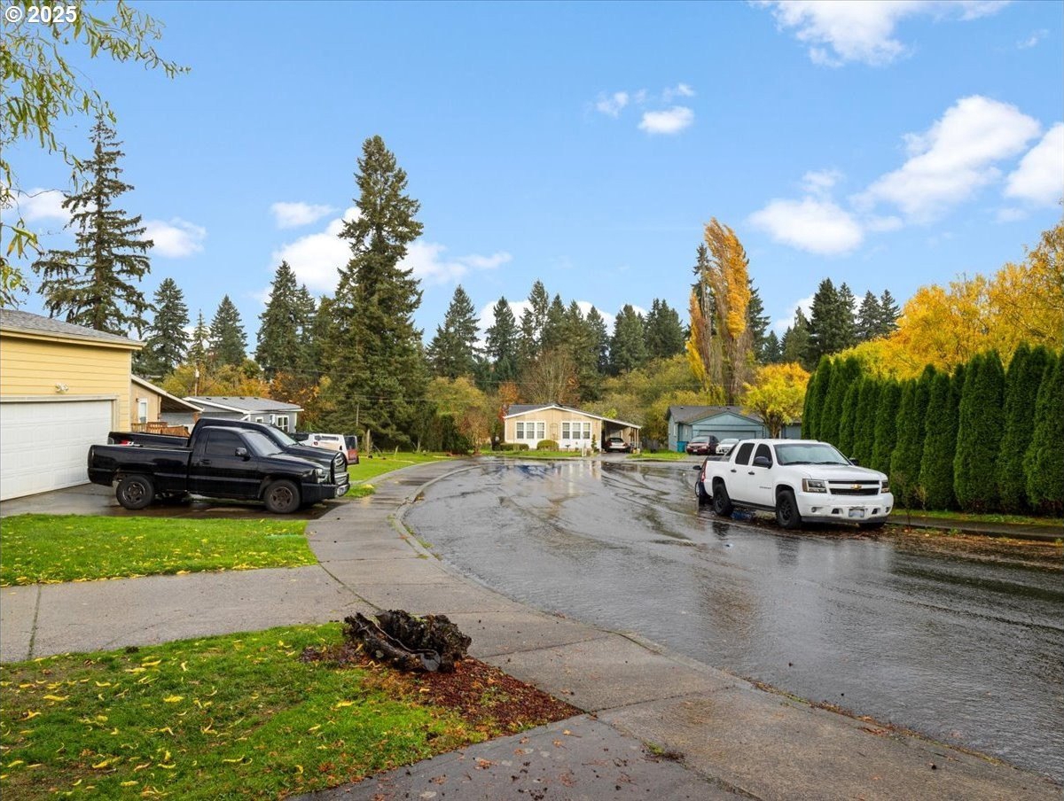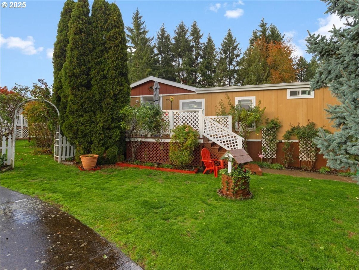 Beautifully Maintained 4-Bedroom Home with Salon Setup and Garden Oasis! This spacious 4-bedroom, 2-bath manufactured home sits on 8,373 sq ft of leased land (not in a park!) at the end of a quiet cul-de-sac, offering privacy and convenience in one. The home has been meticulously cared for, featuring fresh exterior paint and a new 40-year roof for lasting peace of mind. Inside, you’ll love the thoughtful layout- the primary suite enjoys separation from the additional bedrooms, and newer soak tub in the private bathroom, creating a comfortable retreat. One bedroom has been converted into a salon, complete with a rinsing sink and mirror station- ideal for a home-based business or creative studio! Both full bathrooms have been recently remodeled. The updated kitchen shines with newer stainless steel appliances, and the open flow of the living areas makes the home feel warm and inviting. Step outside to your private, fully fenced backyard oasis, featuring a large covered deck, hot tub, and lush terraced garden areas with flowers, edible landscape of vegetables and fruit trees, and established shrubs- all surrounded by mature trees for added privacy. Carport and storage shed provide practical convenience. Located in Northwest Hazel Dell near Columbia River High School with easy I-5 access, you’re just minutes from Legacy Salmon Creek Hospital, Target, Trader Joe’s, and a wide variety of restaurants and shops. This one offers the perfect mix of comfort, charm, and location- don’t miss it!