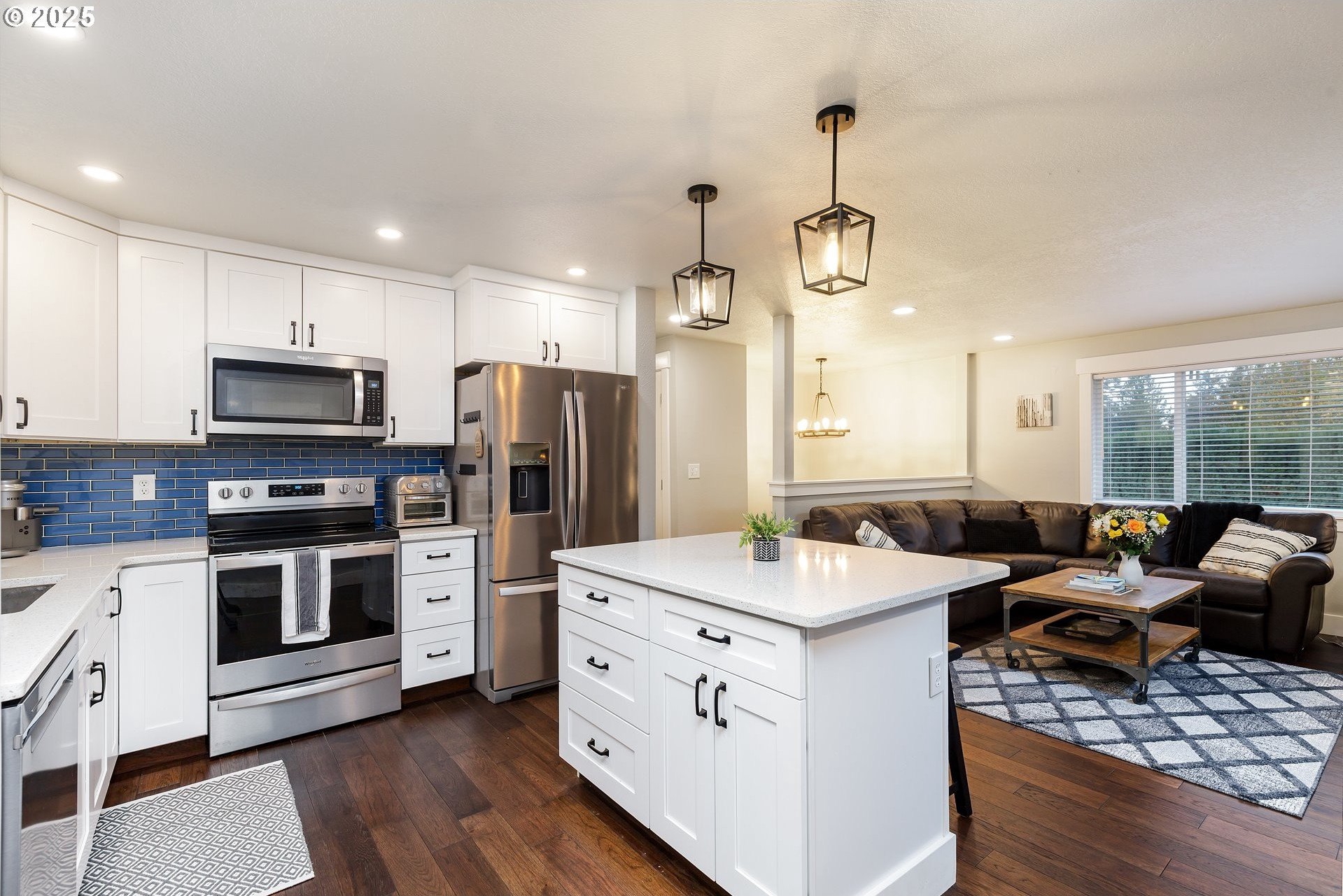Wonderful home with lots of beautiful updates. Great separation of spaces with 2 bedrooms up and 2 down with full baths on both levels. All appliances are included in the sale. The open kitchen design with quartz countertops and stainless-steel appliances makes meal prep and entertaining a breeze. New roof, water heater and exterior paint in 2023, radon mitigation 2024. Firepit and water feature with Koi in backyard. new garage door opener and additional insulation in 2025. Covered 34 x 35 RV pad and shop with 220 V 100 amp panel. Perfect for mechanics or wood workers. New front yard landscaping. Easy access to Canby for shopping, restaurants, golfing and medical facilities. Click on the video. Open Saturday 11/8, 12 pm to 2 pm.