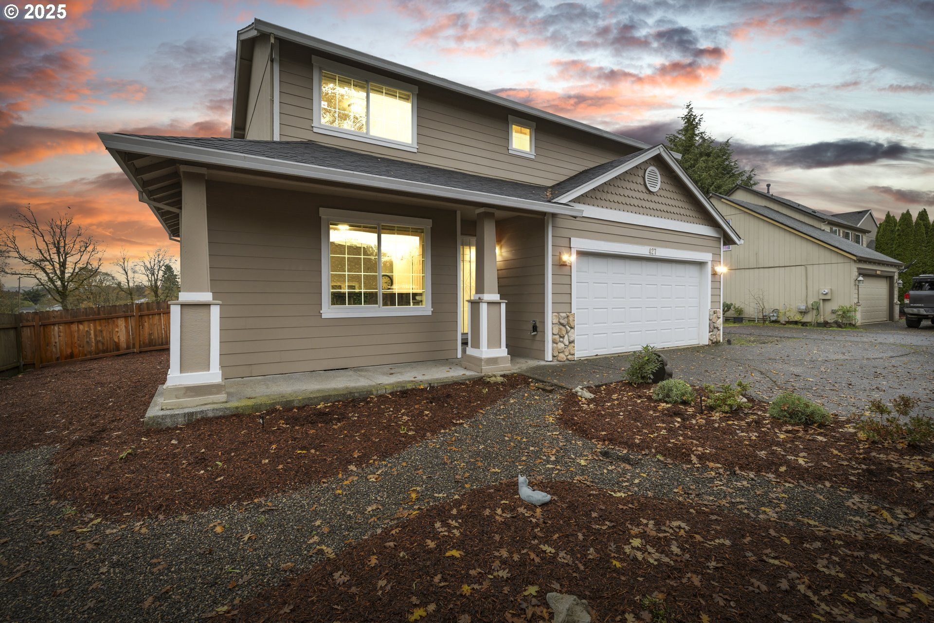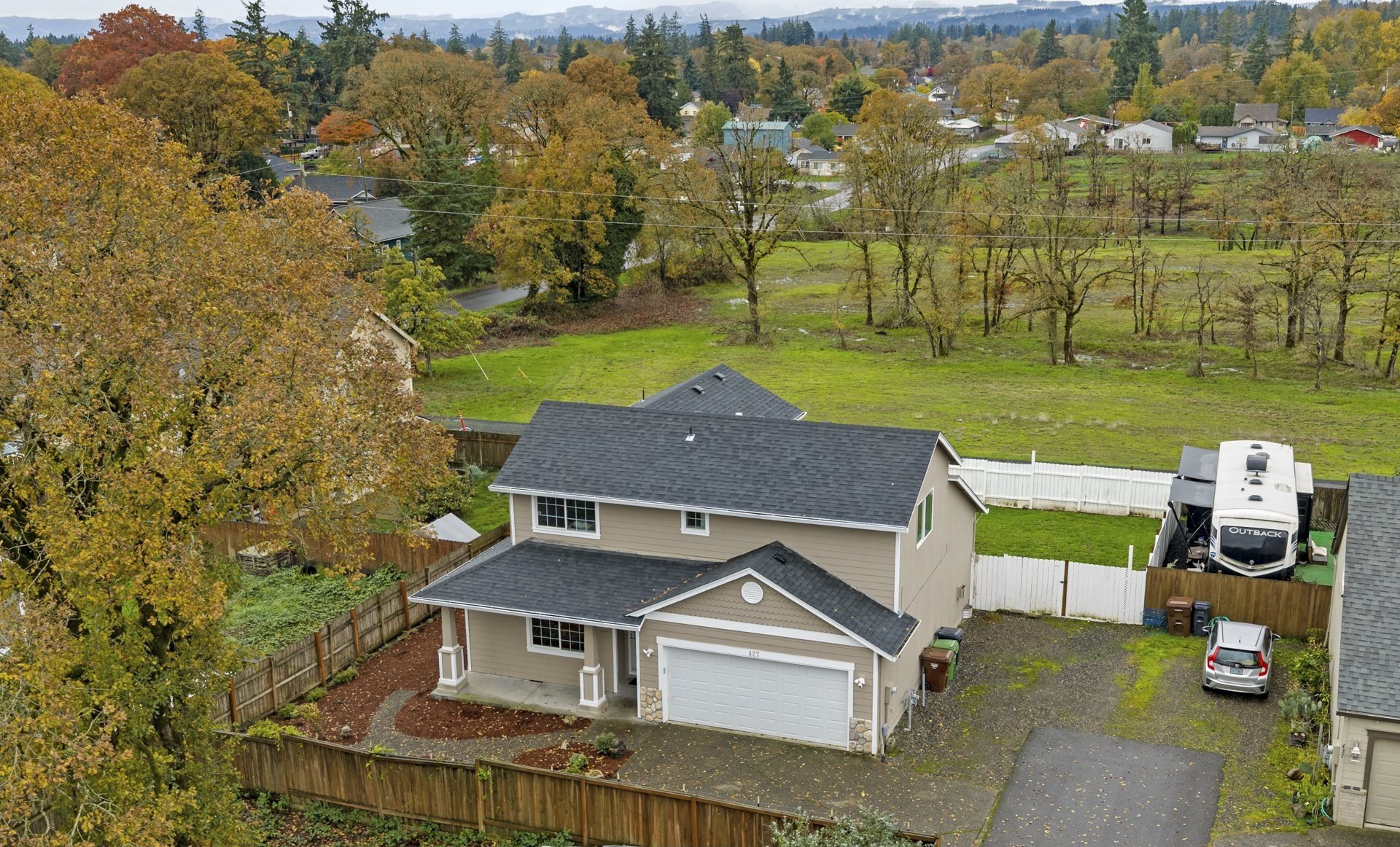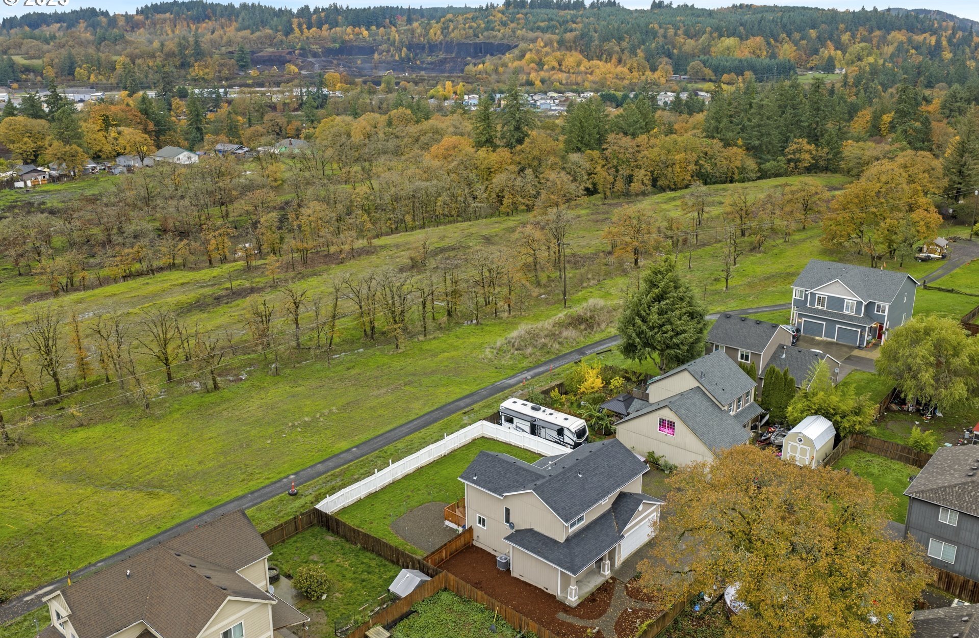 Stylishly updated St. Helens retreat! This inviting home combines modern upgrades with a comfortable, functional layout in a peaceful setting on a quiet dead-end street. The remodeled kitchen features quartz countertops, stainless steel appliances, and a view of the green space that sits just beyond the spacious and fully fenced backyard. The main level offers both a formal living room and an open-concept great room that is tied together by the cozy gas fireplace—ideal for gatherings or quiet evenings at home. Upstairs you will find three generously sized bedrooms, including a primary suite with dual closets and an updated private bath. Major improvements include a new roof (2024), new furnace (2024), and newly added central A/C for year-round comfort and peace of mind. Conveniently located near parks, shops, and local dining, and less than a mile from the St. Helens Marina, this home offers comfort, efficiency, and the best of Pacific Northwest living.