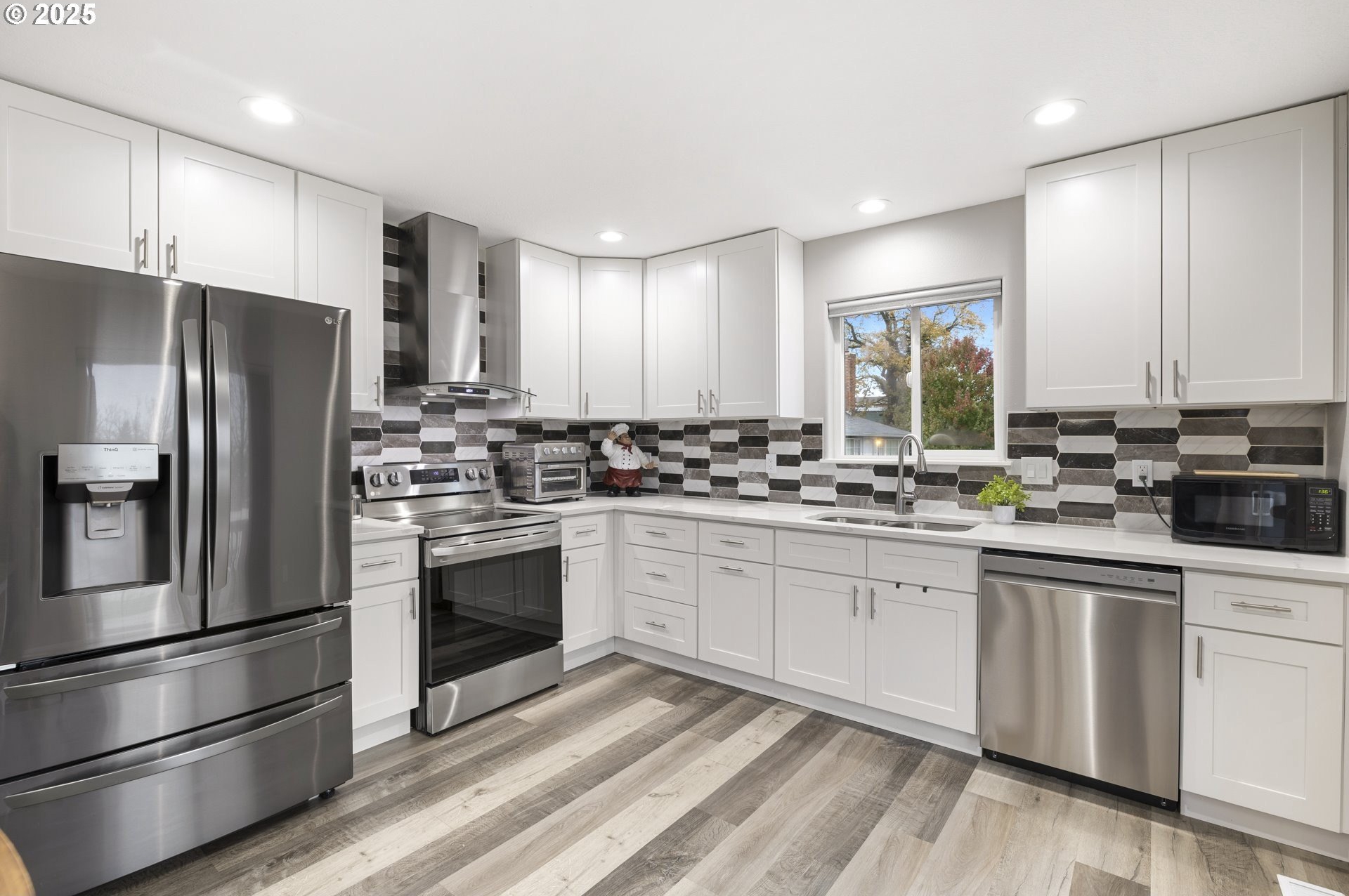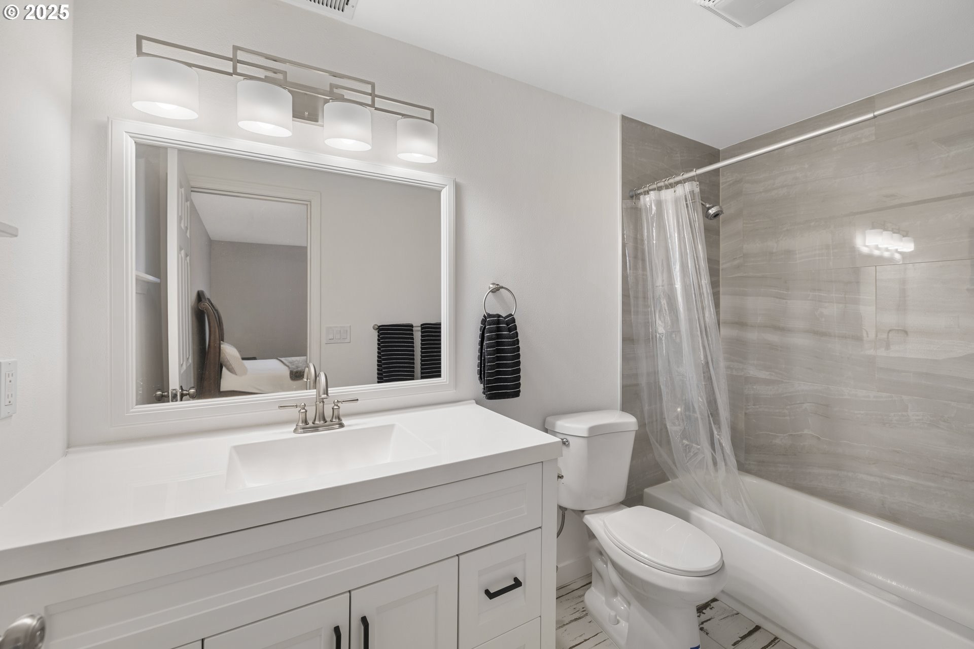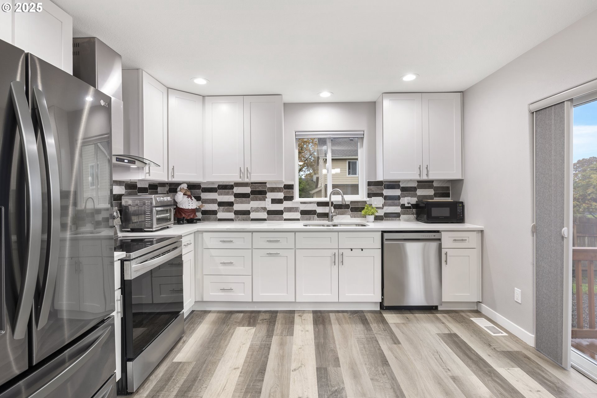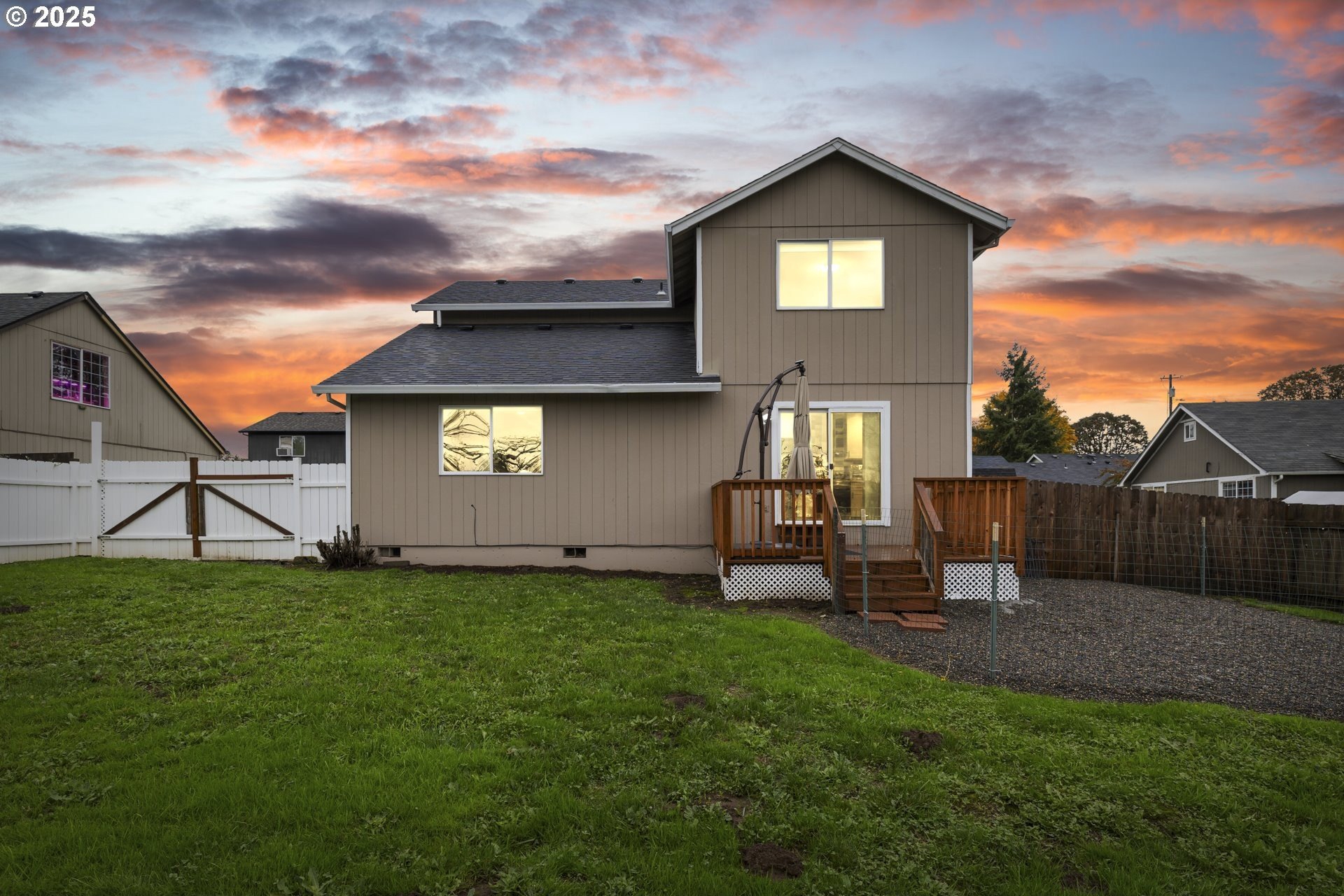 Stylishly updated St. Helens retreat! This inviting home combines modern upgrades with a comfortable, functional layout in a peaceful setting on a quiet dead-end street. The remodeled kitchen features quartz countertops, stainless steel appliances, and a view of the green space that sits just beyond the spacious and fully fenced backyard. The main level offers both a formal living room and an open-concept great room that is tied together by the cozy gas fireplace—ideal for gatherings or quiet evenings at home. Upstairs you will find three generously sized bedrooms, including a primary suite with dual closets and an updated private bath. Major improvements include a new roof (2024), new furnace (2024), and newly added central A/C for year-round comfort and peace of mind. Conveniently located near parks, shops, and local dining, and less than a mile from the St. Helens Marina, this home offers comfort, efficiency, and the best of Pacific Northwest living.
