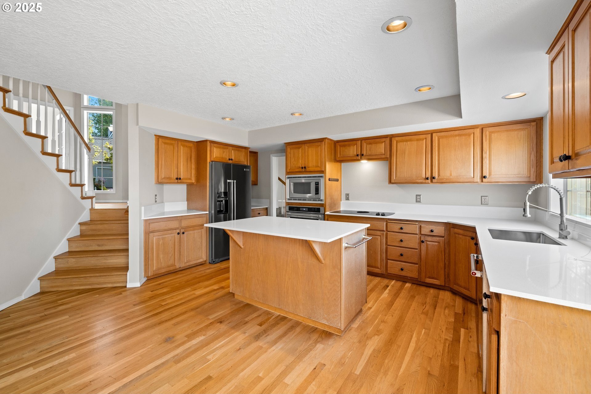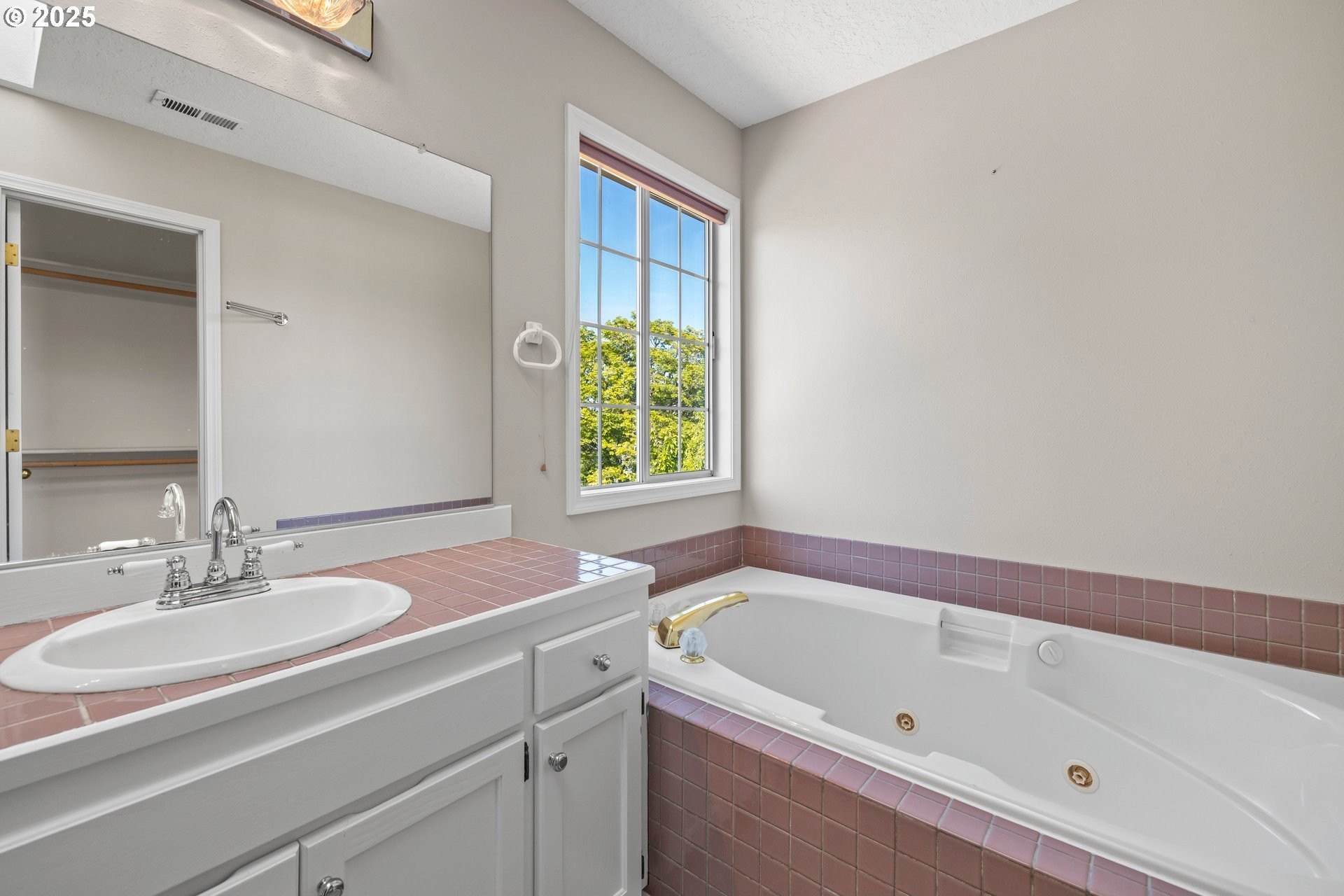 Welcome to this thoughtfully designed 2,748 sq ft home located in the highly desired Fox Hill neighborhood of Tualatin! Offering both space and flexibility this open layout is filled with natural light, showcasing real hardwood floors and newer carpeting throughout. The primary suite provides a relaxing retreat with dual walk-in closets and a luxurious en-suite bath featuring a jetted soaking tub. The expansive kitchen includes an impressive pantry—perfect for any home chef—and flows easily into the main living areas. A dedicated laundry room with a sink adds everyday convenience. Need extra space? The office easily converts to a fourth bedroom, ideal for guests or remote work. Outside, enjoy low-maintenance landscaping with quality turf in the front yard, durable backyard decking, and a hot tub for relaxing evenings. The oversized double garage includes a yard-access door for added functionality. Located just moments from Fox Hill Park and trails along the Tualatin River, this home offers a perfect balance of comfort and nature. Recent updates include HVAC servicing, a newer refrigerator, roof moss treatment, a fireplace insert, and more. Move-in ready and beautifully maintained— this gem offers the ideal blend of lifestyle, location, and livability. Inquire today!
