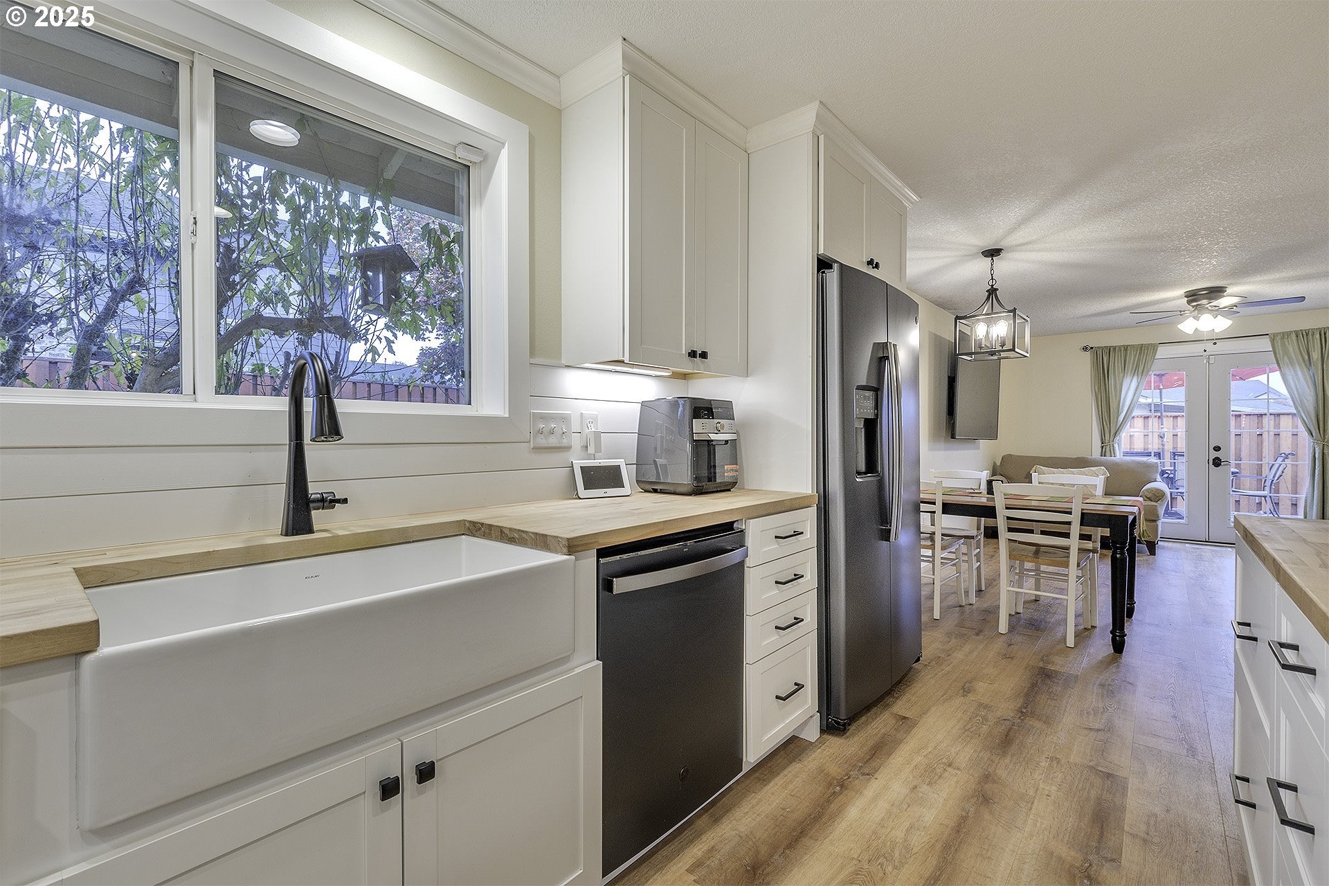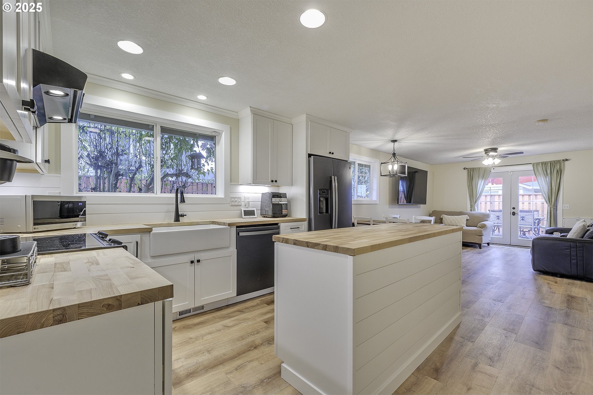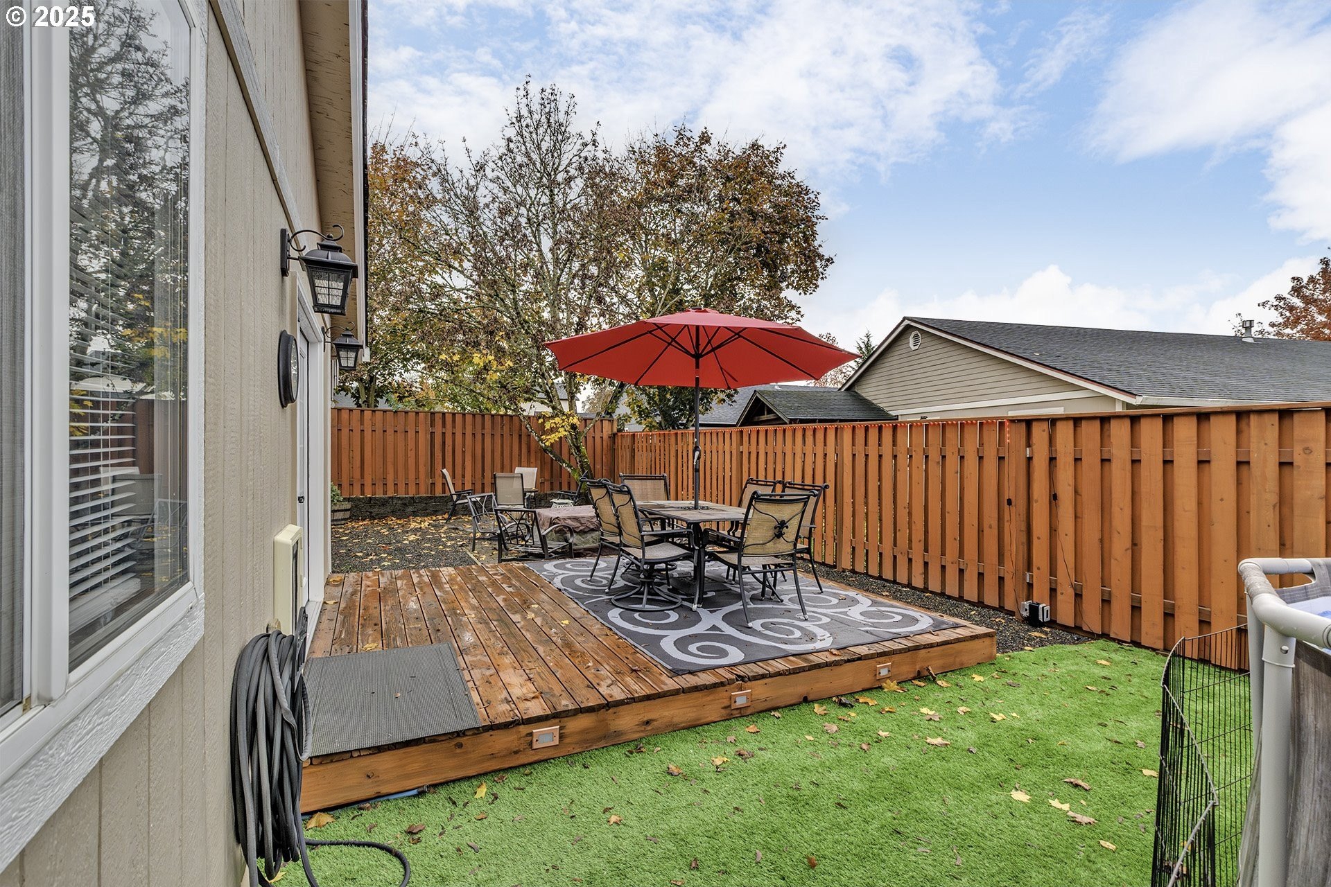OPEN HOUSE SAT 11/8 12-2PM & SUN 11/9 10AM-12PM. Single level living at its finest. This home has been beautifully updated with luxury vinyl plank flooring throughout in 2025. Updated kitchen offers stainless steel appliances, butcher block counters, shiplap island and a farm sink. Extra windows create lots of natural lighting. Cozy up in the living room and enjoy the gas fireplace on cold evenings inside. Fresh interior paint. Enjoy the lovely newer, fully fenced back yard. Hang out in the pool, lounge on the deck or garden. There is an area for small RV to the right of the driveway or utility trailer parking on the side behind the fence. Near schools, shopping and restaurants. Quick drive to Intel and Nike.
