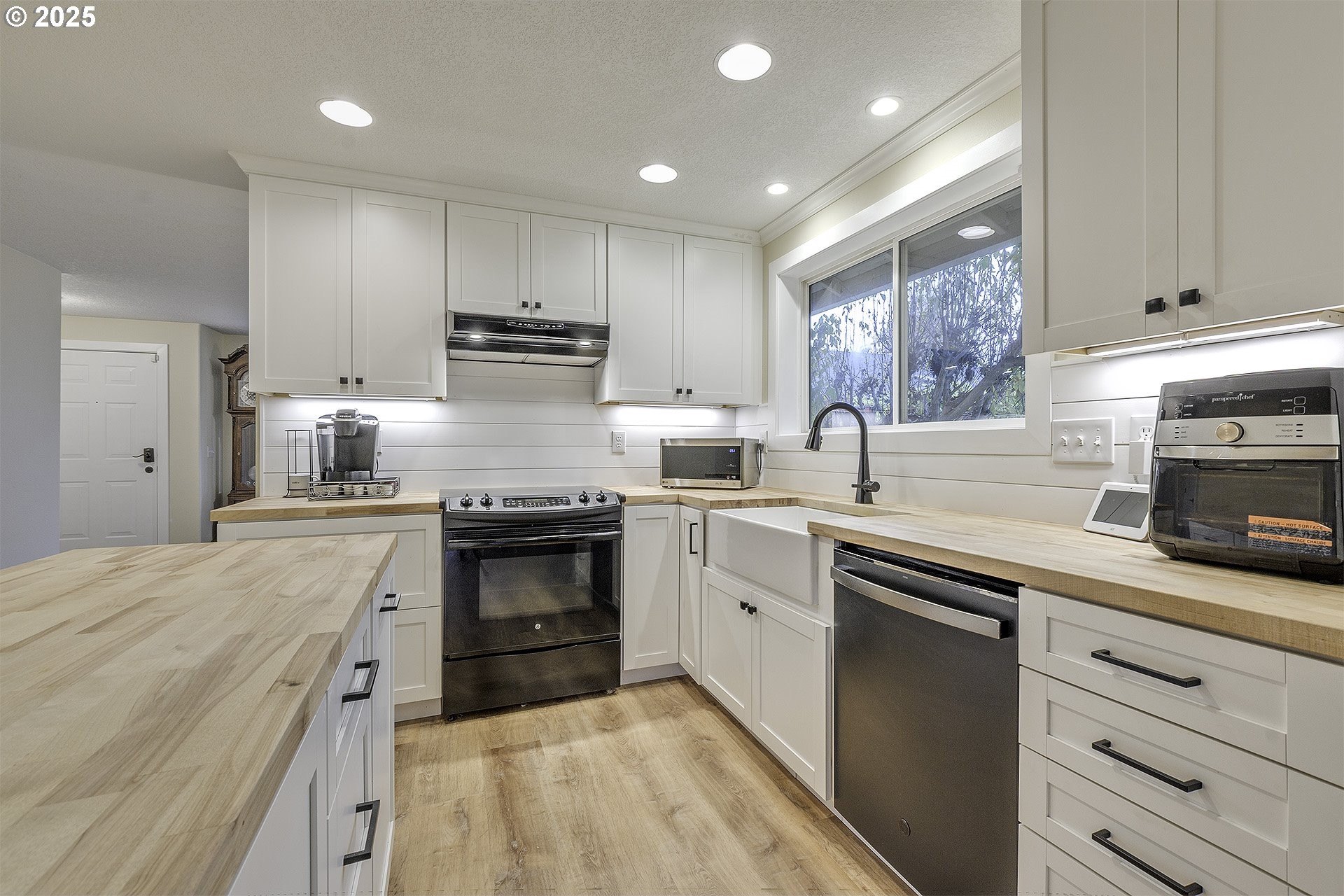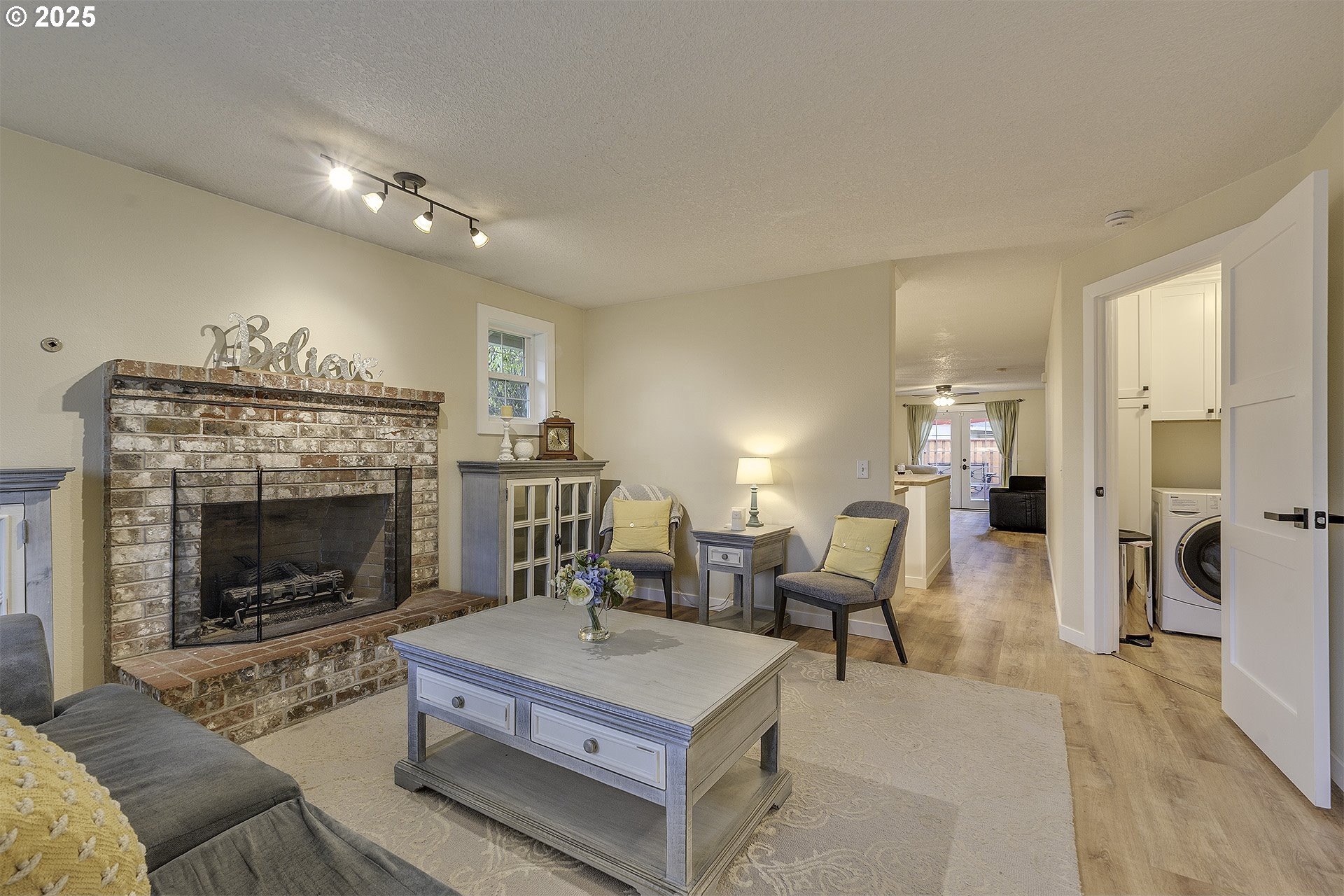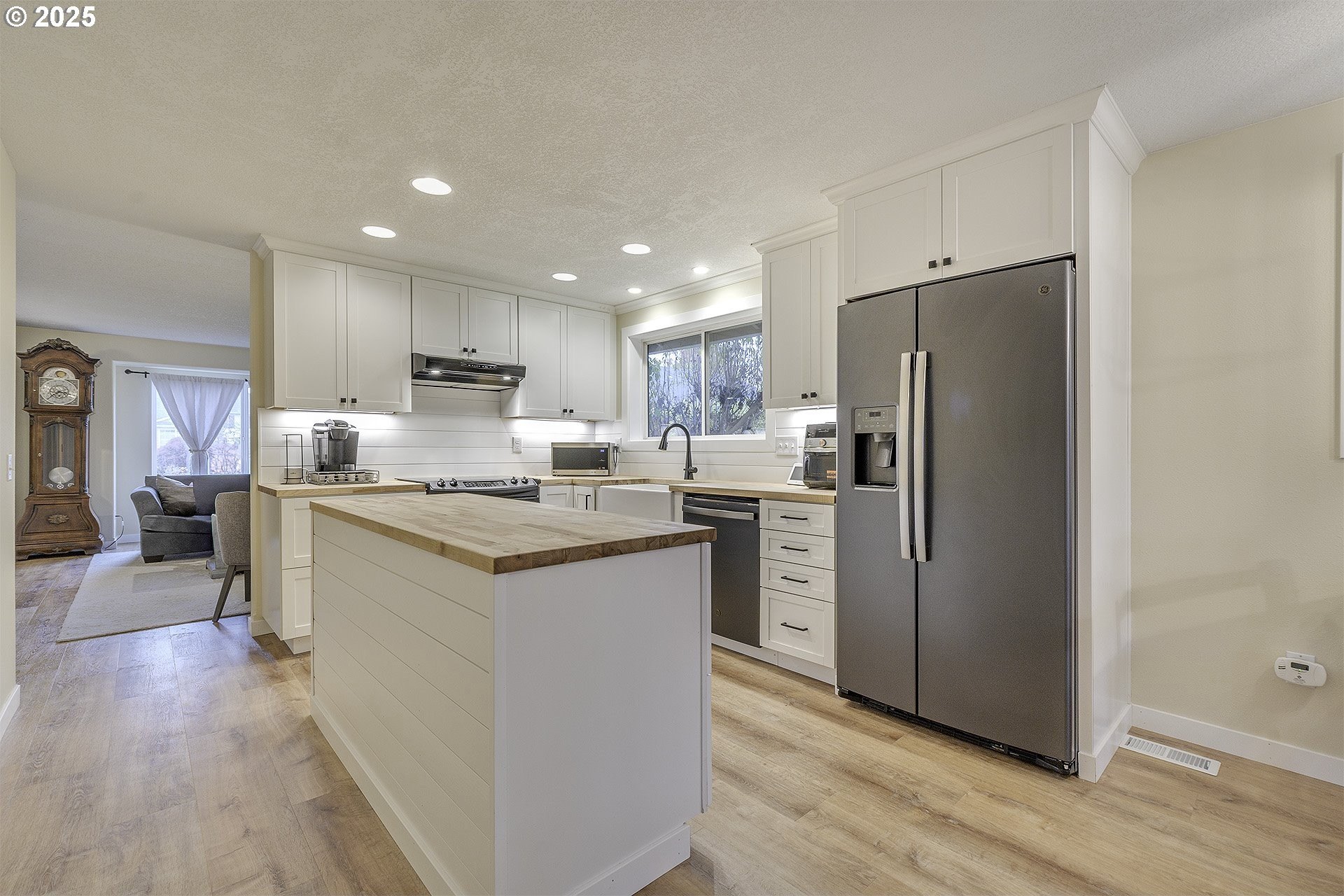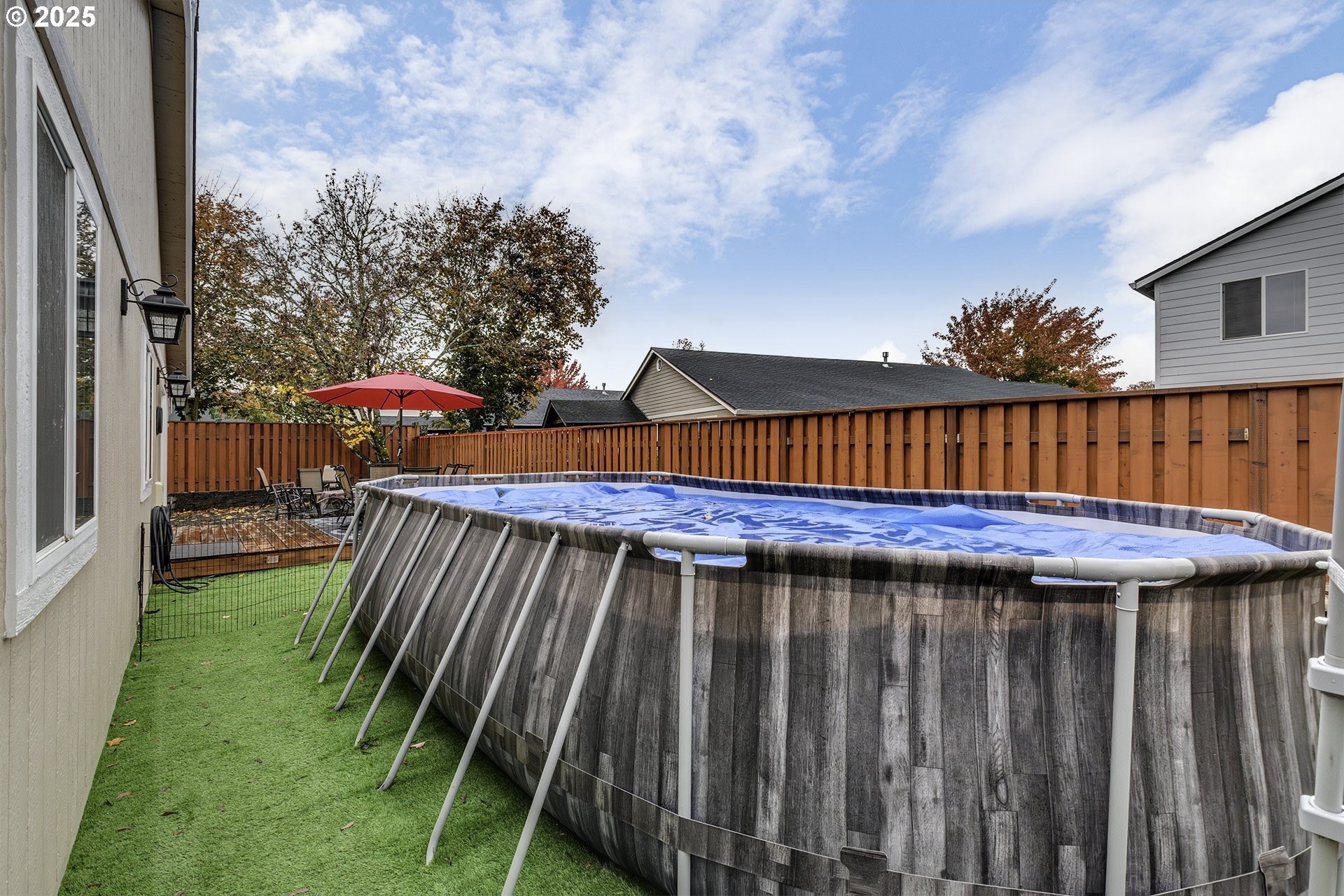 OPEN HOUSE SAT 11/8 12-2PM & SUN 11/9 10AM-12PM. Single level living at its finest. This home has been beautifully updated with luxury vinyl plank flooring throughout in 2025. Updated kitchen offers stainless steel appliances, butcher block counters, shiplap island and a farm sink. Extra windows create lots of natural lighting. Cozy up in the living room and enjoy the gas fireplace on cold evenings inside. Fresh interior paint. Enjoy the lovely newer, fully fenced back yard. Hang out in the pool, lounge on the deck or garden. There is an area for small RV to the right of the driveway or utility trailer parking on the side behind the fence. Near schools, shopping and restaurants. Quick drive to Intel and Nike.