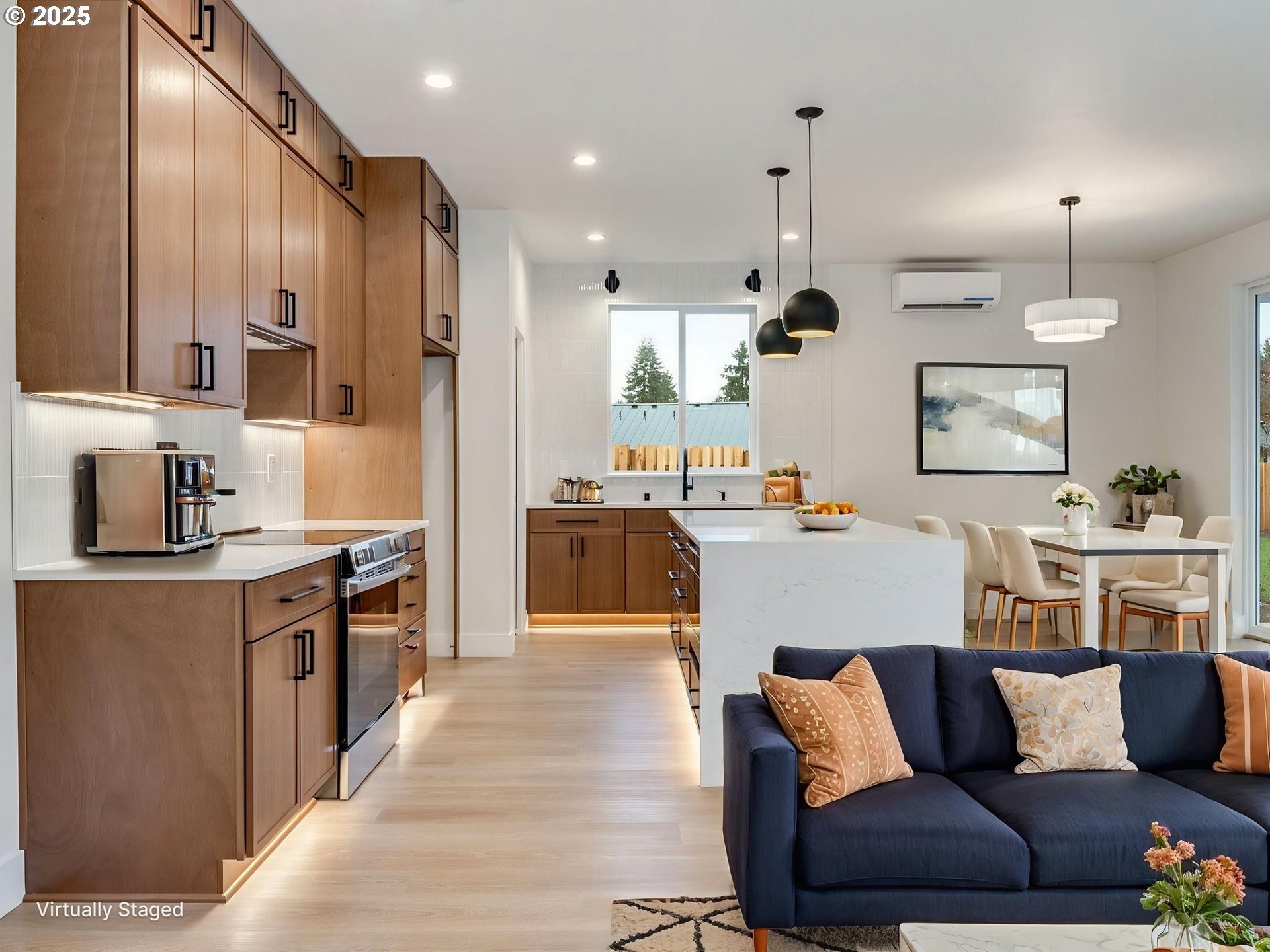 Discover contemporary luxury in this brand-new, 1,725 sq. ft., 2-story home. Inside, 9-foot and vaulted ceilings soar over seamless luxury vinyl plank floors, leading you to a showstopper kitchen featuring darker cabinets, gold accents, a massive quartz waterfall island, a walk-in pantry, and a full-height tile backsplash. All 3 bedrooms are privately located upstairs, including the large master suite which boasts a walk-in closet and a spa-like tile bath with a double sink vanity and walk-in shower. Situated on a generous 6,928 sq. ft. lot, this stunning home is complete with full landscaping and fencing, making it perfectly move-in ready.