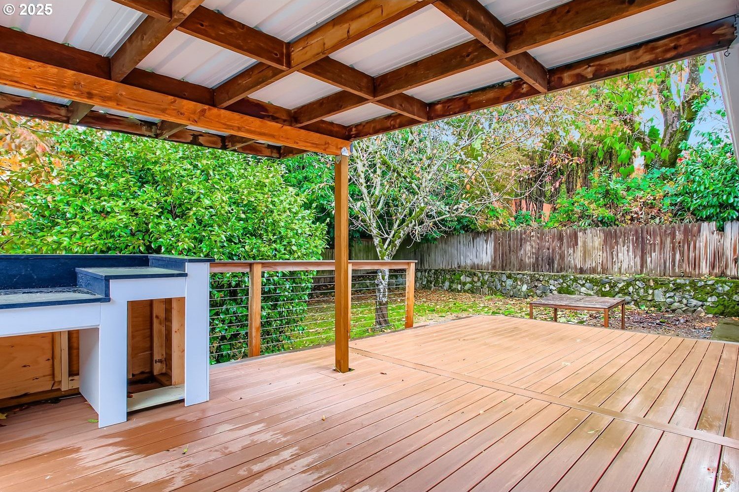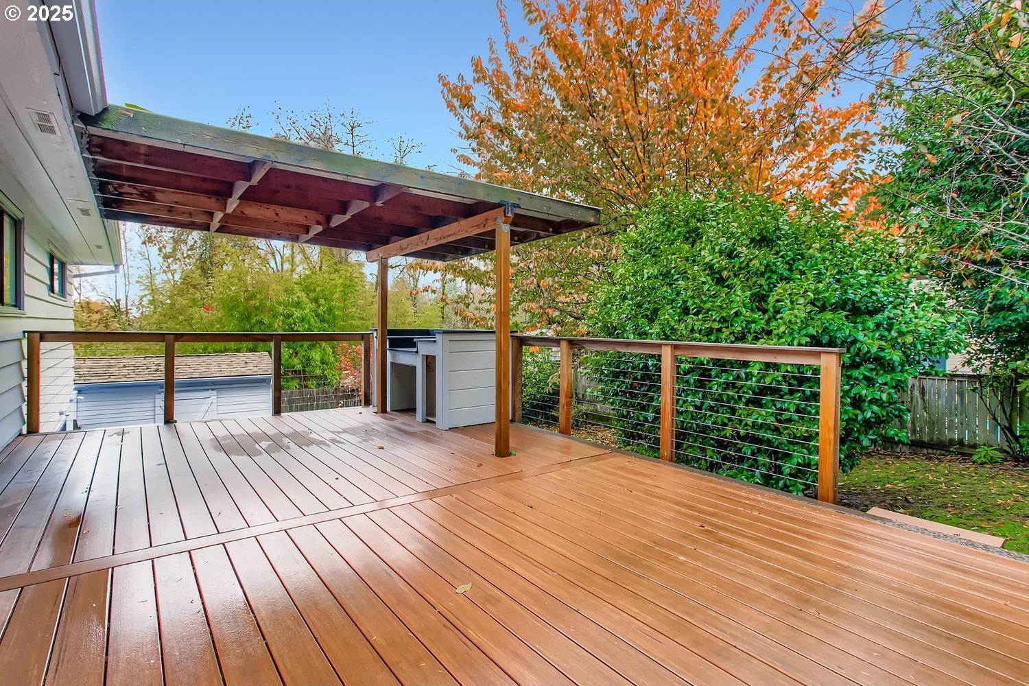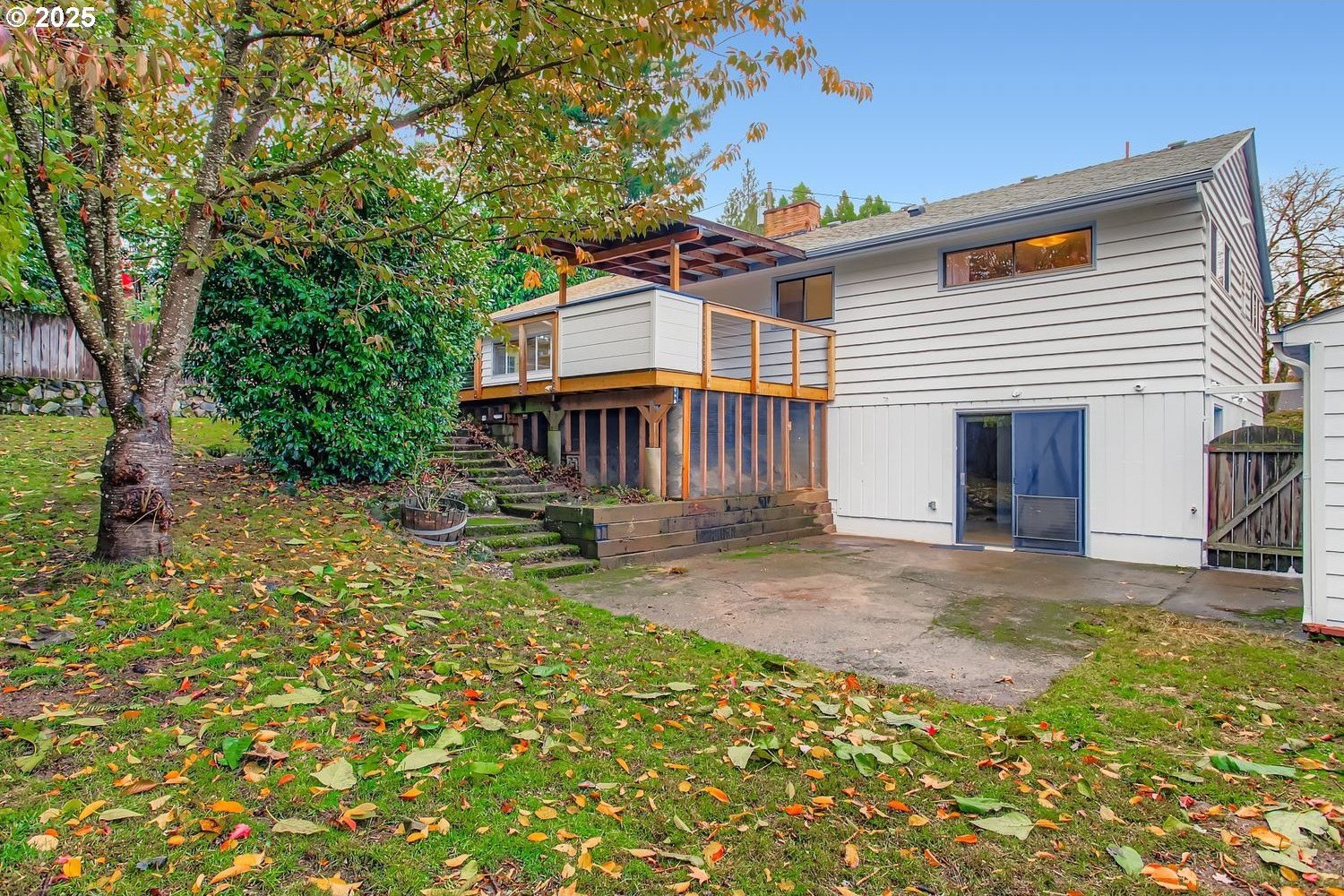 Charming AshCreek Mid-Century Daylight Ranch. Welcome to this beautifully updated 3-bedroom, 2-bathroom daylight ranch nestled in one of SW Portland’s most sought-after neighborhoods and only minutes from popular Multnomah Village. Built in 1958, this classic home perfectly blends timeless mid-century character with modern updates and thoughtful design. Step inside to oak hardwood floors that flow throughout the main level. The inviting living room features a brick gas fireplace, perfect for cozy evenings, while the adjacent dining area opens through sliding glass doors to a brand new expansive Trex deck — ideal for entertaining or simply relaxing while overlooking the oversized, private backyard.The remodeled kitchen is a chef’s delight, boasting quartz countertops, a stylish tile backsplash, stainless steel appliances including a gas range, double ovens, and a free-standing refrigerator. Downstairs, the fully finished daylight lower level offers incredible flexibility — complete with a full bathroom, private entrance and RV parking, it’s perfect for a guest suite, home office, or potential rental space. Enjoy the charm of a well-established neighborhood with the convenience of being just minutes from Multnomah Village shops, restaurants, parks, and easy freeway access. Don’t miss your chance to own this warm and welcoming Portland gem — where classic charm meets modern comfort!