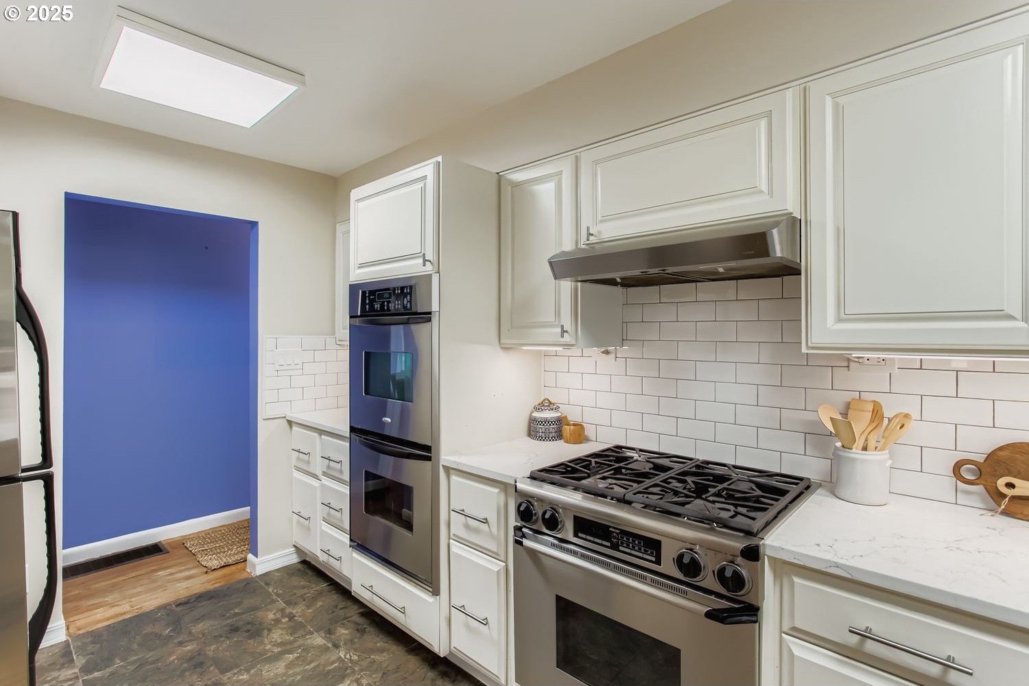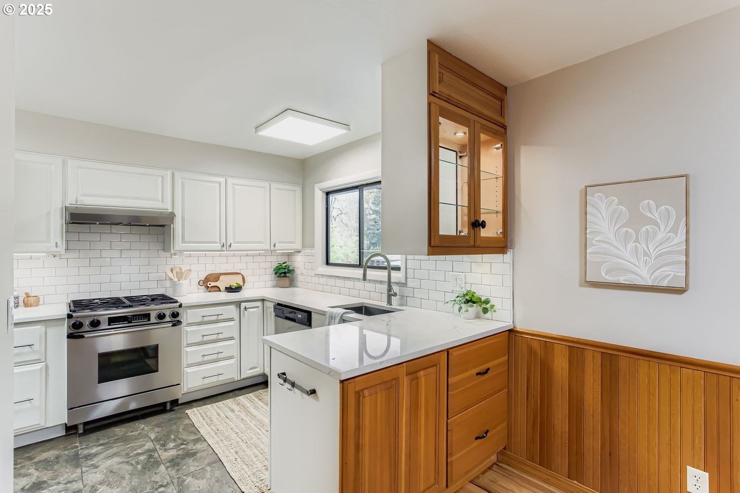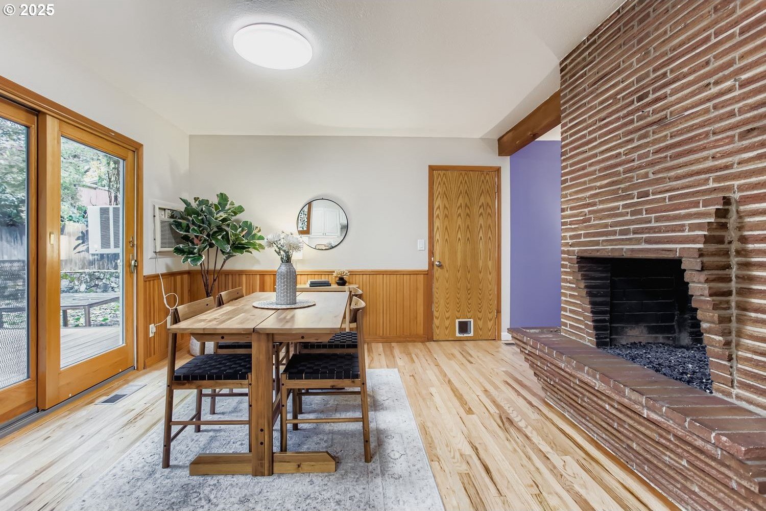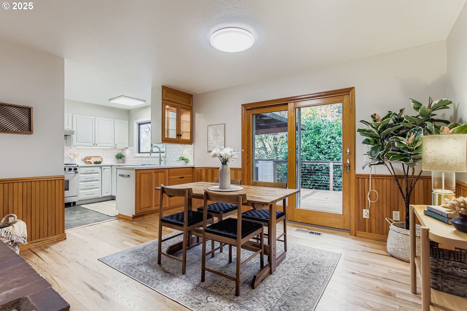Charming AshCreek Mid-Century Daylight Ranch. Welcome to this beautifully updated 3-bedroom, 2-bathroom daylight ranch nestled in one of SW Portland’s most sought-after neighborhoods and only minutes from popular Multnomah Village. Built in 1958, this classic home perfectly blends timeless mid-century character with modern updates and thoughtful design. Step inside to oak hardwood floors that flow throughout the main level. The inviting living room features a brick gas fireplace, perfect for cozy evenings, while the adjacent dining area opens through sliding glass doors to a brand new expansive Trex deck — ideal for entertaining or simply relaxing while overlooking the oversized, private backyard.The remodeled kitchen is a chef’s delight, boasting quartz countertops, a stylish tile backsplash, stainless steel appliances including a gas range, double ovens, and a free-standing refrigerator. Downstairs, the fully finished daylight lower level offers incredible flexibility — complete with a full bathroom, private entrance and RV parking, it’s perfect for a guest suite, home office, or potential rental space. Enjoy the charm of a well-established neighborhood with the convenience of being just minutes from Multnomah Village shops, restaurants, parks, and easy freeway access. Don’t miss your chance to own this warm and welcoming Portland gem — where classic charm meets modern comfort!