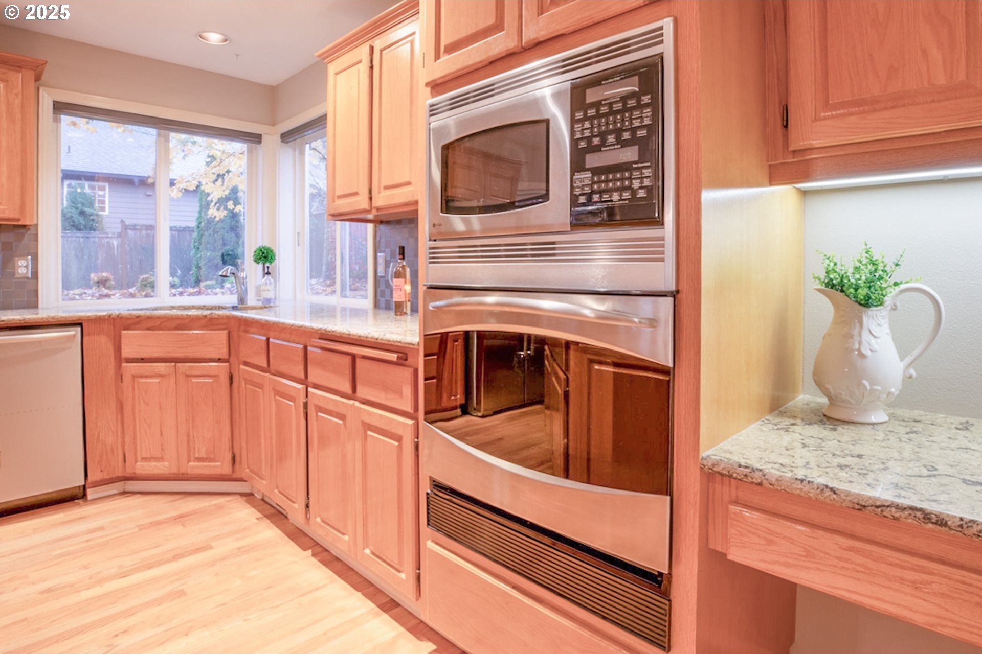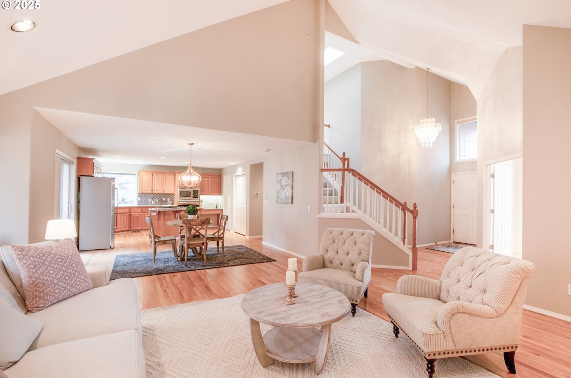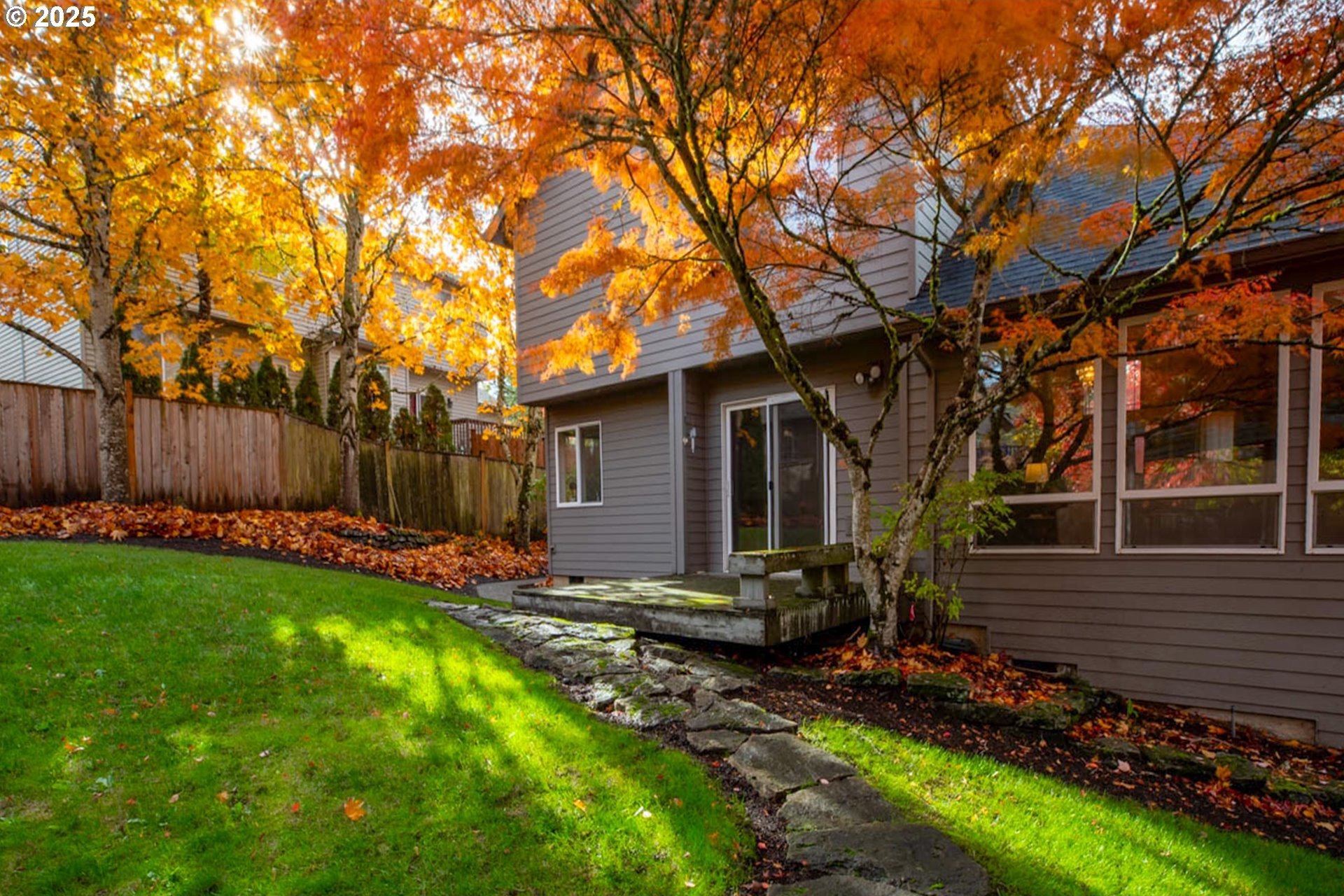 OPEN SUNDAY 11/9 12:30pm-2:30pm. Welcome to 7770 SW Oviatt an impeccably maintained and tastefully updated home that blends timeless comfort with modern convenience. Nestled in a quiet, safe, and highly desirable West Beaverton neighborhood, this residence offers beauty, privacy & a sense of community—surrounded by fabulous neighbors and tree-lined streets. Step inside to discover a light-filled interior with soaring vaulted ceilings, walls of windows & gleaming hardwood floors that flow through the main living areas. The spacious living room centers around a cozy gas fireplace & captures the warmth of natural light from every angle. The kitchen is the heart of the home, featuring beautiful new granite countertops, high-end SS appliances, a five-burner gas cooktop, convection oven & built-in microwave. A convenient desk area adds functionality, while the sliding glass doors open to a brand-new deck overlooking the beautifully landscaped backyard—a perfect space for outdoor dining and entertaining. Upstairs, the primary suite is a serene retreat with a vaulted ceiling, skylight & a fully remodeled en-suite bathroom featuring dual sinks, granite counters & a spacious walk-in shower. The guest bathroom has also been remodeled with new granite counters. Additional bedrooms include ceiling fans, ample storage & carpeting for comfort. On the main level a flexible ground-level bonus room offers endless possibilities—an ideal setup for a private home office, guest suite, workout room or creative studio. With its own separate entrance, it provides privacy and independence, allowing someone to come & go without entering the main home. There is a main level bedroom or could be an office or bonus room! Outside, the home has new exterior paint (2025), new deck & recently replaced roof, siding & gutters (2021) make this property truly move-in ready. Every detail has been carefully maintained from the underground sprinklers to the fresh landscaping that enhances its curb appeal.