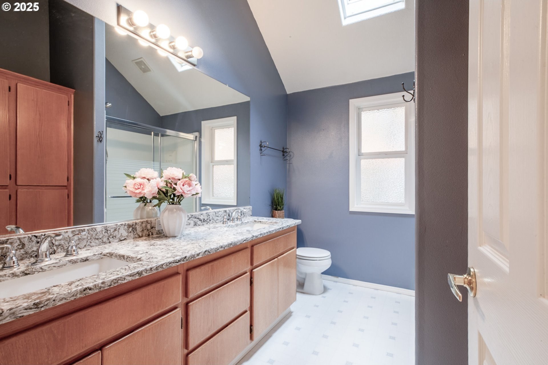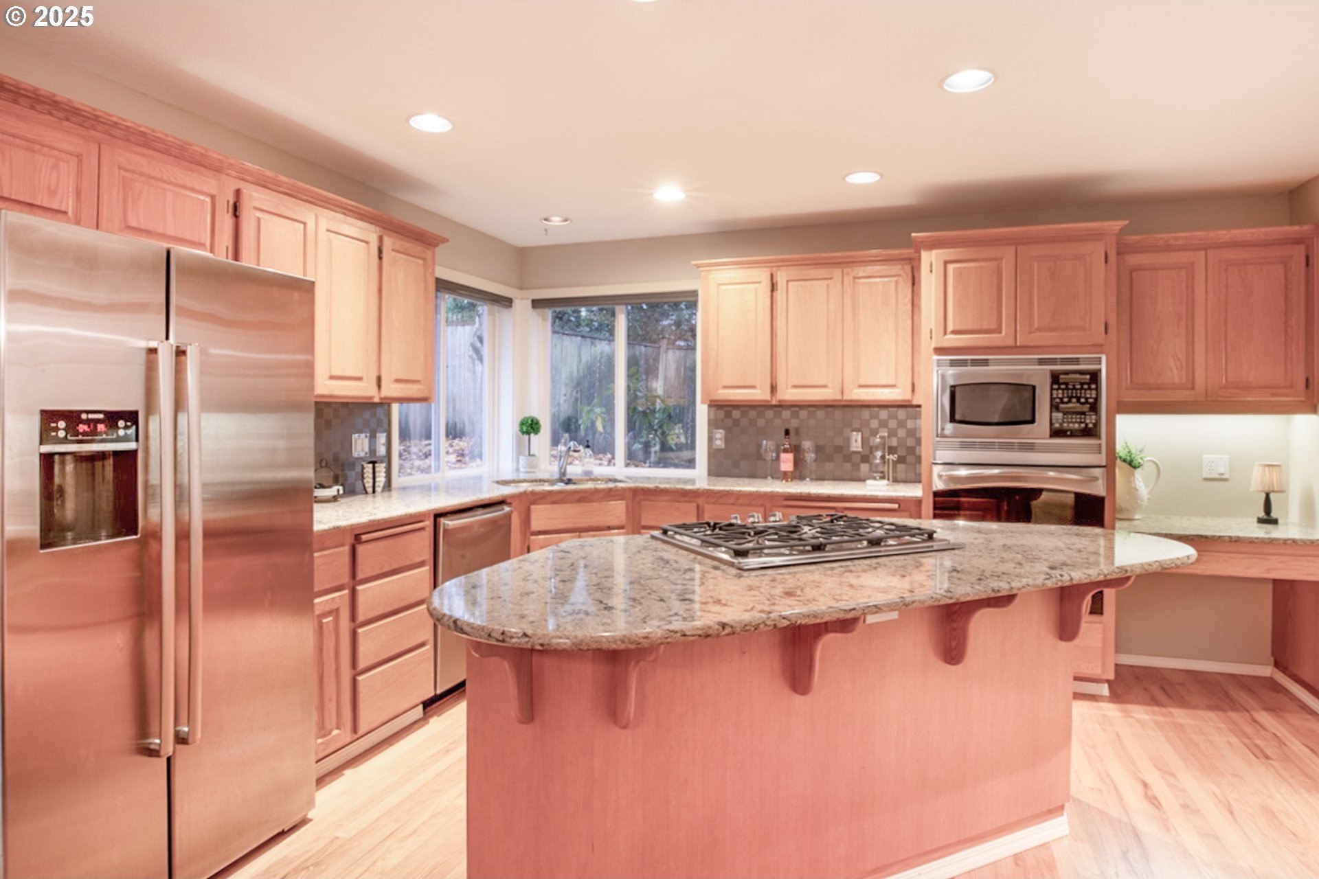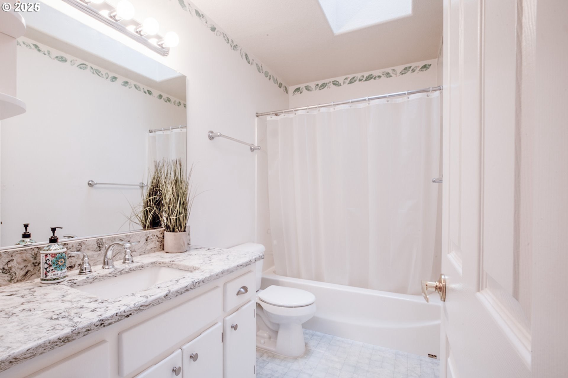 OPEN SUNDAY 11/9 12:30pm-2:30pm. Welcome to 7770 SW Oviatt an impeccably maintained and tastefully updated home that blends timeless comfort with modern convenience. Nestled in a quiet, safe, and highly desirable West Beaverton neighborhood, this residence offers beauty, privacy & a sense of community—surrounded by fabulous neighbors and tree-lined streets. Step inside to discover a light-filled interior with soaring vaulted ceilings, walls of windows & gleaming hardwood floors that flow through the main living areas. The spacious living room centers around a cozy gas fireplace & captures the warmth of natural light from every angle. The kitchen is the heart of the home, featuring beautiful new granite countertops, high-end SS appliances, a five-burner gas cooktop, convection oven & built-in microwave. A convenient desk area adds functionality, while the sliding glass doors open to a brand-new deck overlooking the beautifully landscaped backyard—a perfect space for outdoor dining and entertaining. Upstairs, the primary suite is a serene retreat with a vaulted ceiling, skylight & a fully remodeled en-suite bathroom featuring dual sinks, granite counters & a spacious walk-in shower. The guest bathroom has also been remodeled with new granite counters. Additional bedrooms include ceiling fans, ample storage & carpeting for comfort. On the main level a flexible ground-level bonus room offers endless possibilities—an ideal setup for a private home office, guest suite, workout room or creative studio. With its own separate entrance, it provides privacy and independence, allowing someone to come & go without entering the main home. There is a main level bedroom or could be an office or bonus room! Outside, the home has new exterior paint (2025), new deck & recently replaced roof, siding & gutters (2021) make this property truly move-in ready. Every detail has been carefully maintained from the underground sprinklers to the fresh landscaping that enhances its curb appeal.