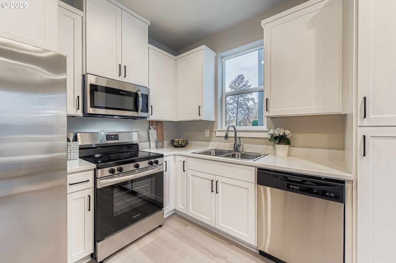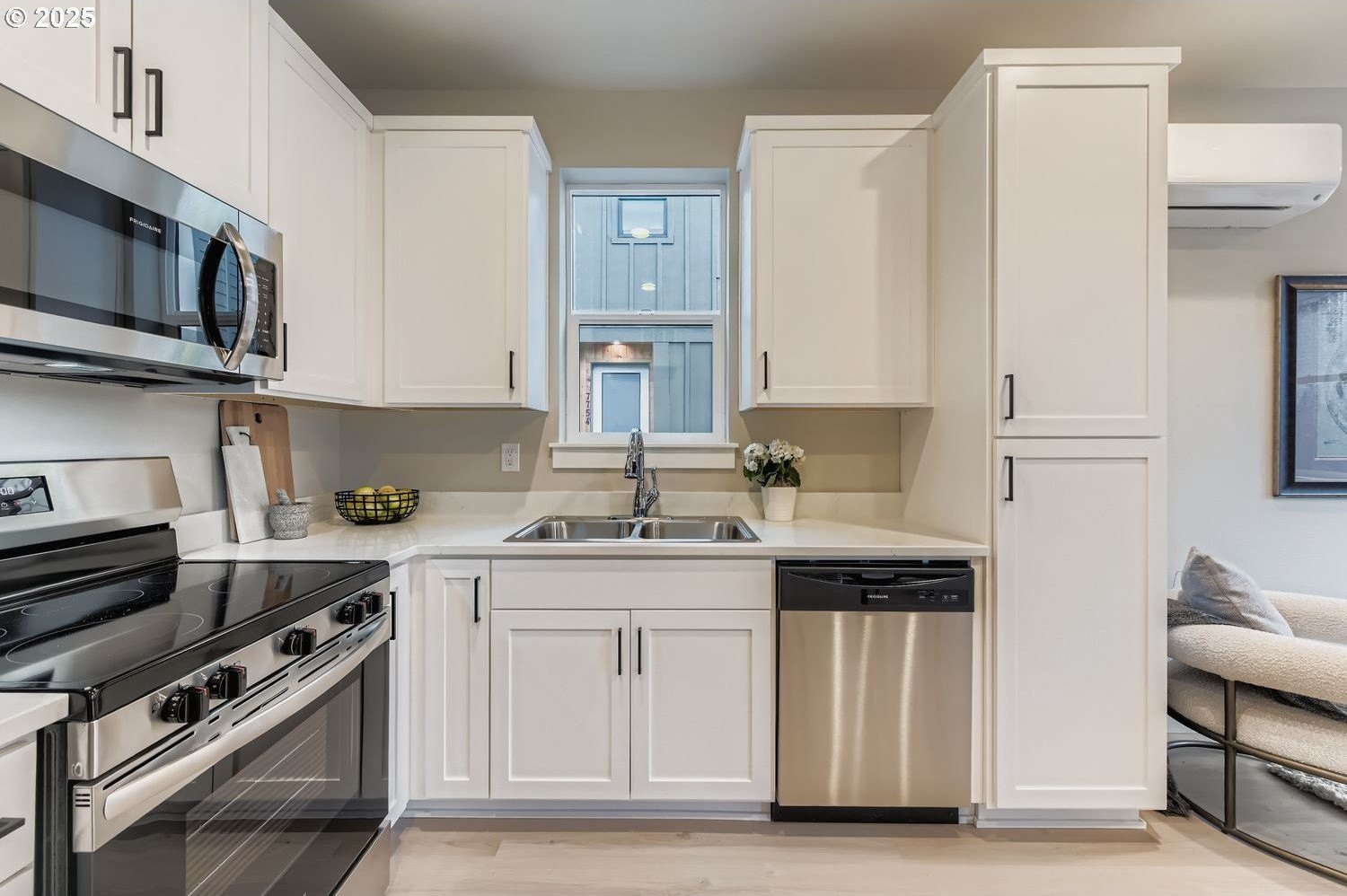 Live smart and live beautifully at Bonita Cottages, designed for low-maintenance living without sacrificing comfort or style. The Sage is the only home of its kind in this boutique new-construction community, a detached 2-bedroom plan offering elevated privacy with no neighboring home on one side and convenient access to its deeded parking space. A modern alternative to condo living, it provides the freedom of a standalone home without shared walls. The bright, open-concept main level features luxury vinyl plank flooring, quartz countertops, stainless steel appliances and painted custom cabinetry. Upstairs, two bedrooms and a full bath offer comfortable retreat and flexible function for work, guests or personal space. Energy-efficient mini-split heating and cooling, durable finishes and quality craftsmanship create a low-maintenance living experience. Located moments from parks, trails, Trader Joe’s, I-5, 99W, Hwy 217 and everyday conveniences. HOA covers common area maintenance. Six homes available across three floor plans; the Sage is the only one of its kind.