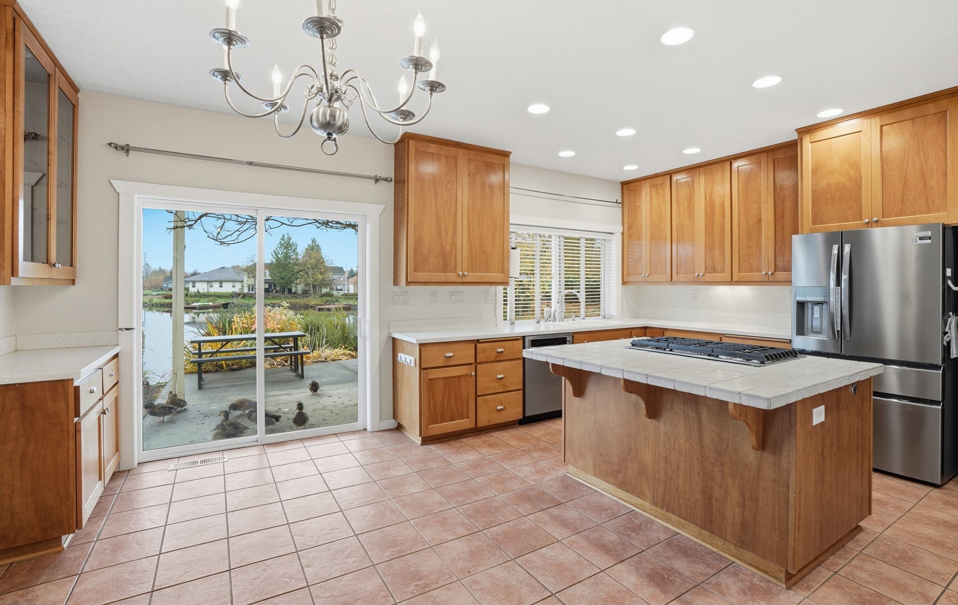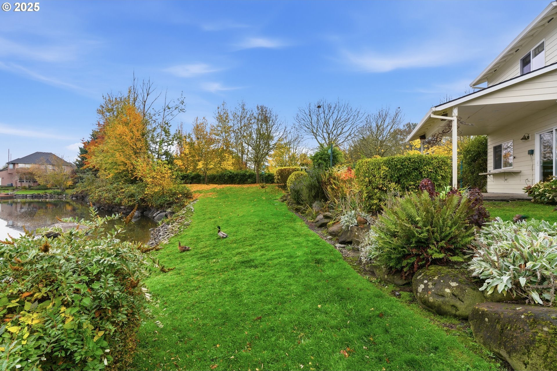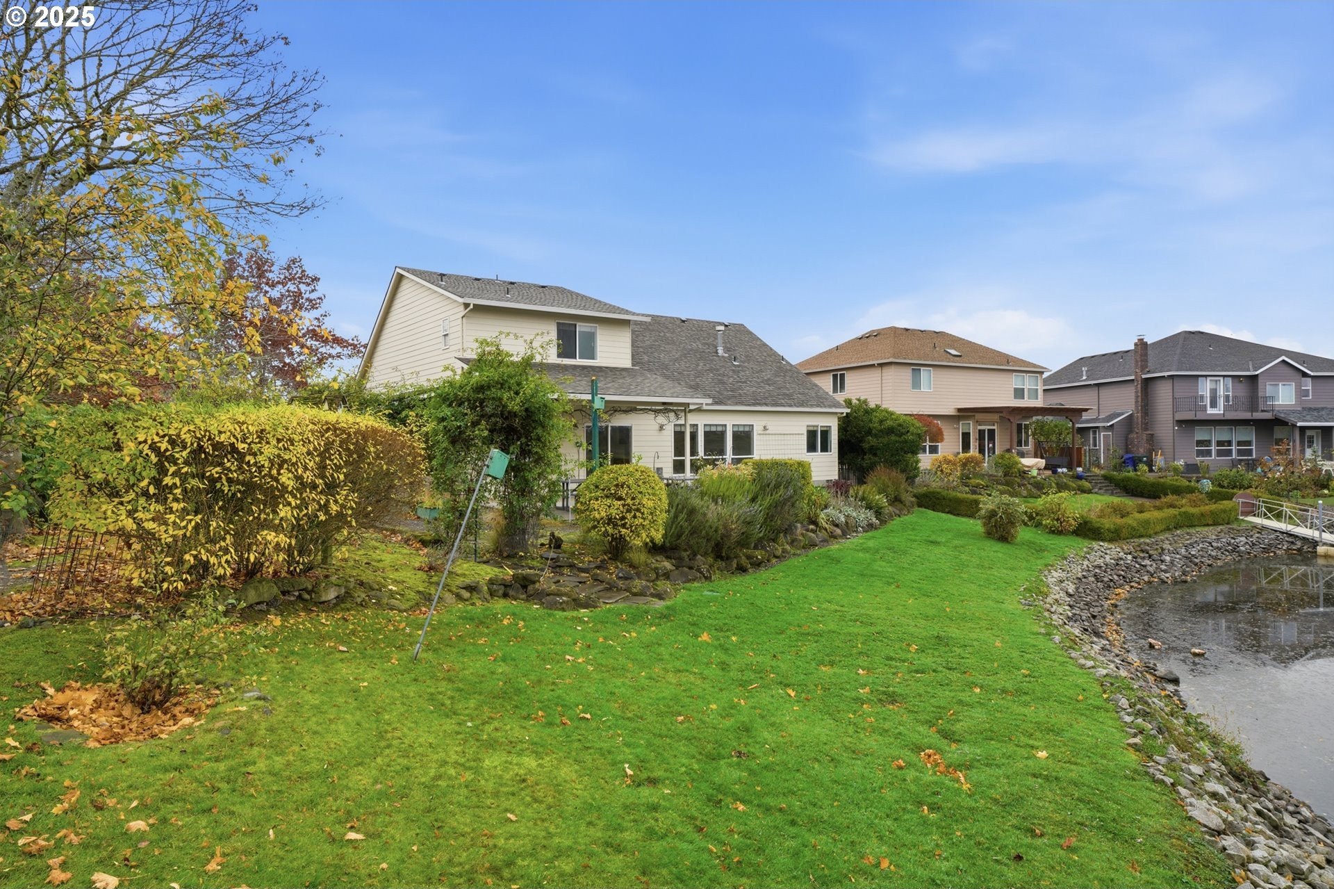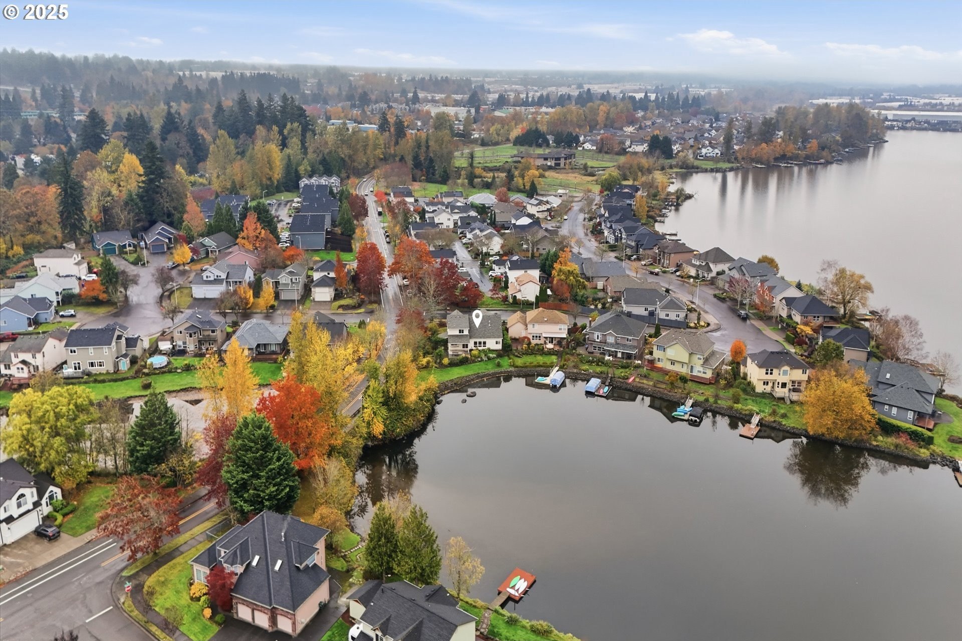 Serene lakeside living! Welcome to your private retreat on Fairview Lake, where nature, light, and thoughtful design come together in perfect harmony. This custom-built home rests on a .26 acre corner lot with a 140 feet of lake frontage, surrounded by lush landscaping, fruit trees, and peaceful water views. Inside, warmth and craftsmanship define every detail. The main level offers true single level living with a primary suite featuring a jetted tub and walk-in closet, a dedicated office with built-ins, and laundry room equipped with washer and dryer. Hardwood and tile floors flow throughout the great room layout, where a gas fireplace anchors the space and expansive windows frame the ever-changing beauty of the lake. The island kitchen is as functional as it is beautiful, complete with double ovens, a gas cooktop, pantry, and stainless steel appliances - perfect for everyday living or entertaining with ease. Just beyond, the covered patio invites you to enjoy quiet mornings or golden-hour sunsets reflected on the water’s surface, often accompanied by visits from ducks, herons, and other wildlife that make Fairview Lake their home. Upstairs, you’ll find two spacious bedrooms and a full bath, ideal for guests, hobbies, or relaxation. With 2,196 square feet of living space, this home blends openness and comfort, offering room to breathe while remaining intimately connected to its natural surroundings. Located in Lake Shores Estates, just minutes from Blue Lake Regional Park, Salish Ponds Trail, downtown Fairview, and I-84, this property offers the rare balance of privacy and accessibility - where lakefront tranquility meets everyday convenience.Discover a home that feels more like a sanctuary - beautifully built, gracefully lived in, and ready for its next chapter.