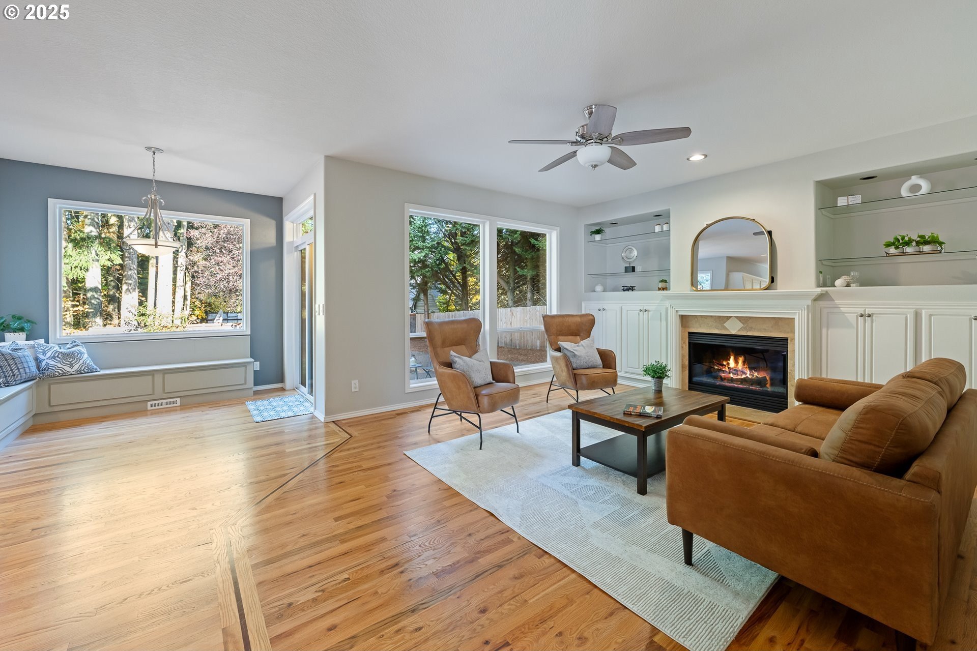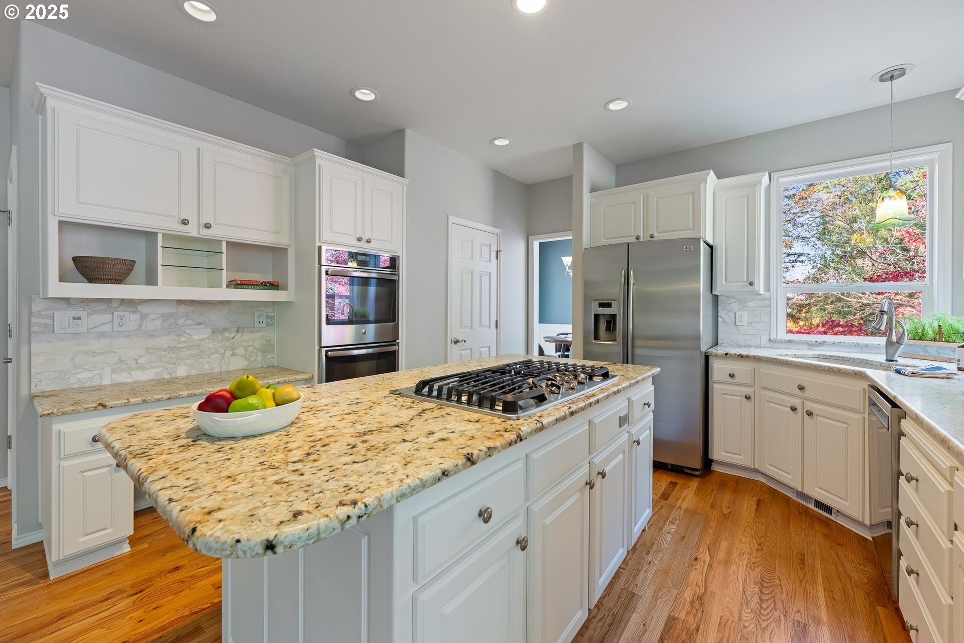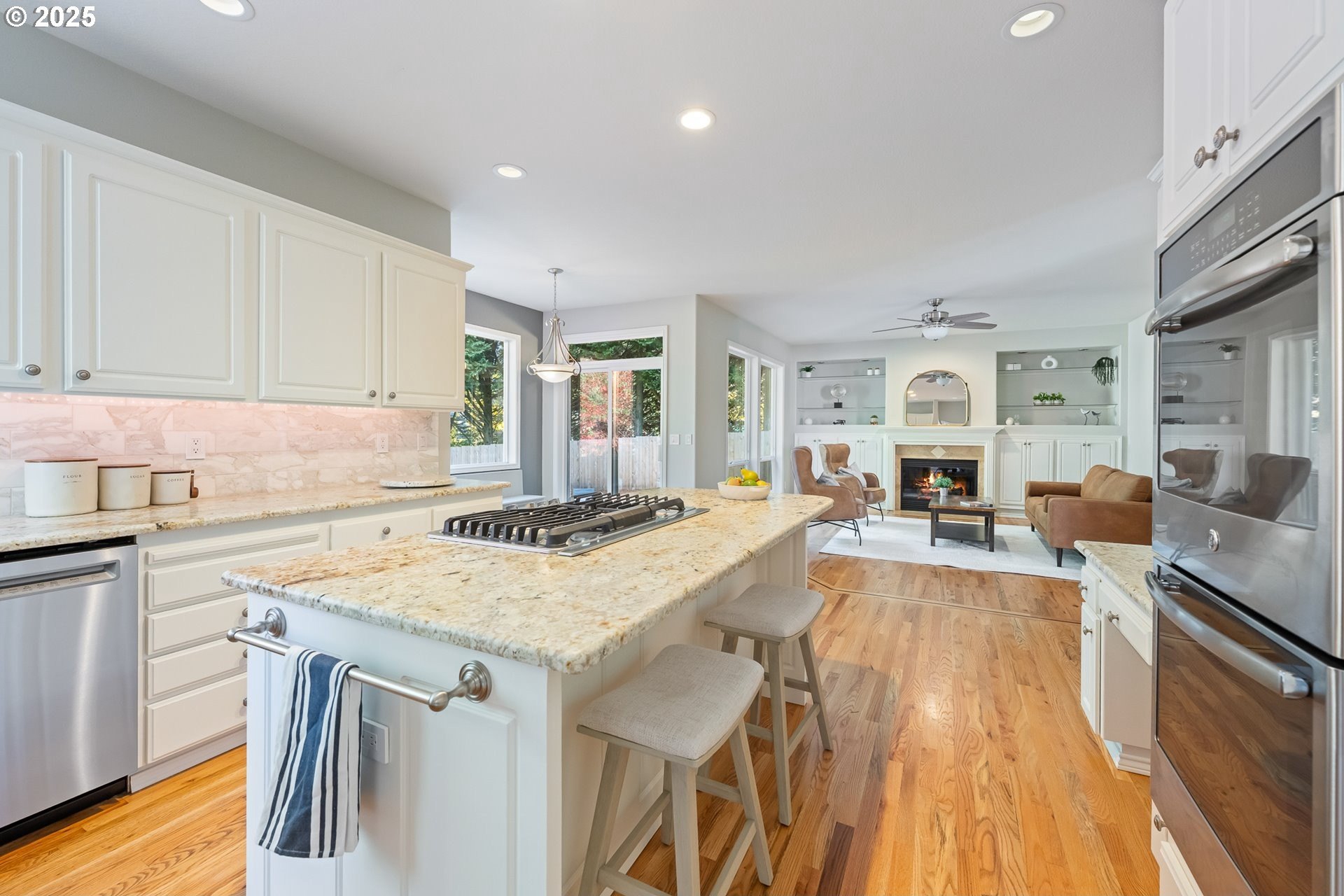Welcome to this stunning home set on a quarter-acre lot, where thoughtful design and quality finishes come together beautifully. As you step inside, gorgeous hardwood floors guide you through the main level, where natural light fills the open living spaces. Two inviting living rooms, each with its own fireplace, are perfect for relaxing or entertaining, along with a formal dining room for gatherings and a cozy den or office that can easily serve as a fourth bedroom.The heart of the home is the gourmet kitchen, featuring granite countertops, stainless steel appliances, a built-in double oven, a gas cook island, and even a wine closet for your favorite bottles. The built-in bench seating in the breakfast nook offers a warm, casual spot for morning coffee or family meals.Upstairs, the primary suite feels like a private retreat, with a spa-inspired bathroom boasting heated travertine tile floors, a soaking tub, and a walk-in closet. Two additional spacious bedrooms offer comfort and versatility for family or guests, and a bonus room for a play area, media room, home office or additional bedroom.Step outside to a lush, expansive fenced backyard surrounded by mature trees, offering both beauty and privacy. A large patio sets the stage for outdoor dining, gatherings, or quiet evenings under the stars. The oversized three-car garage is a standout, complete with custom cabinets, overhead storage, and epoxy flooring—ideal for organization and projects. For added peace of mind, the home features a 50-year roof installed in 2020, and Leafguard gutters ensuring years of protection and durability.Enjoy the many restaurants and recreational opportunities in the nearby Progress Ridge Shopping Center as well as desirable Tigard-Tualatin District schools. From the inviting flow of the living spaces to the thoughtful upgrades throughout and unbeatable location- this home is truly one of a kind. Schedule a showing today!