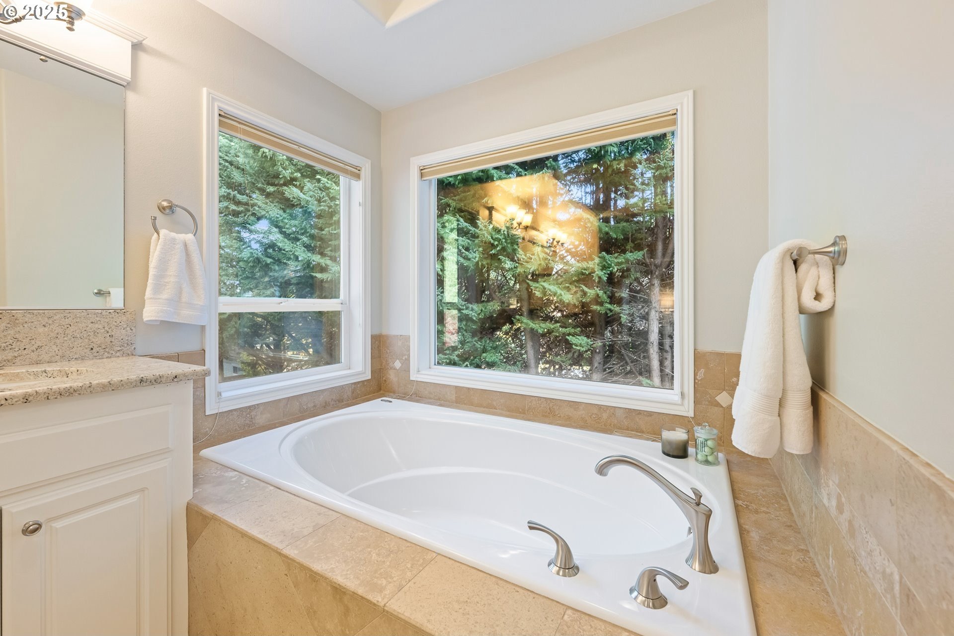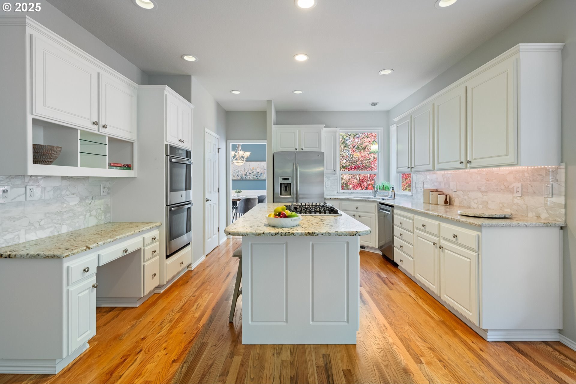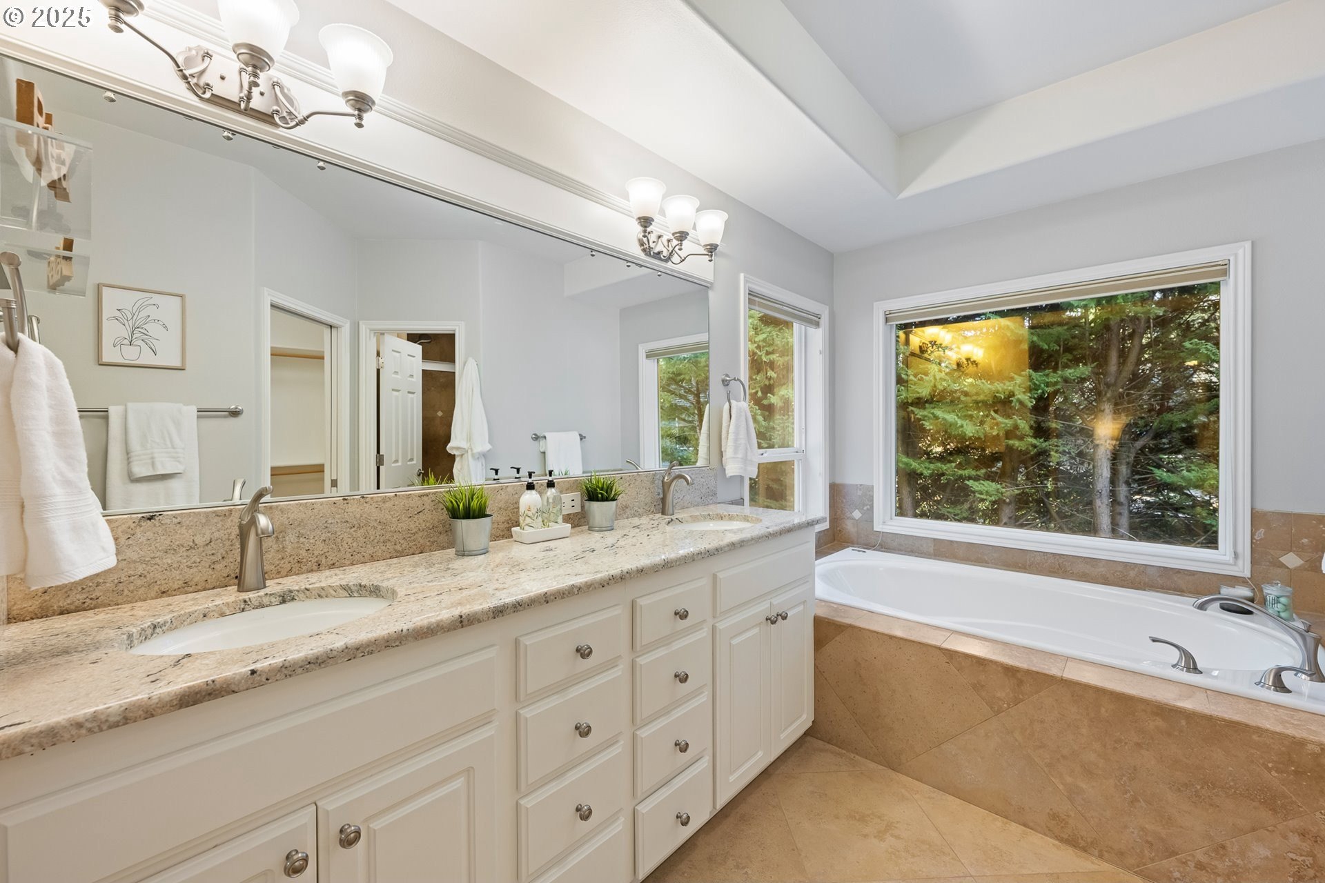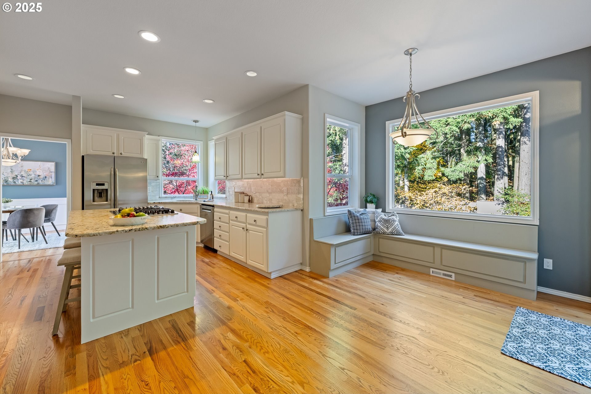 Welcome to this stunning home set on a quarter-acre lot, where thoughtful design and quality finishes come together beautifully. As you step inside, gorgeous hardwood floors guide you through the main level, where natural light fills the open living spaces. Two inviting living rooms, each with its own fireplace, are perfect for relaxing or entertaining, along with a formal dining room for gatherings and a cozy den or office that can easily serve as a fourth bedroom.The heart of the home is the gourmet kitchen, featuring granite countertops, stainless steel appliances, a built-in double oven, a gas cook island, and even a wine closet for your favorite bottles. The built-in bench seating in the breakfast nook offers a warm, casual spot for morning coffee or family meals.Upstairs, the primary suite feels like a private retreat, with a spa-inspired bathroom boasting heated travertine tile floors, a soaking tub, and a walk-in closet. Two additional spacious bedrooms offer comfort and versatility for family or guests, and a bonus room for a play area, media room, home office or additional bedroom.Step outside to a lush, expansive fenced backyard surrounded by mature trees, offering both beauty and privacy. A large patio sets the stage for outdoor dining, gatherings, or quiet evenings under the stars. The oversized three-car garage is a standout, complete with custom cabinets, overhead storage, and epoxy flooring—ideal for organization and projects. For added peace of mind, the home features a 50-year roof installed in 2020, and Leafguard gutters ensuring years of protection and durability.Enjoy the many restaurants and recreational opportunities in the nearby Progress Ridge Shopping Center as well as desirable Tigard-Tualatin District schools. From the inviting flow of the living spaces to the thoughtful upgrades throughout and unbeatable location- this home is truly one of a kind. Schedule a showing today!