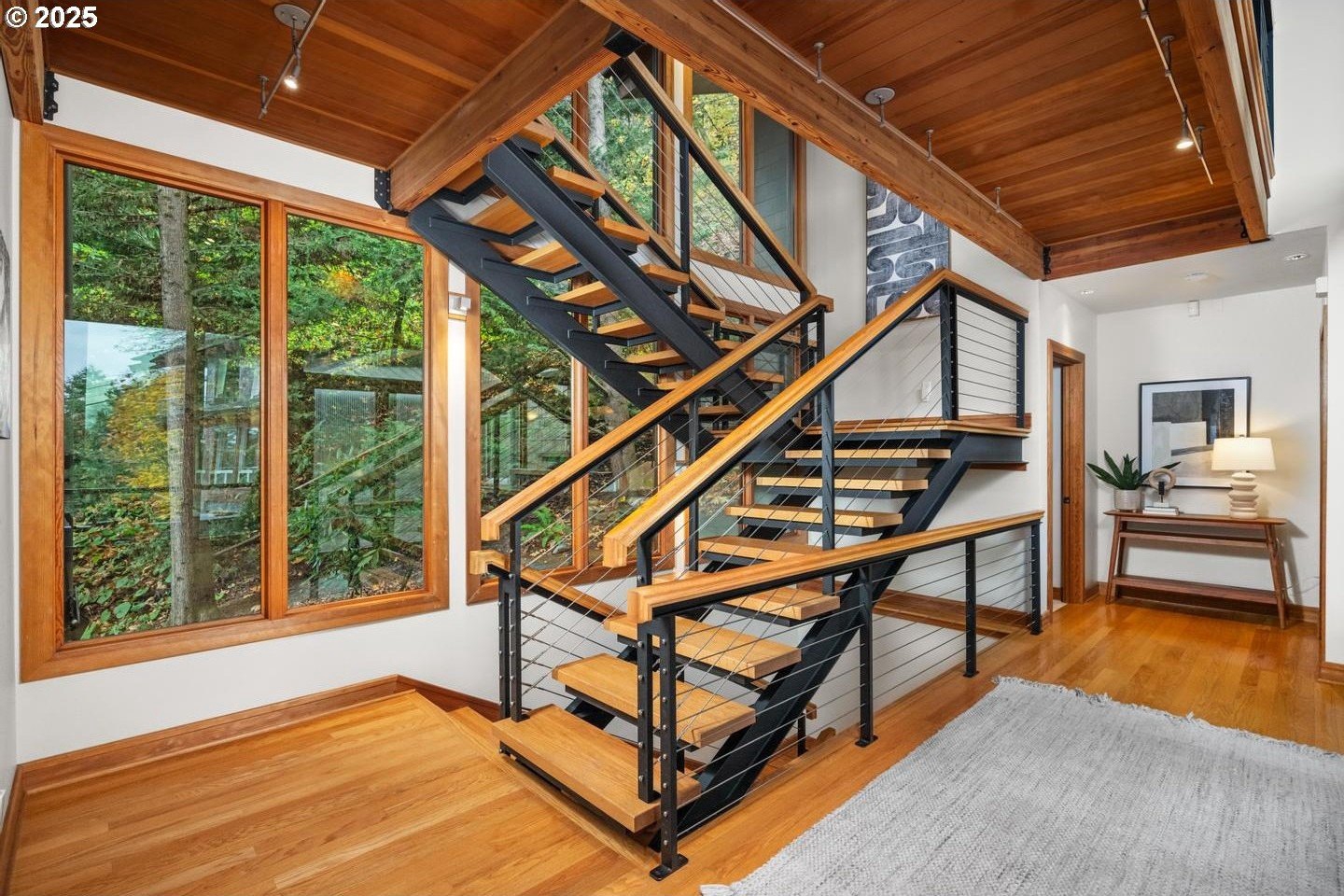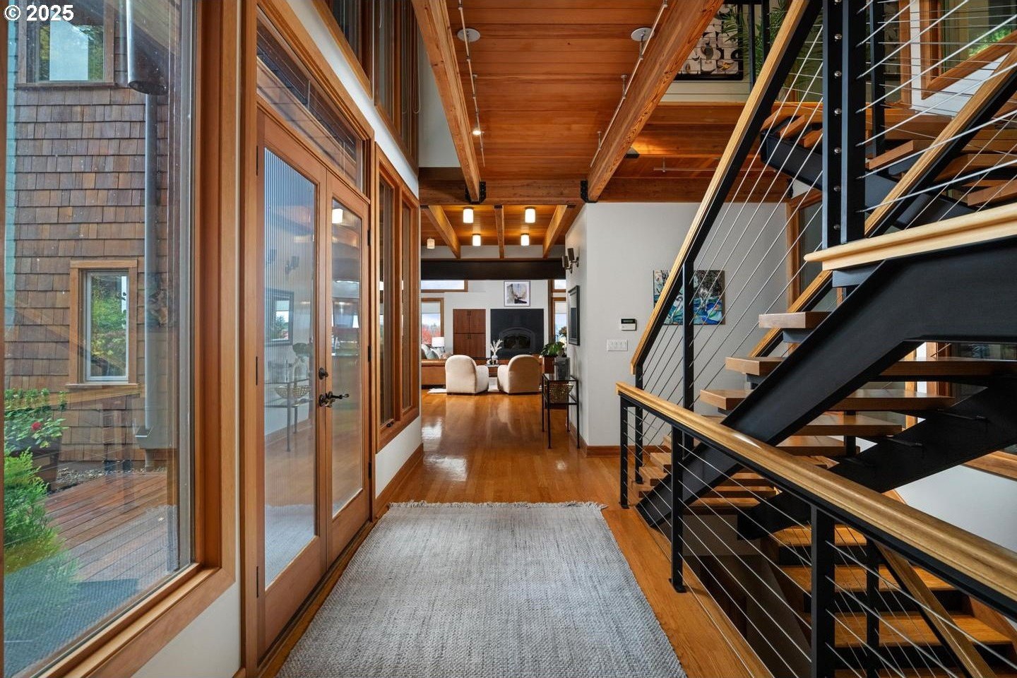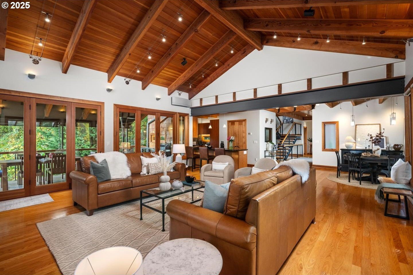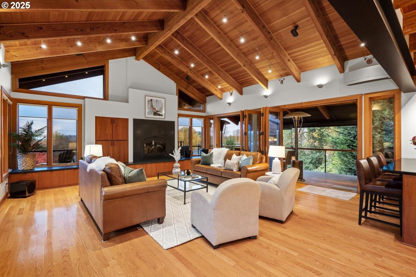 Discover this custom-built contemporary masterpiece, perfectly perched to capture sweeping views in one of Portland’s most sought-after neighborhoods. This architecturally striking home blends modern industrial flair with warm craftsman detailing, creating a vibe that’s both stylish and welcoming.Step into the spacious great room, where vaulted open-beam ceilings, a cozy fireplace, built-ins, and oversized picture windows set the stage for effortless living and memorable gatherings. The gourmet kitchen is a chef’s dream—featuring a pro-grade range, pot filler, and a Butler’s pantry designed for seamless entertaining.Unwind in the luxurious primary retreat, your own private escape at the end of the day. Outside, an expansive covered deck invites year-round enjoyment of the Pacific Northwest’s natural beauty.A truly special home where design, comfort, and location come together beautifully.