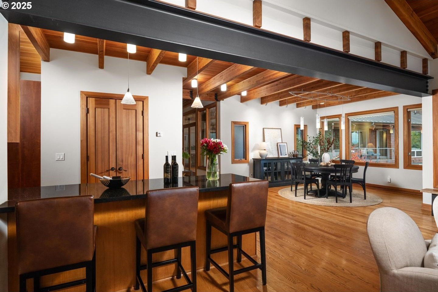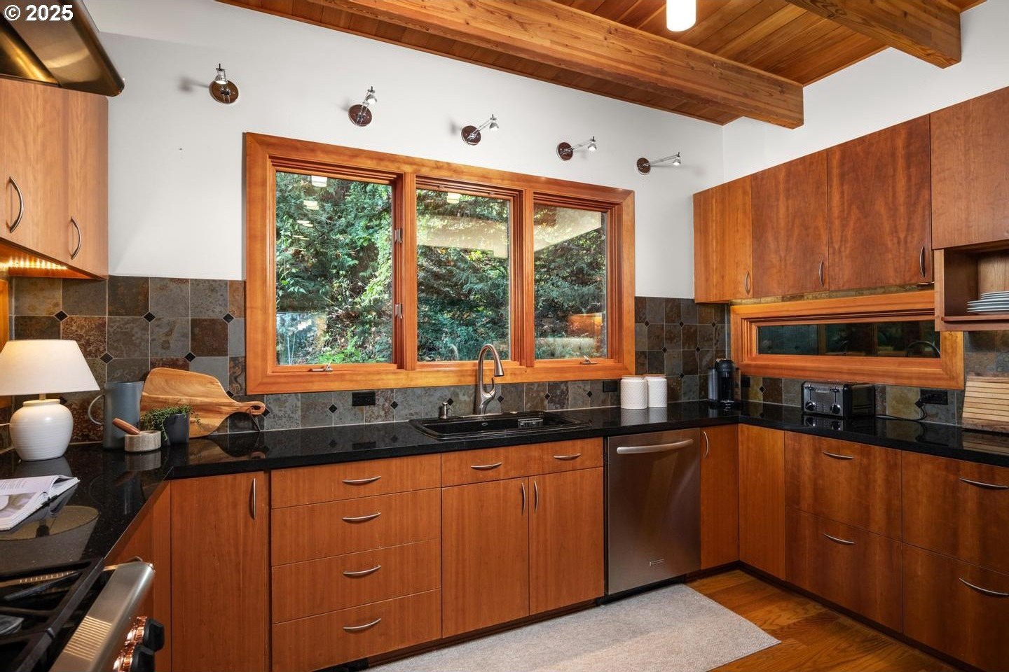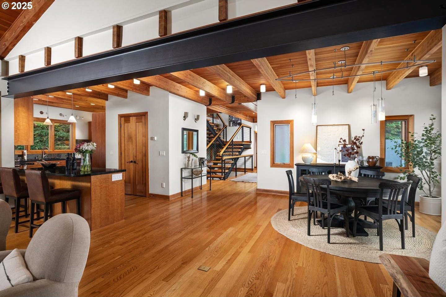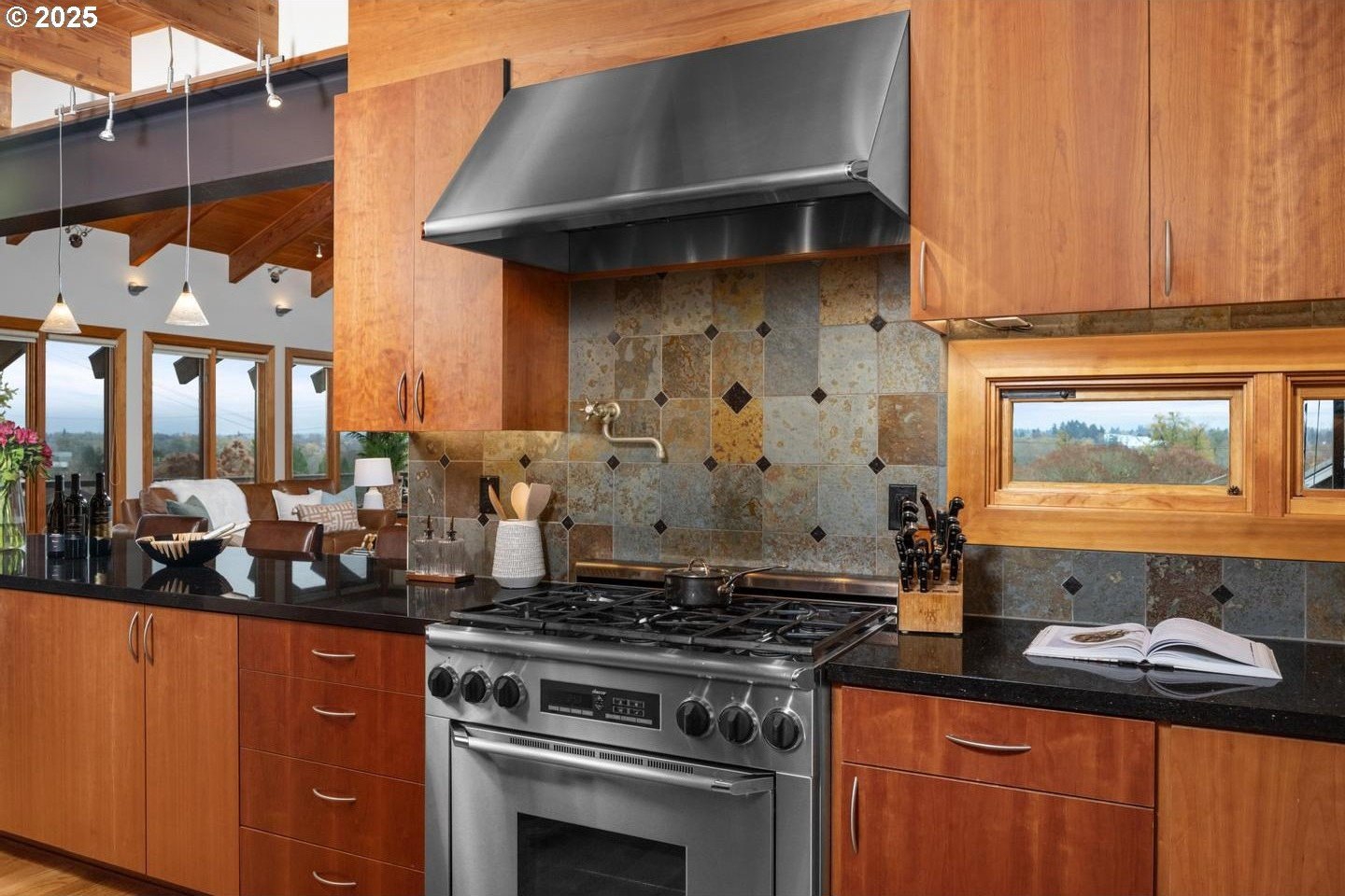 Discover this custom-built contemporary masterpiece, perfectly perched to capture sweeping views in one of Portland’s most sought-after neighborhoods. This architecturally striking home blends modern industrial flair with warm craftsman detailing, creating a vibe that’s both stylish and welcoming.Step into the spacious great room, where vaulted open-beam ceilings, a cozy fireplace, built-ins, and oversized picture windows set the stage for effortless living and memorable gatherings. The gourmet kitchen is a chef’s dream—featuring a pro-grade range, pot filler, and a Butler’s pantry designed for seamless entertaining.Unwind in the luxurious primary retreat, your own private escape at the end of the day. Outside, an expansive covered deck invites year-round enjoyment of the Pacific Northwest’s natural beauty.A truly special home where design, comfort, and location come together beautifully.