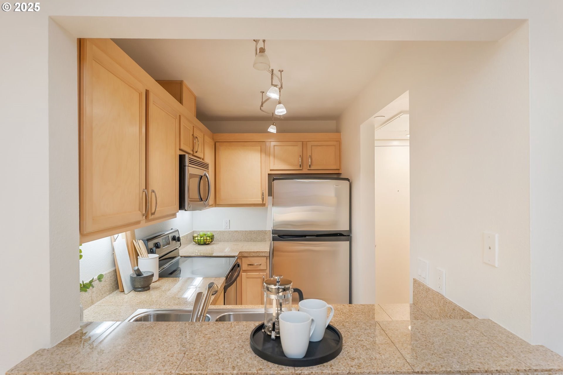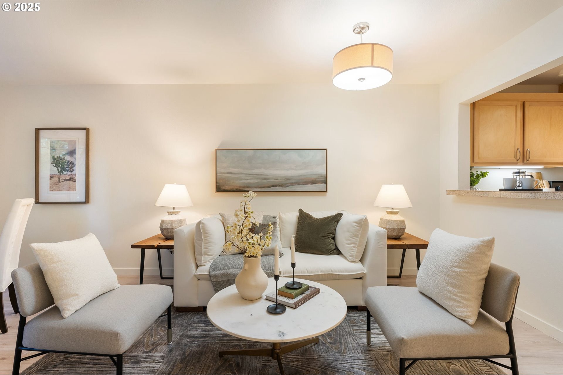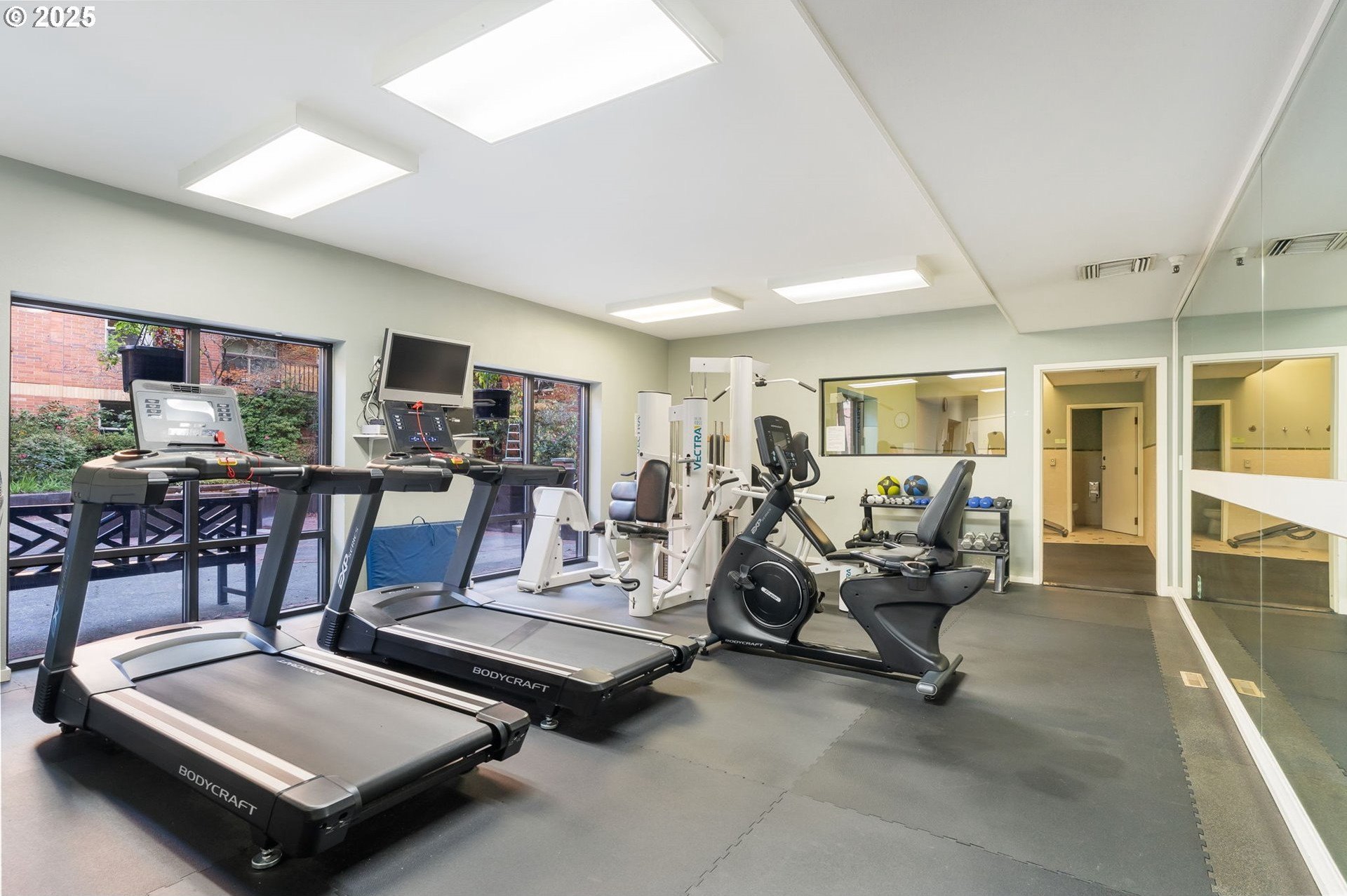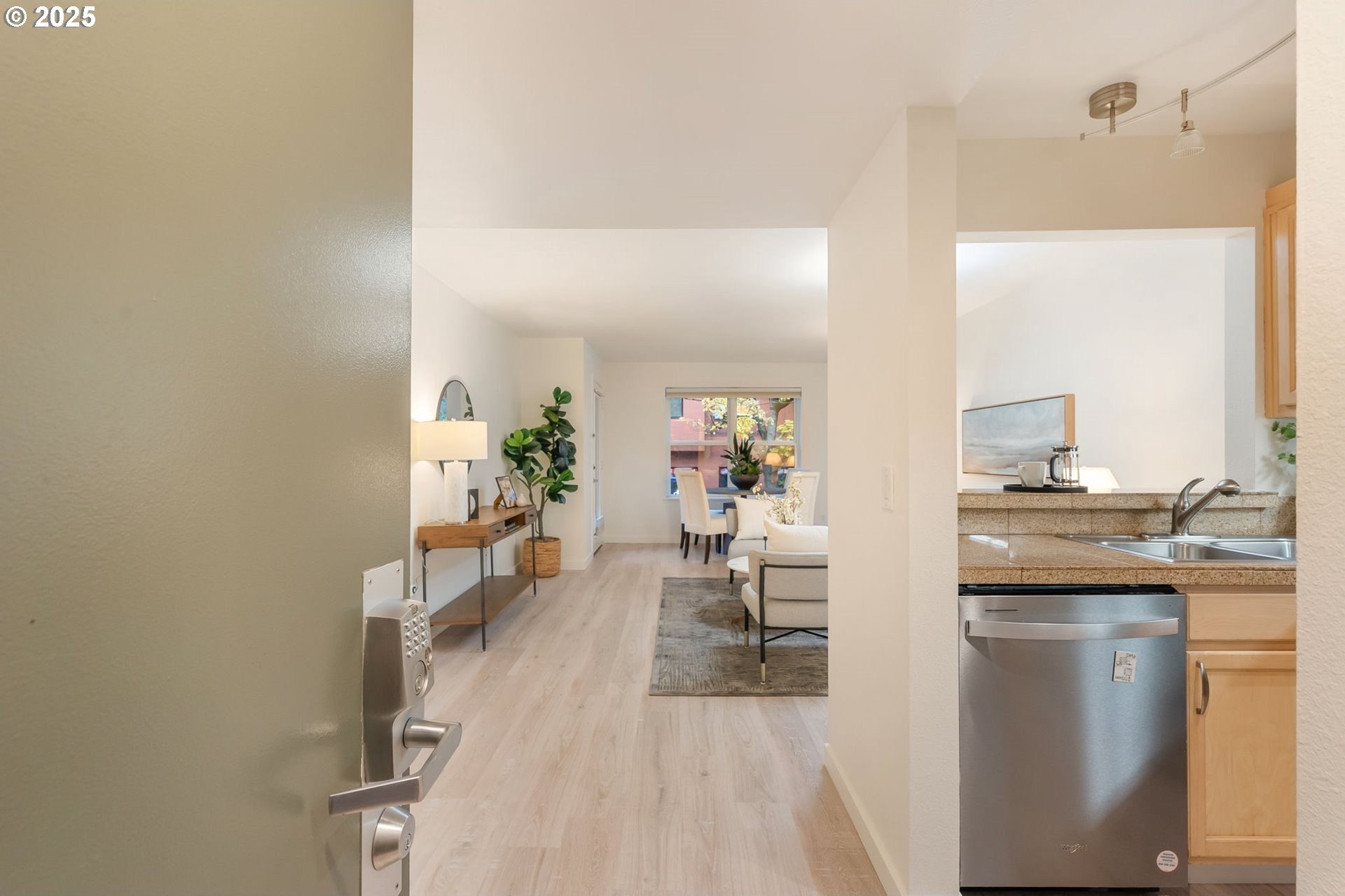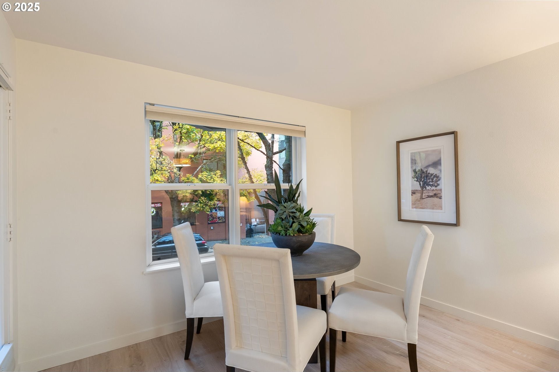 Welcome to the best of urban living just steps from the beautiful downtown park blocks! Enjoy short walks to the Arlene Schnitzer concert hall, Portland Art Museum, Portland State University and a plethora of cafes and restaurants. This first floor one level home was just freshly renovated with new luxury vinyl plank flooring, fresh interior paint through out. The open great room concept allows for a cozy family room and a full dining space. It opens onto a covered balcony that looks onto the beauty of the park blocks. Enjoy a primary ensuite with full bath and walk in closet. The efficient kitchen presents with granite counters and stainless steel appliances. A stackable washer and dryer in the unit included. This is a beautiful and secure building, gated courtyard entrance with secure common areas and onsite building supervisor. The community amenities are extensive including, meeting room/library, weight room/gym, bike storage, roof top, sundeck with city views and a gorgeous courtyard. Deeded parking #99 and storage unit #11. This is a hidden gem in the heart of the downtown, just move in and enjoy city living! Unit #104