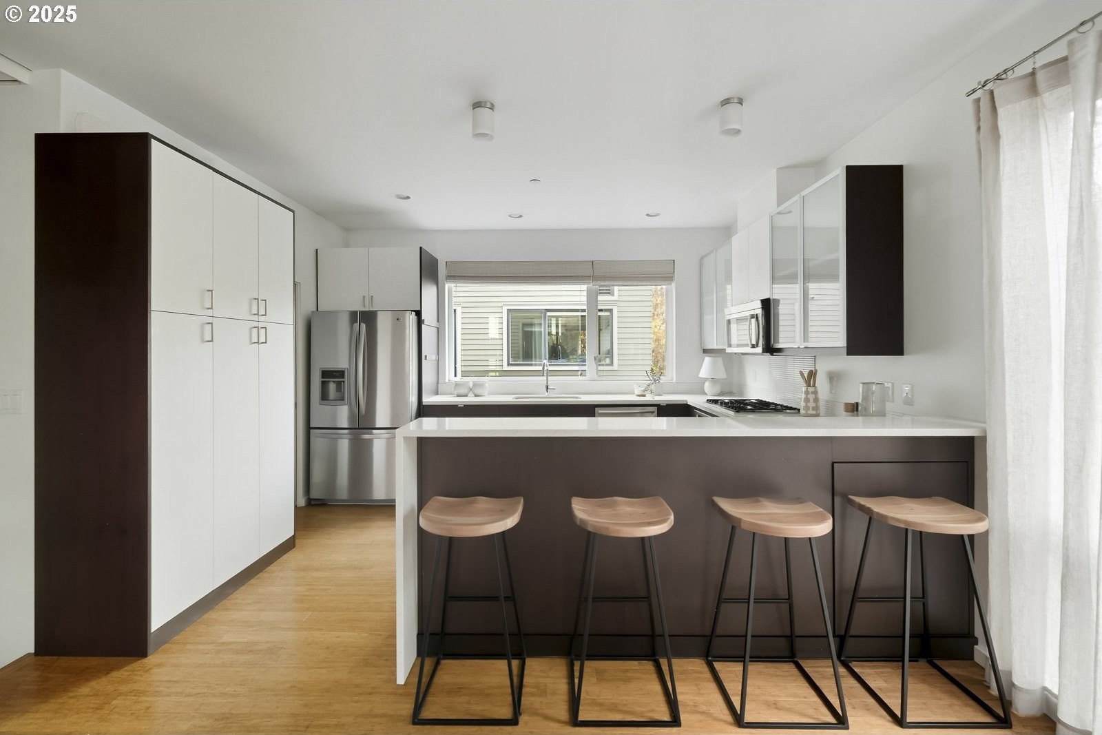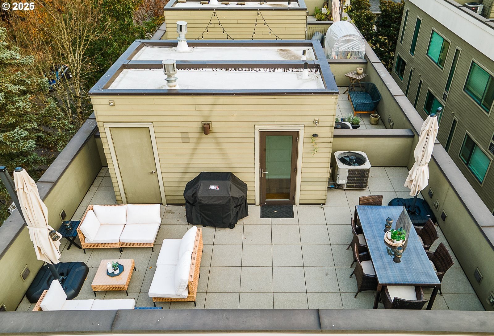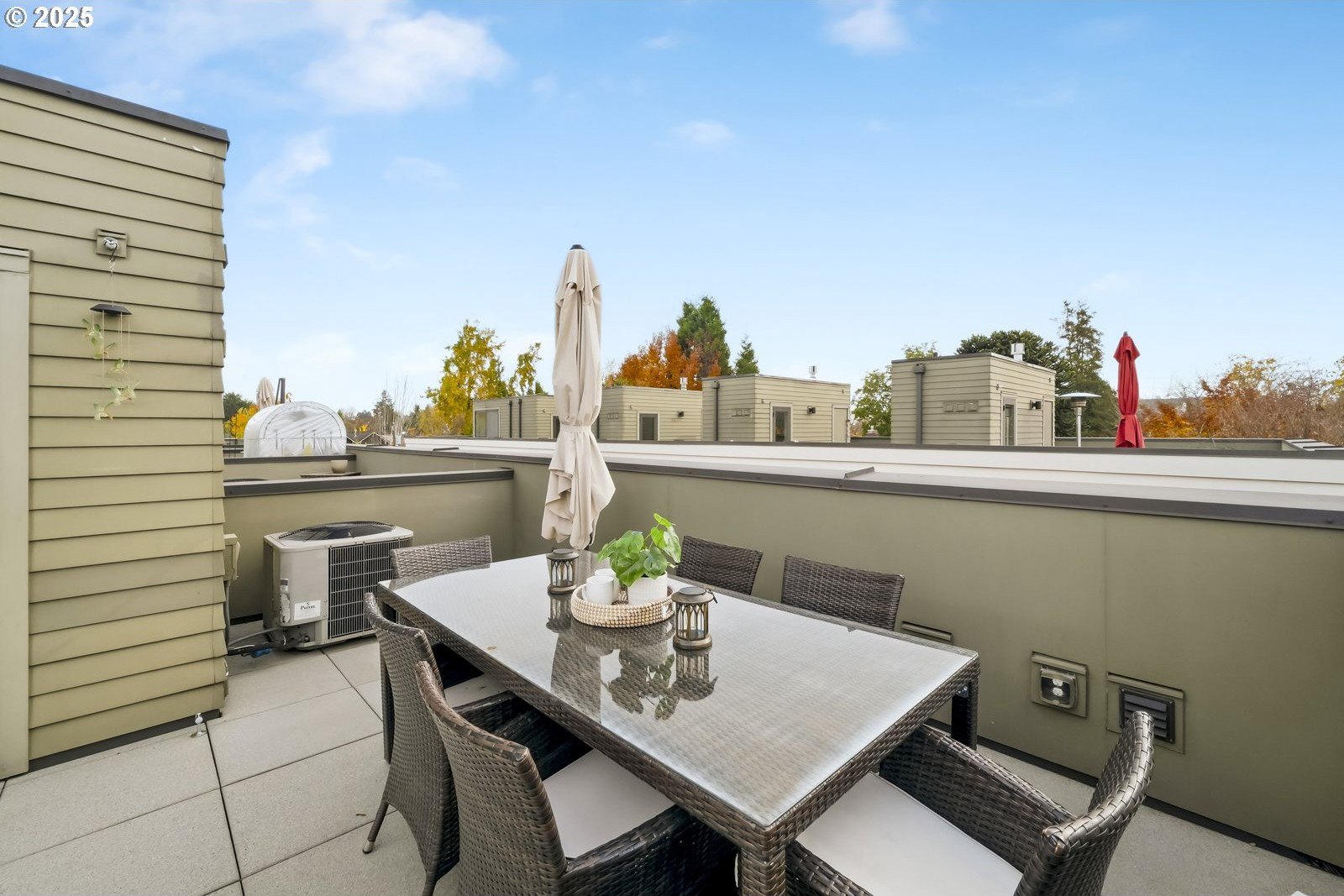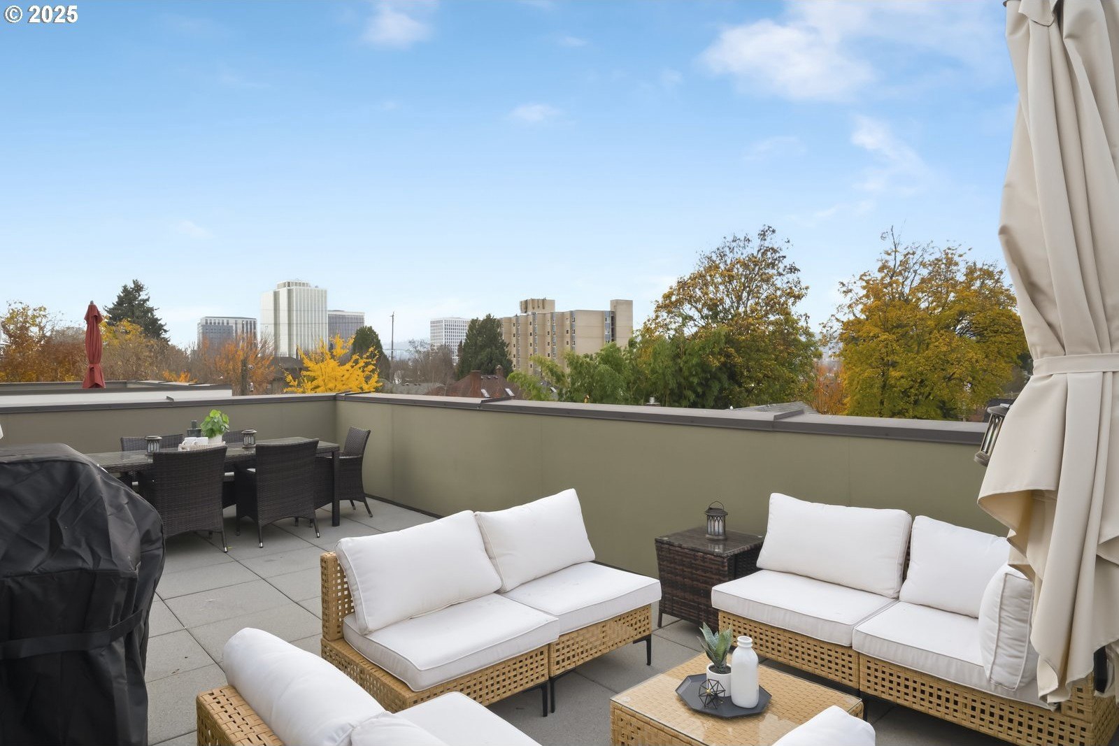Located in the heart of historic Irvington, this rare end-unit townhouse-style condo offers modern comfort within one of Portland’s most beloved neighborhoods. It truly lives like a detached home with its own front door, attached garage, and thoughtful upgrades throughout. The cook’s kitchen is a true centerpiece—Neil Kelly cabinetry, deep drawers, quartz counters, pantry, and a generous eating bar that flows into an open living and dining area. Floor-to-ceiling windows on three sides bathe the home in natural light, creating a warm, inviting feel in every season. A gas fireplace and balcony with gas/water hookups make indoor–outdoor living effortless. Upstairs, two luminous primary suites feature wool carpet, Neil Kelly closets, and spa-inspired baths—one with an oversized soaking tub, the other with double shower heads. The larger suite offers a private balcony that catches the morning light and feels made for coffee, calm and a little container garden magic. Flexible laundry options include hookups upstairs or in the oversized garage with abundant storage. A Home Energy Score of 10 reflects the home’s efficiency and low-impact design. And then—there’s the rooftop. Nearly 500 sq ft of open sky, framed by views of the city, the West Hills, and winter views of Mt. Hood. An established garden with mature plantings and a drip system creates a sanctuary that feels both elevated and grounded, like a modern treehouse above the neighborhood. Sunsets here are unforgettable—golden light settling over the rooftops, the soft shimmer of “komorebi” as sunlight filters through nearby cherry trees. It’s a place for long summer dinners, peaceful mornings, and quiet, starlit evenings. Set within a warm, connected community and surrounded by parks, grocery stores, cafes, restaurants, and transit—plus Grant School District—this home offers a rare blend of privacy, light, beauty, and effortless city living. [Home Energy Score = 9. HES Report at https://rpt.greenbuildingregistry.com/hes/OR10227086]