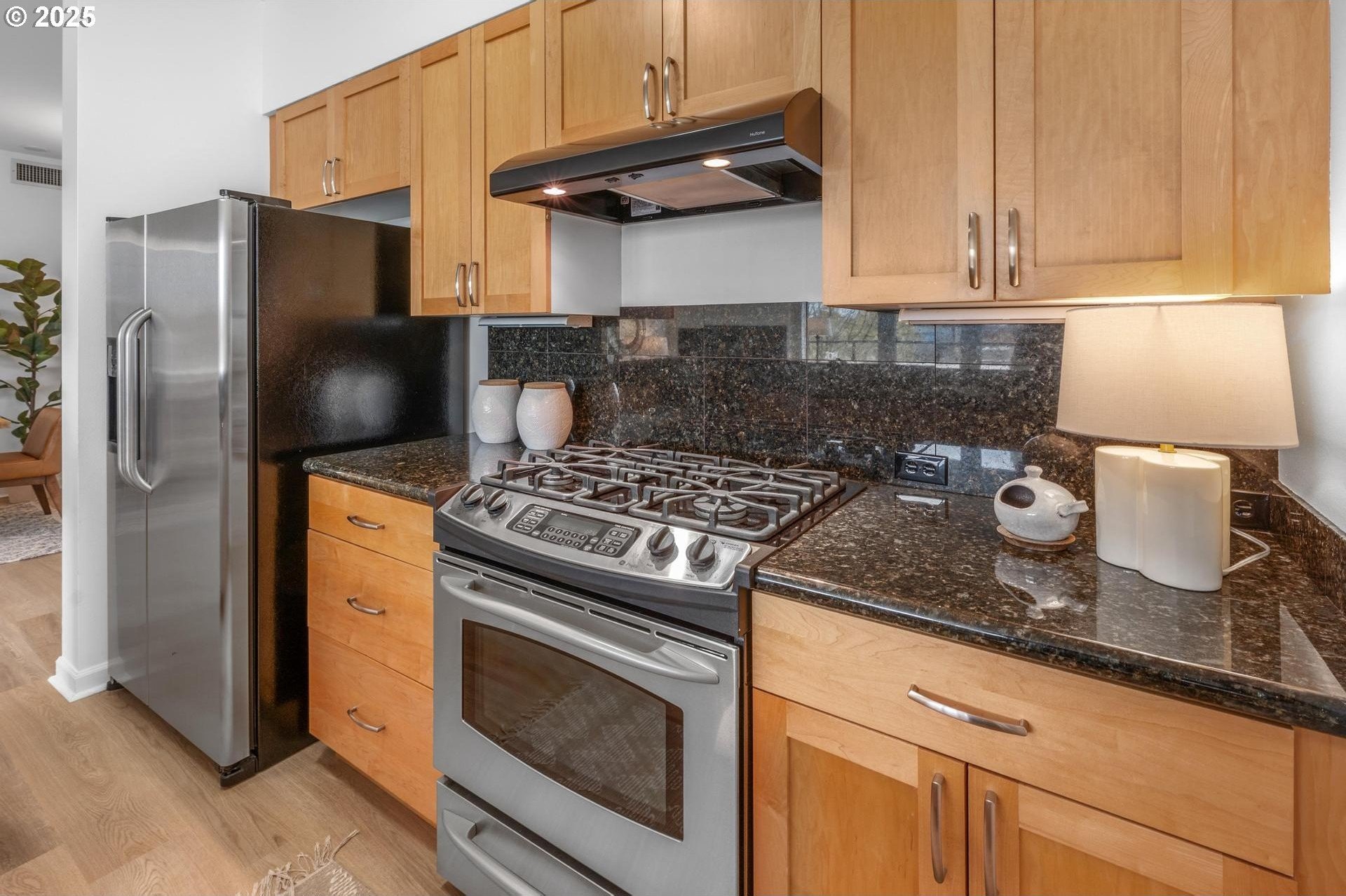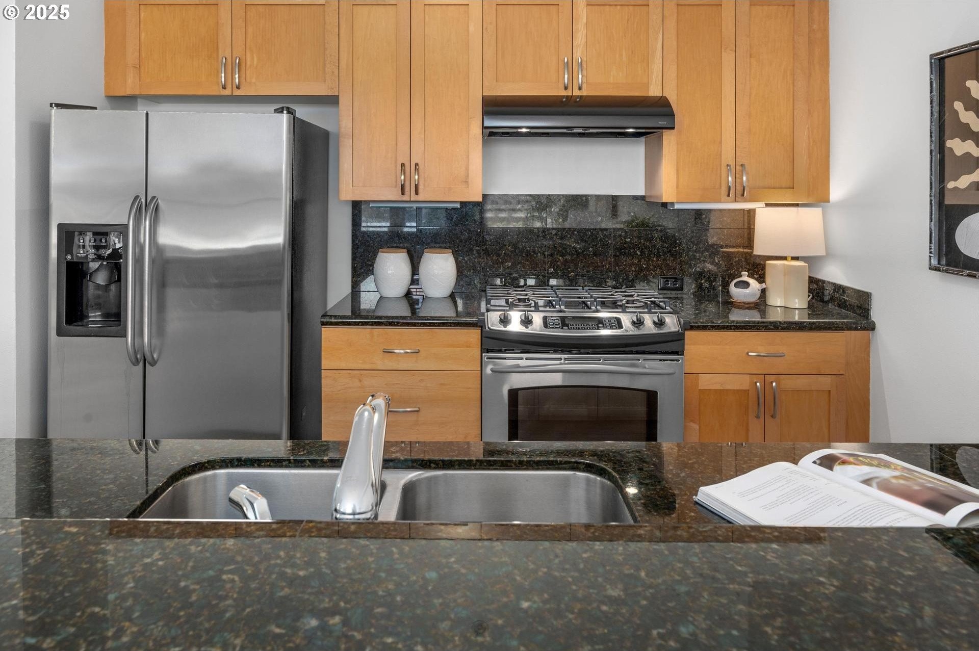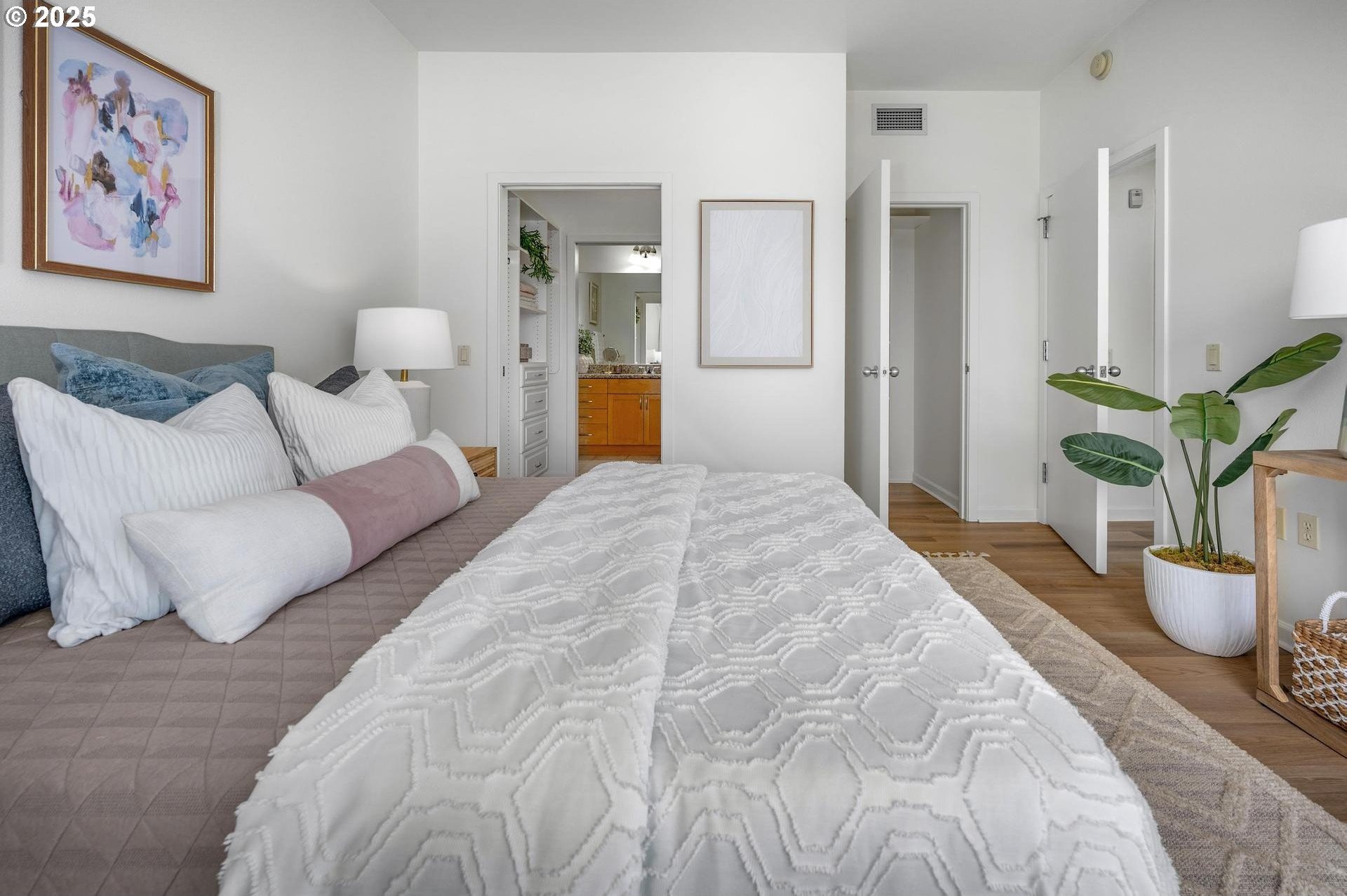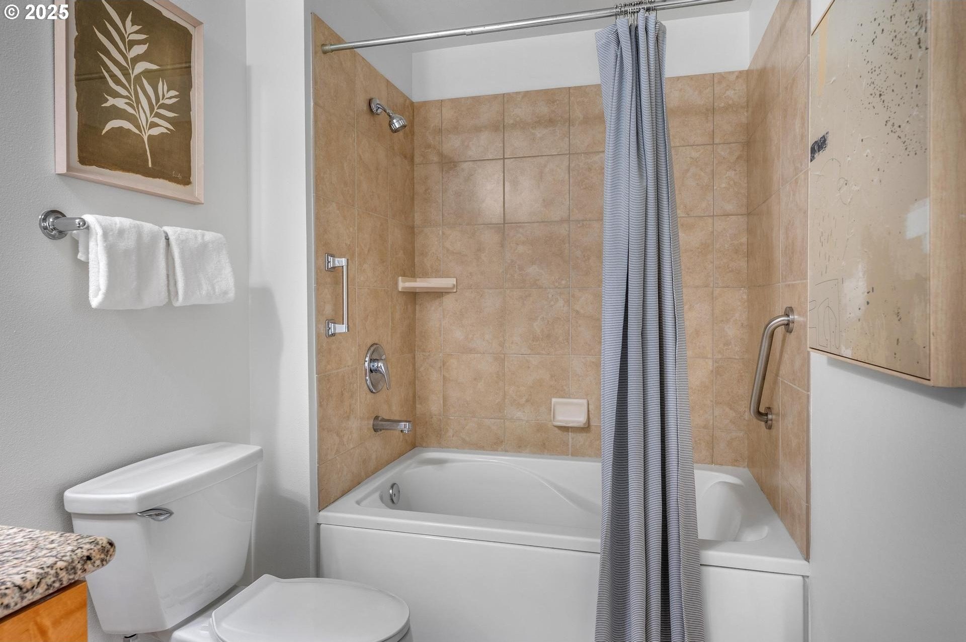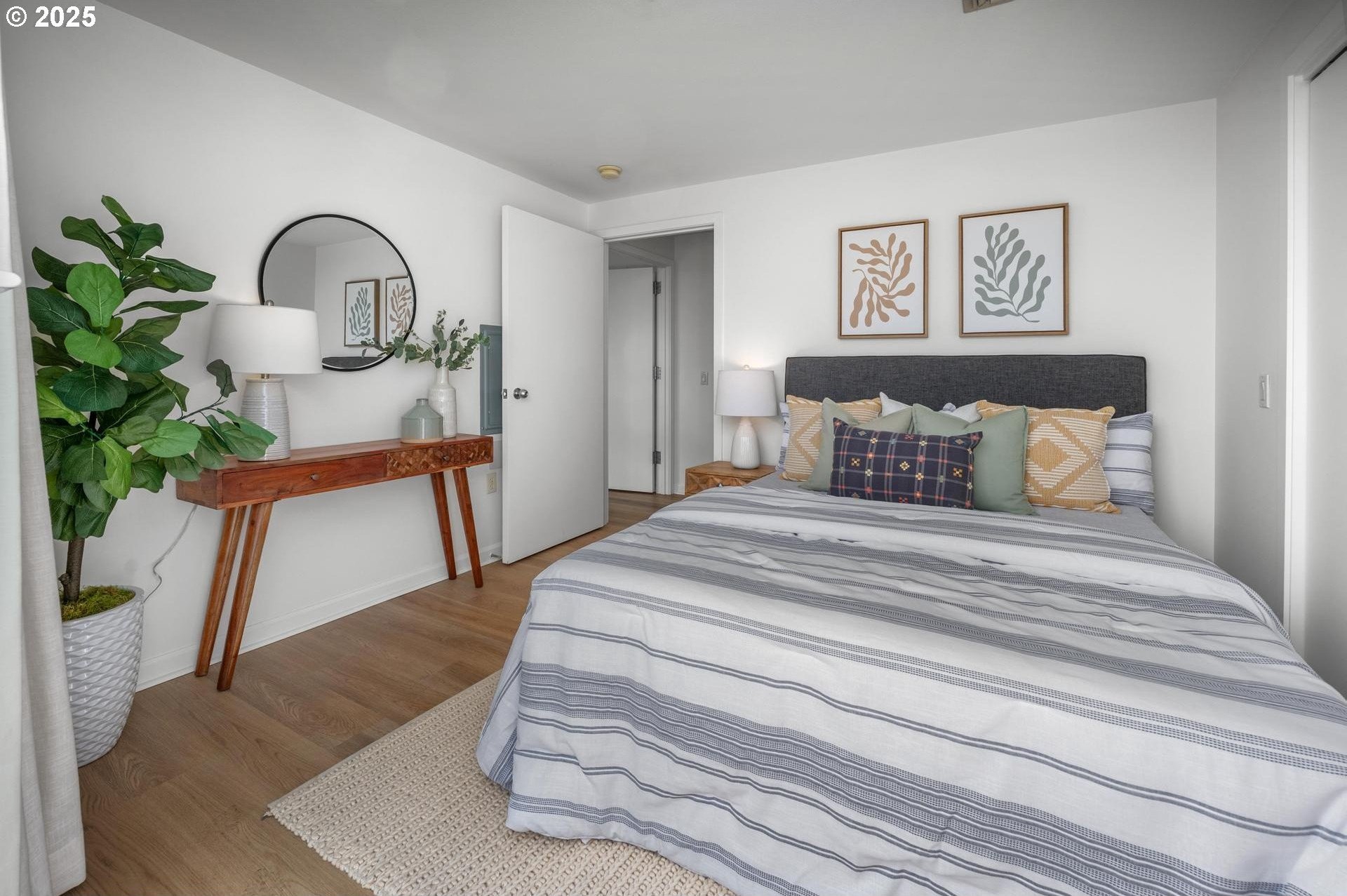 Welcome to your airy 5th-floor retreat, where an open floorplan and floor-to-ceiling windows fill the home with natural light from sunrise on. Three expansive sliding glass doors invite you out to a generous lanai—an ideal extension of your living space for morning coffee, lounging, or enjoying the soft glow of Portland evenings.Nestled in the heart of inner Northeast PDX—one of the city’s most beloved and walkable neighborhoods—this contemporary condo blends modern design with effortless everyday comfort. The east-facing orientation offers wonderful city and mountain views while keeping you connected to the energy of the neighborhood below.The beautifully appointed kitchen is a true chef’s delight, showcasing granite countertops, a gas range, stainless steel appliances, and a welcoming eat-in bar perfect for gathering with friends. Enjoy fresh paint, new flooring, and a cozy gas fireplace that makes the home truly move-in ready.Convenience is at your fingertips with two dedicated parking spaces and a secure storage unit. The community is impeccably maintained, offering lush courtyards and inviting common areas for residents to enjoy. Step outside and you’re moments from trendy shopping, restaurants, and everyday essentials—including multiple grocery options. With an exceptional Walk Score of 95 and a Bike Score of 100, this location embodies the best of Portland living—vibrant, connected, and effortlessly convenient. This is more than a home; it’s a lifestyle you’ll love.
