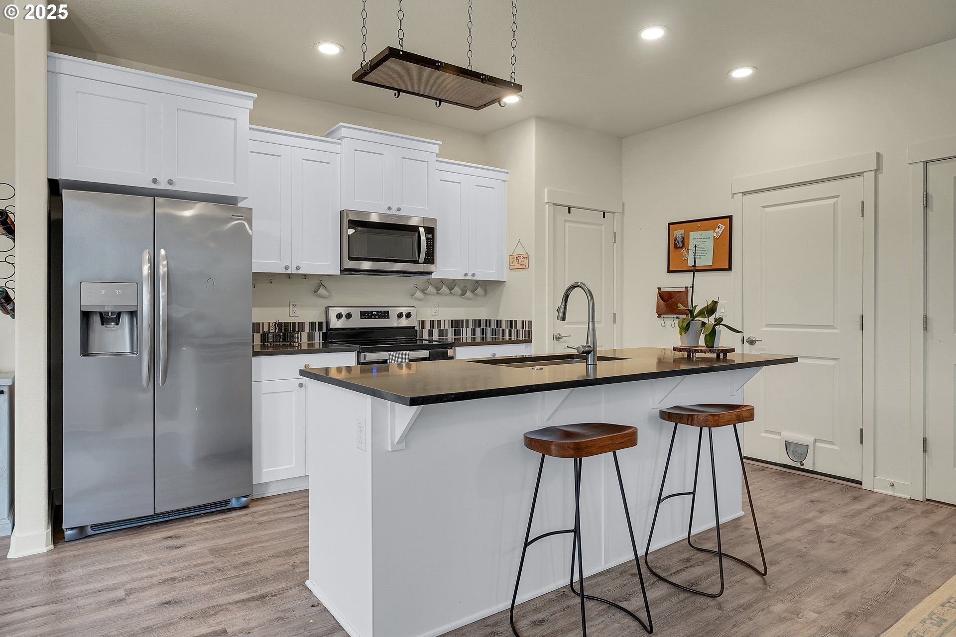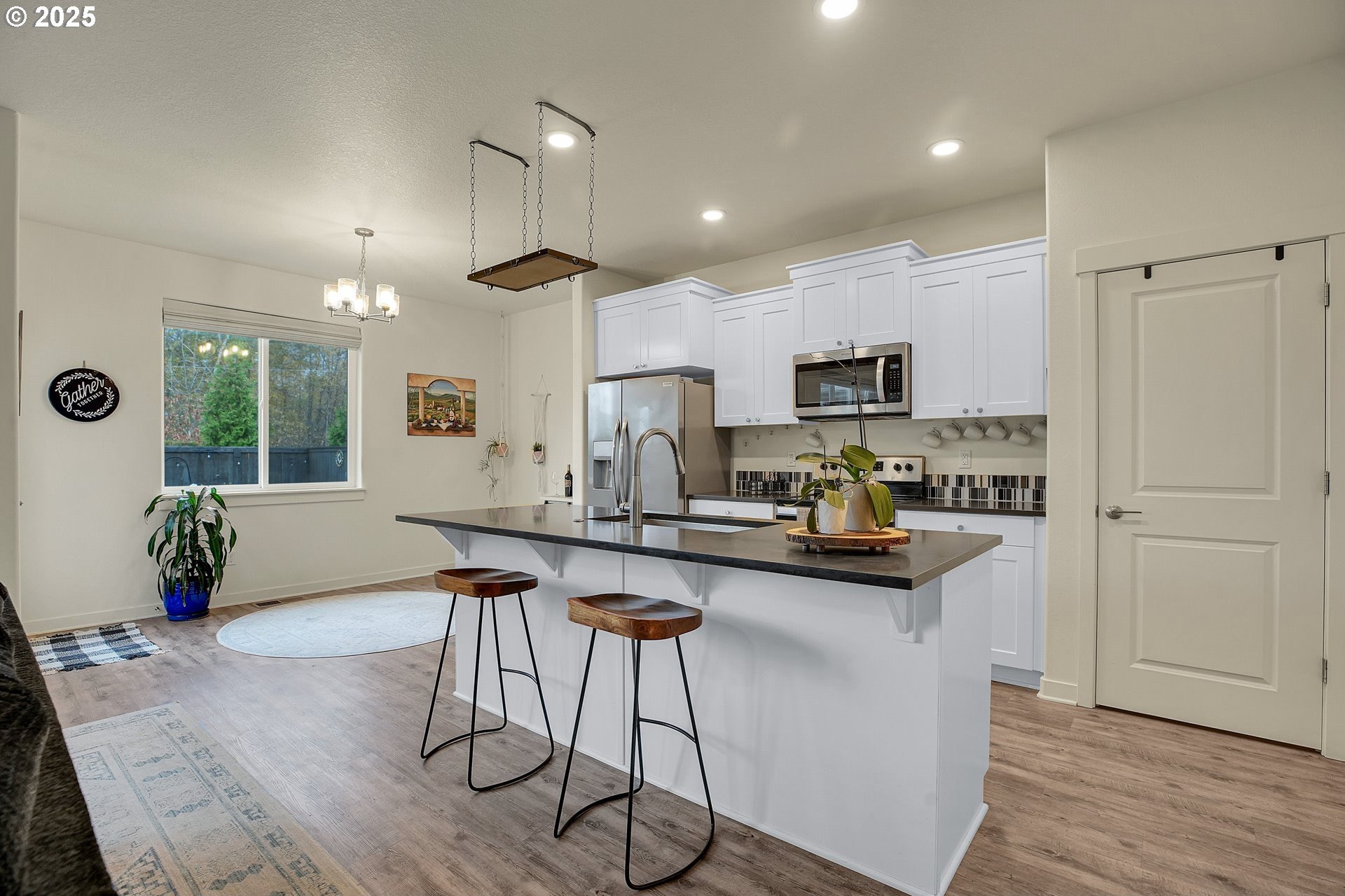 OPEN Sunday, Nov 23rd (1-3). Only 5 years NEW and ready to move in. Large solid surface easy-care quartz island/eat bar, stainless steel appliances included, handy pantry, pot rack, and lots of cabinet space make this a dream kitchen that is open to the dining area and great room with a fireplace. You'll love the easy-care luxury vinyl tile flooring throughout the main level (referred to as laminate). Two overhead garage storage racks and handy garage door opener. A fully fenced back yard with an exposed aggregate (15'x15') patio for entertaining, front/back sprinkler system to keep your grass lush, and garden space for veggies or flowers backs to a small greenway area buffer (so no neighbors behind). Enjoy the community playground, pond with occasional ducks and other wildlife, covered picnic area, and additional common spaces in the desirable Campanella Estates neighborhood. Close to schools (.5 mile), library, Wade Creek Park, and skate park (.4 mile), local shops, and eateries in the quaint small town of Estacada. 4th of July parade, Halloween downtown event, and Friday night football games are a must! Boating, kayaking, fishing, and hiking can be experienced at nearby Estacada Lake, Promontory Park, Northfork Reservoir, Timber Park, McIver Park, Metzler Park, etc... Estacada really has a lot to offer.