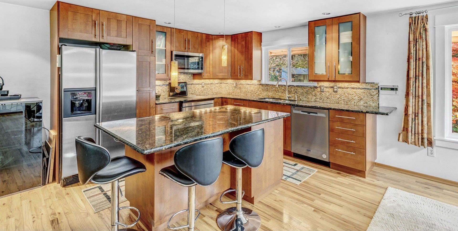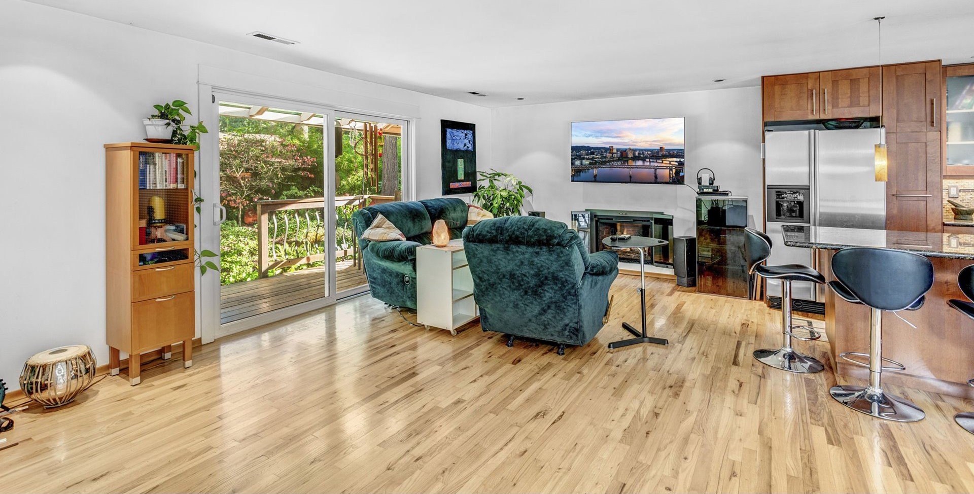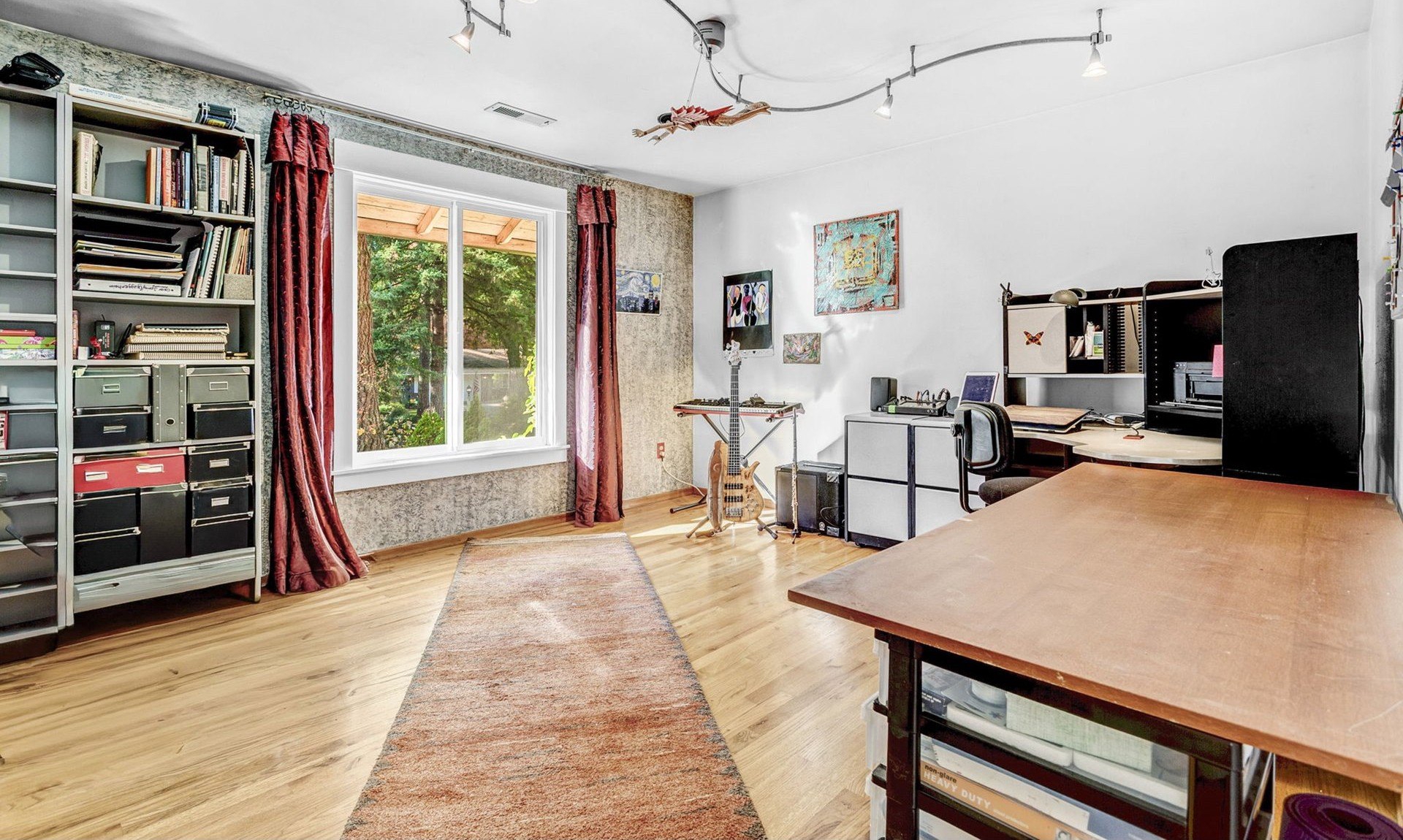 A rare find for media creators and musicians, this home is in a quiet Lake Oswego neighborhood. Features a custom recording studio with sound-absorbing wall and ceiling panels, and flexible dividers for separate tracking and mixing areas. The studio’s sliding glass door ensures excellent isolation for recording anytime, day or night. Set on a spacious 1/3 acre lot, 18978 Arrowwood Ave offers both creative privacy and peaceful living. Outdoor Deck and flagstone patio surrounded by lush tropical trees and plants for a relaxing oasis in your own backyard. Custom Lighting features for automatic dimming programable panel with a beautiful gas fireplace will be sure and relax while using your chef's kitchen for entertaining around a granite topped dining island.