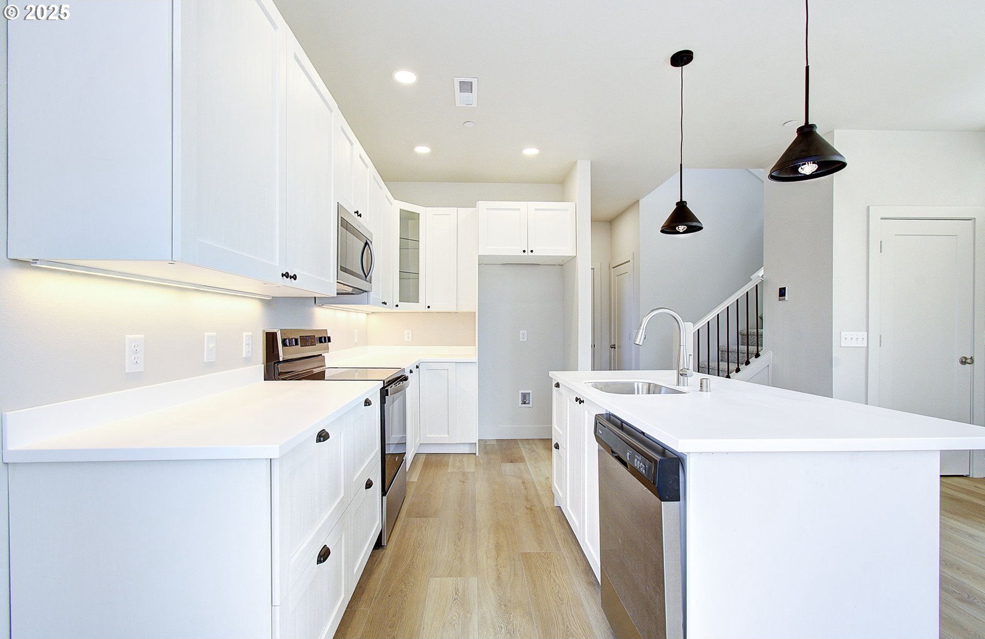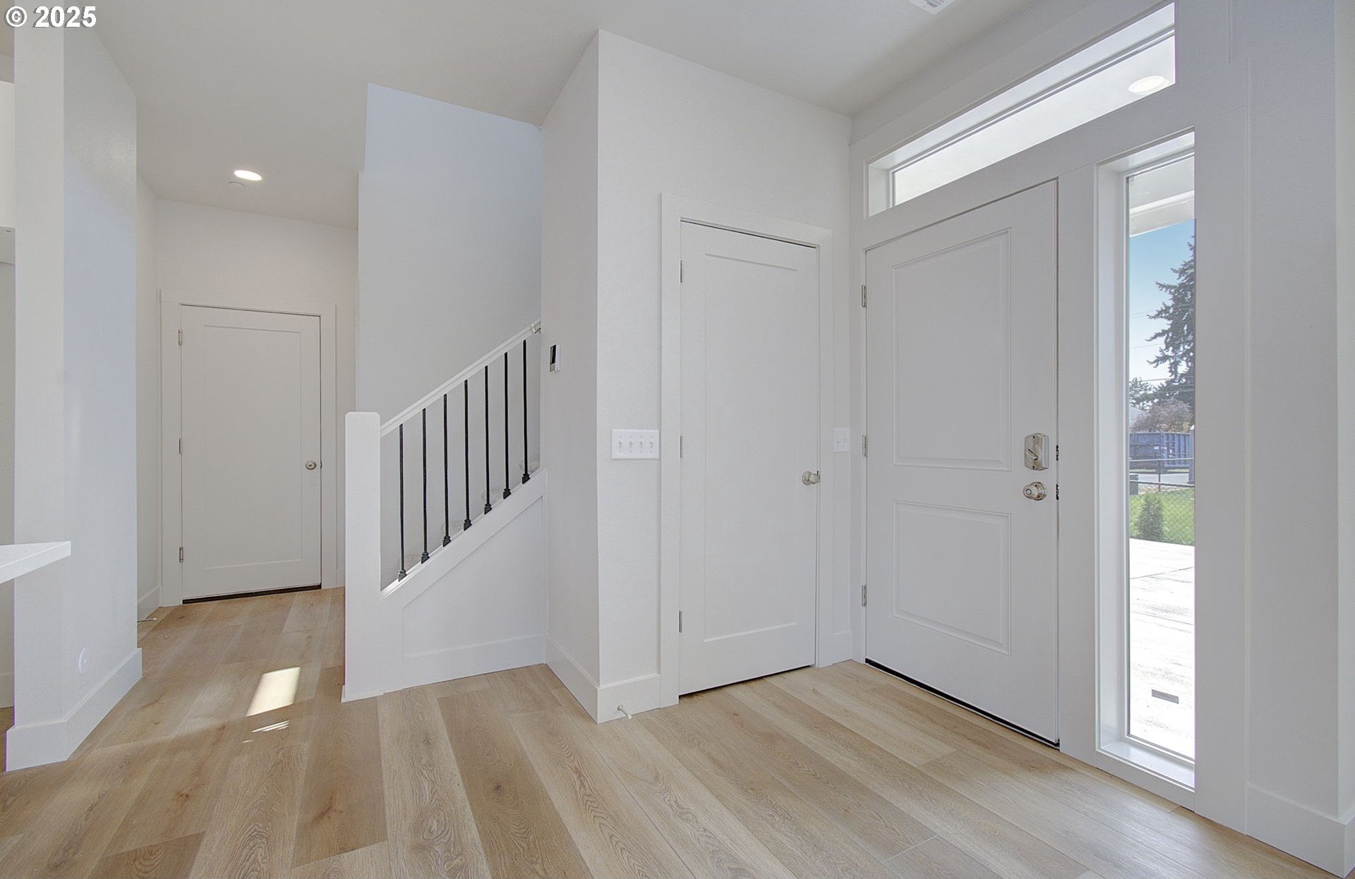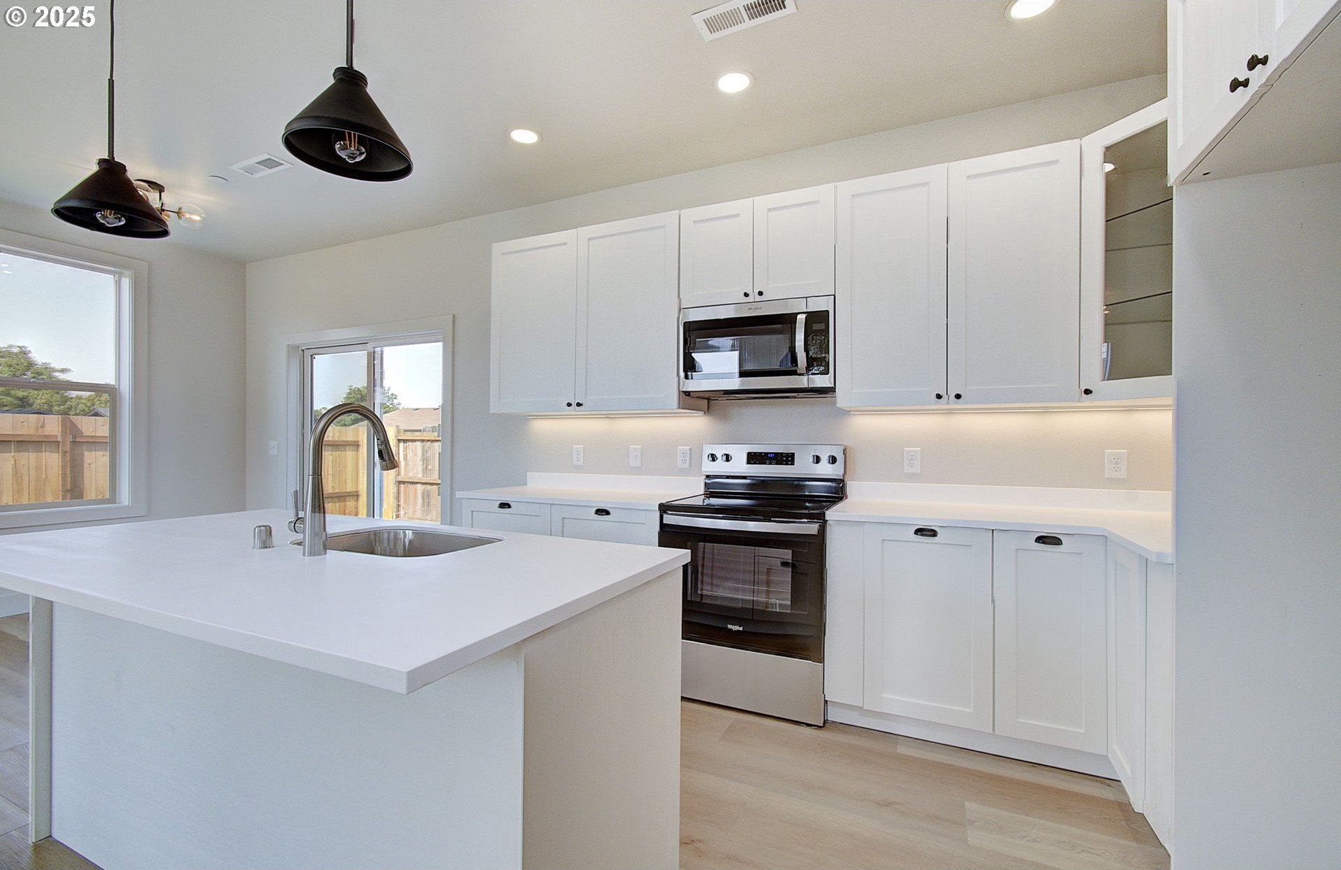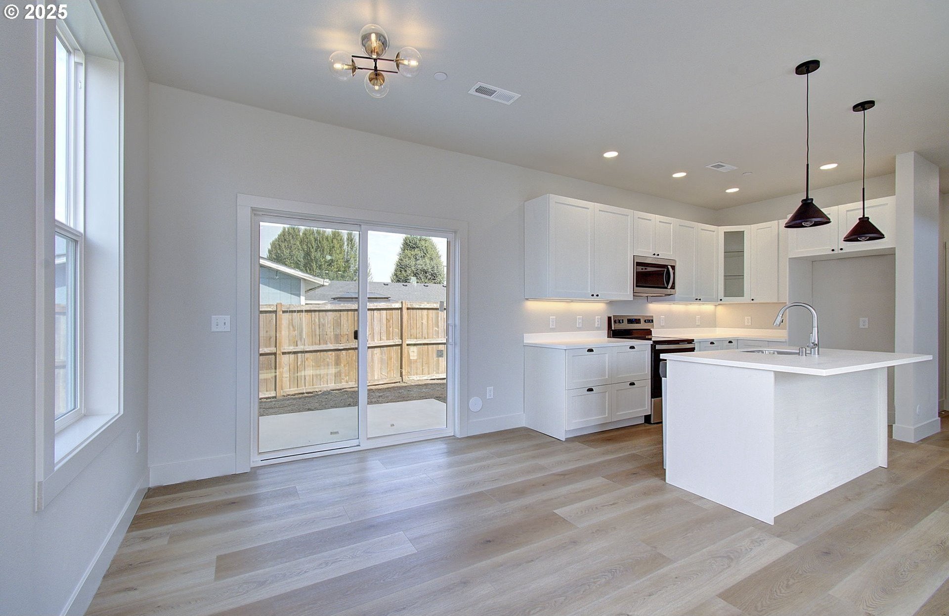 Experience modern living in this newly built two-story home, quietly situated at the end of a long shared drive for added privacy. Thoughtfully designed with a blend of style and function, this 3-bed, 2.5-bath residence offers an inviting open-concept layout highlighted by tasteful farmhouse-inspired finishes. The main level features durable laminate flooring, upgraded lighting, and a spacious great room that flows effortlessly into the kitchen, showcasing stainless steel appliances and generous space for cooking and entertaining. A back patio extends your living area outdoors—ideal for morning coffee or warm-weather gatherings. Upstairs, discover three well-sized bedrooms, including a comfortable primary suite, along with beautifully finished bathrooms. Additional features include an EV charger in the garage and modern touches throughout. Move-in ready and designed for everyday ease.